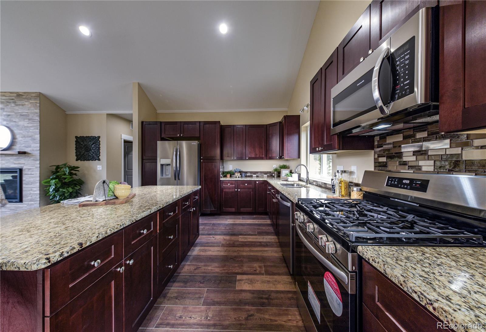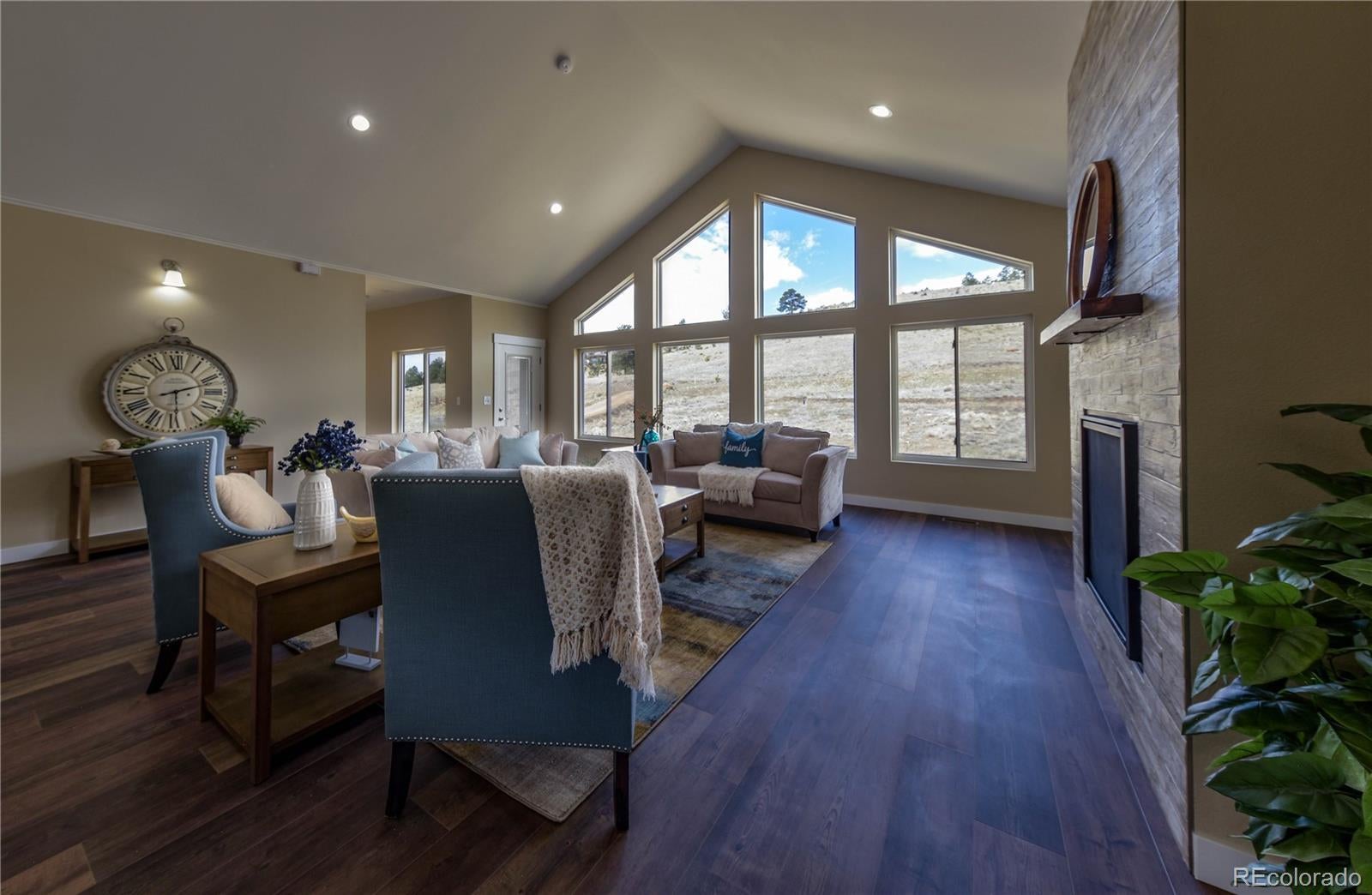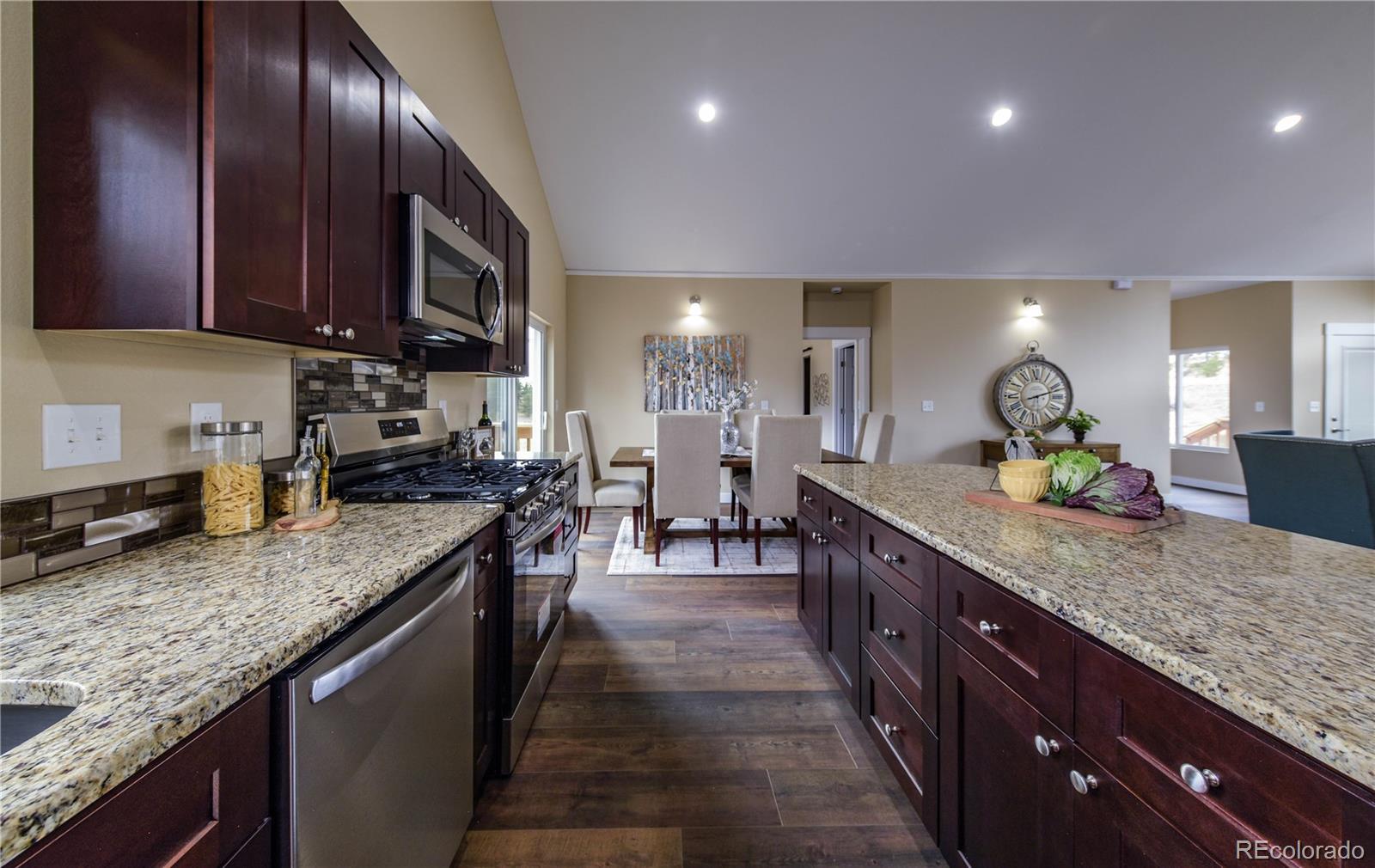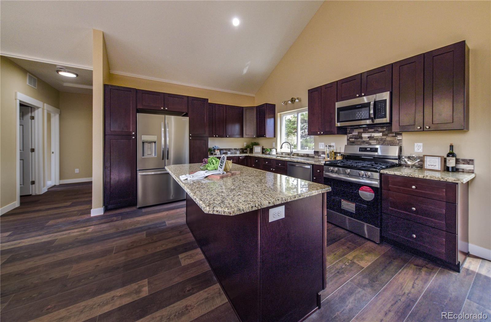 This brand-new 3-bedroom, 3-bathroom, 2-car attached garage home sits on 2.03 acres. As you enter, the living room has high vaulted ceilings; large windows for natural light; luxury vinyl flooring; and a gas fireplace. From the garage entry there is a long hallway for a mud area with windows and entry closet. This open floor plan has a separate area for dining with kitchen island sitting, both with luxury vinyl flooring. The kitchen has all stainless-steel appliances; granite countertops; tall cabinets; a large island with storage underneath; and 2 pantry cabinets. Walk-out to the back deck for easy entertaining with views of mountain landscapes. The carpeted main bedroom suite has an attached bathroom with luxury vinyl flooring; large multi head shower with bench; 2 individual sinks and cabinets; toilet nook area; and walk in closet. The 2nd and 3rd bedrooms have carpet, and each has their own walk-in closet. A full shared bath has a large sink area, luxury vinyl flooring, and deep soaking bathtub. Half bath is across from laundry room, both have luxury vinyl flooring. The large 2-car garage is fully drywalled; has hot/cold hose hook up; and garage door opener with programable keypad. Situated 3 miles away from the CME volunteer fire station; 6.5 miles from Florissant; 13 miles from Cripple Creek; 10.5 miles from Divide; 17.5 miles to Woodland Park.