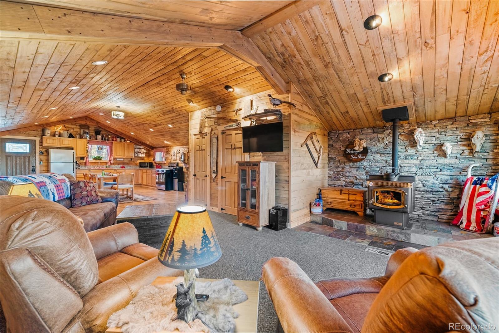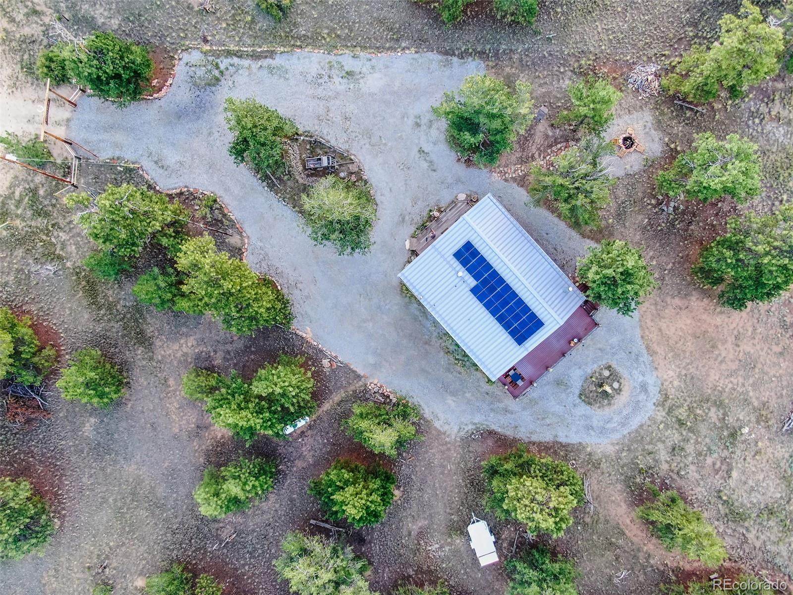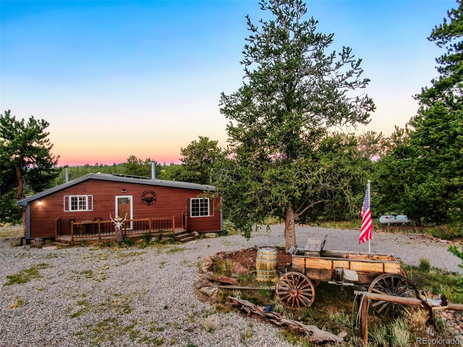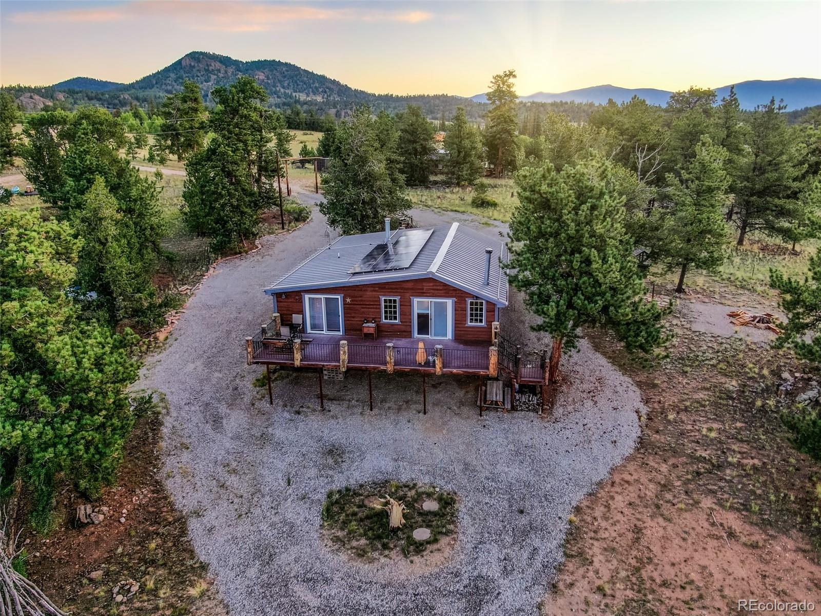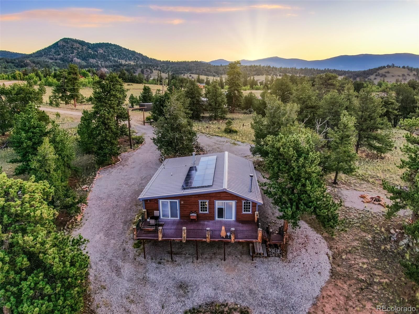 This charming cabin in the woods on 4+ beautifully wooded acres with expansive mountain and valley views is more than ready for you to move in and start enjoying the mountains. The inside of the home has tongue and groove ceilings, an open living space, an upgraded kitchen with plenty of cabinets and granite counters, two roomy bedrooms, and 2 baths. The home and land have been enhanced beyond words. There is a new metal roof and insulation. Washer/Dryer hookups have been installed, so this could easily be a full time home. The home is on the power grid, yet the owners have installed a solar system that will power the entire place. The well pump is brand new and there is an additional 100 gallon water storage tank. The new furnace and two wood burning stoves to keep you toasty warm all winter. There are two decks, one on ground level at the front entrance, and one on the back to sit and take in the views. The property is pristine as a park with a gravel circular driveway for ultimate convenience. Located at the end of a quiet Cul-De-Sac, the acreage is fully fenced with a beautiful, custom gate and entry. The property has been completely mitigated, and a cozy fire pit and seating area are out on the hill behind the house. With over 120 thousand dollars in upgrades and improvements, this charming cabin will become your legacy. This cabin is a must see.