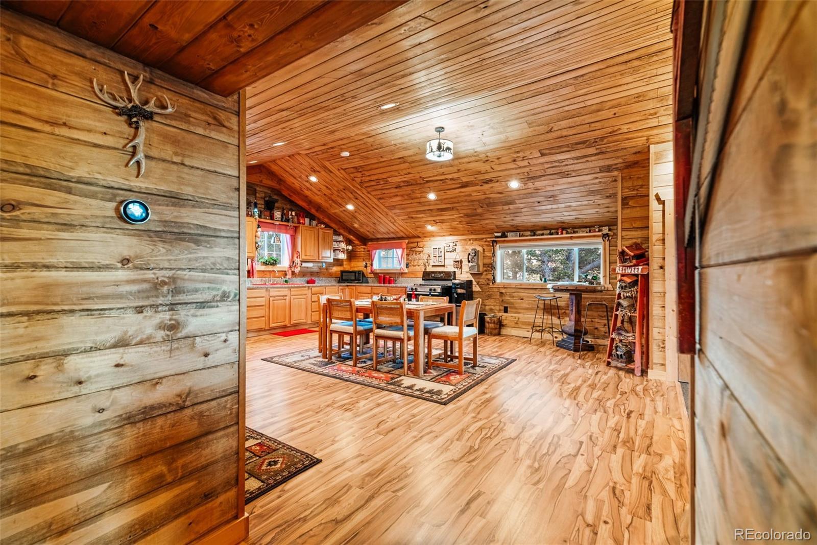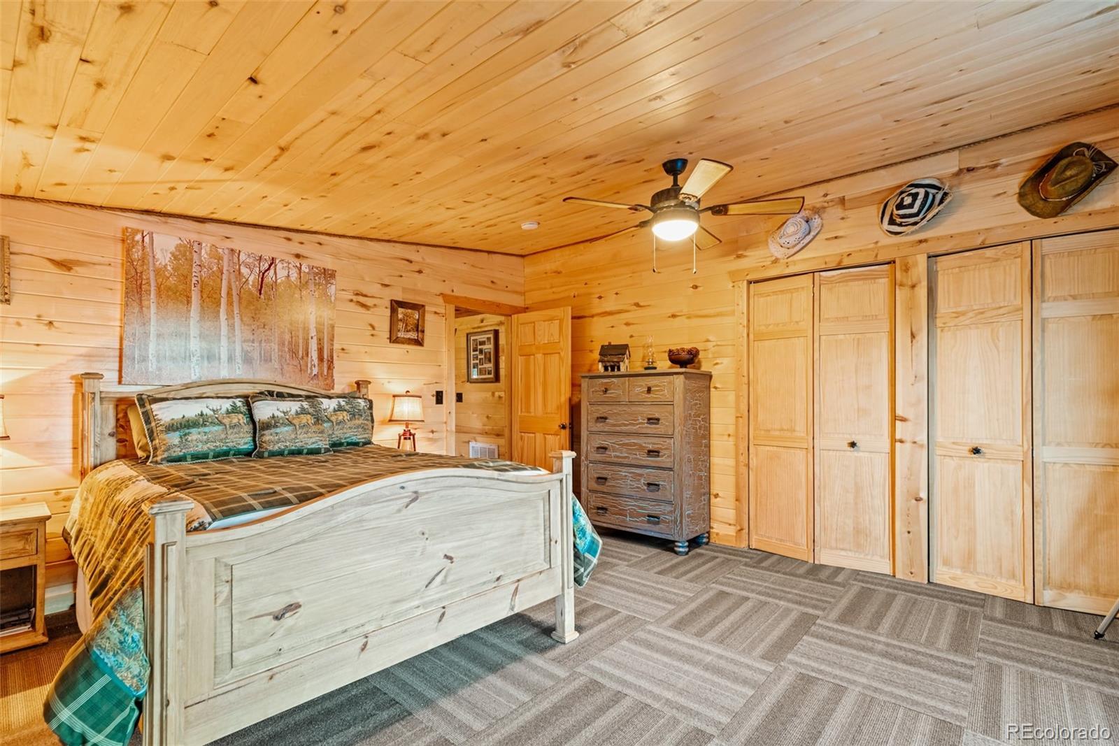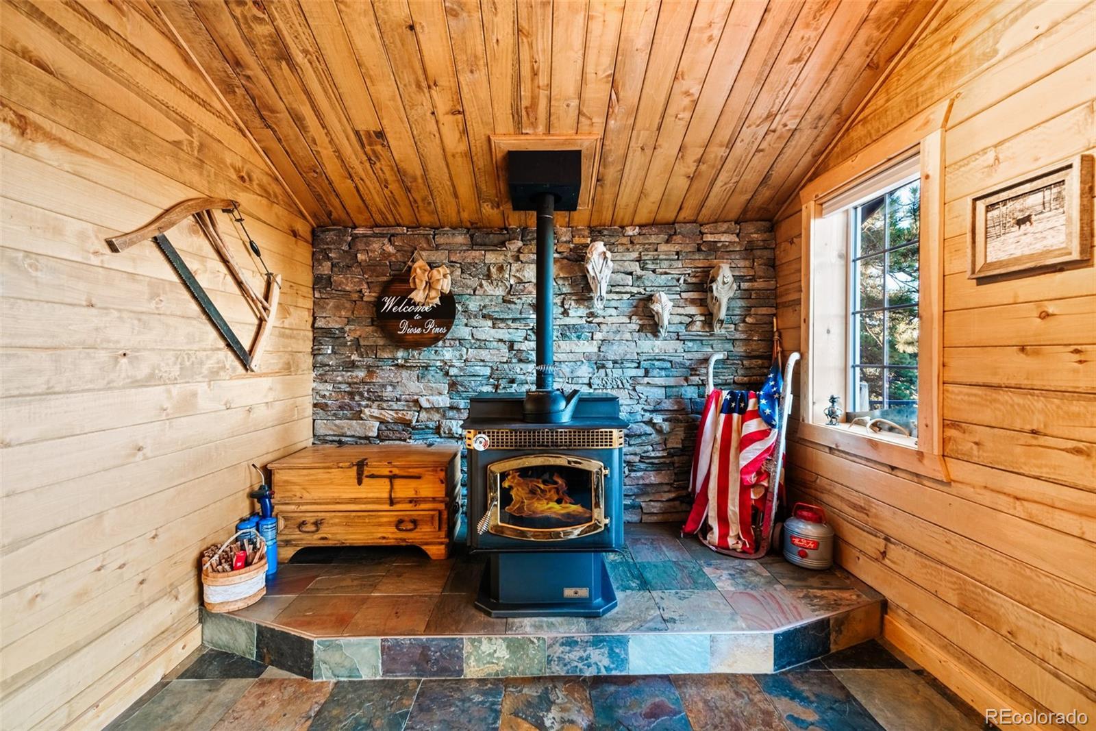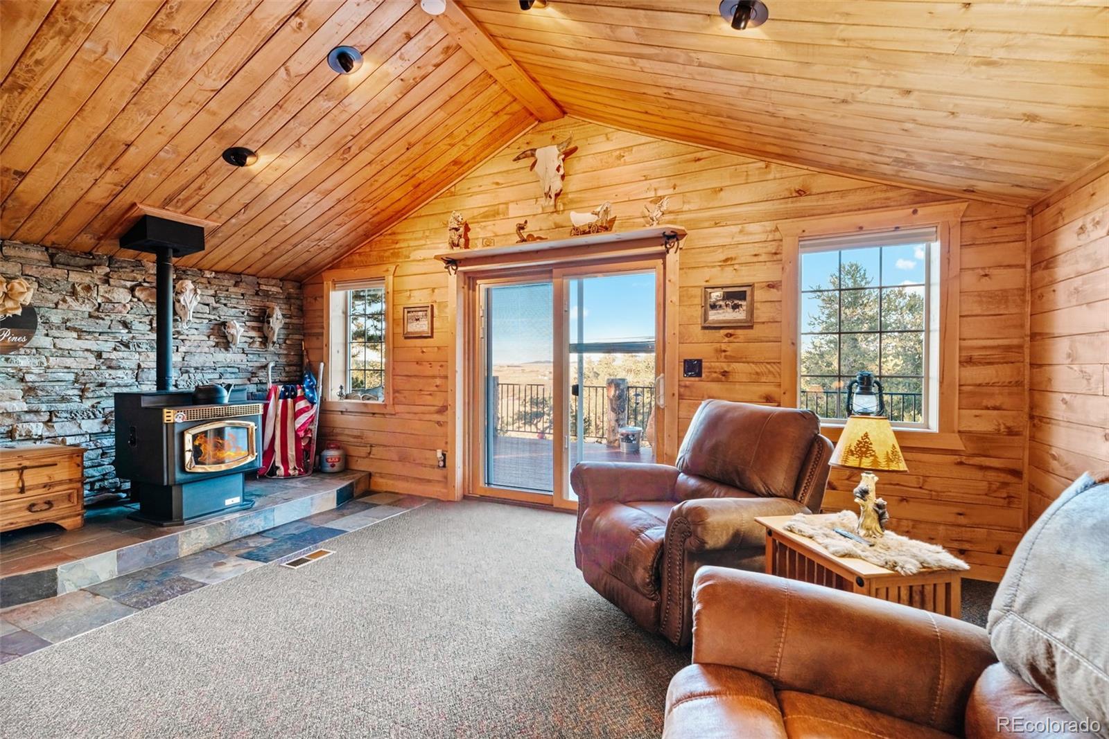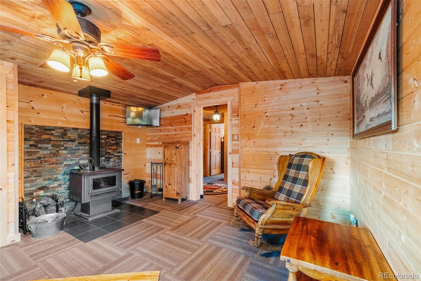 This charming cabin in the woods on 4+ beautifully wooded acres with expansive mountain and valley views is more than ready for you to move in and start enjoying the mountains. The inside of the home has tongue and groove ceilings, an open living space, an upgraded kitchen with plenty of cabinets and granite counters, two roomy bedrooms, and 2 baths. The home and land have been enhanced beyond words. There is a new metal roof and insulation. Washer/Dryer hookups have been installed, so this could easily be a full time home. The home is on the power grid, yet the owners have installed a solar system that will power the entire place. The well pump is brand new and there is an additional 100 gallon water storage tank. The new furnace and two wood burning stoves to keep you toasty warm all winter. There are two decks, one on ground level at the front entrance, and one on the back to sit and take in the views. The property is pristine as a park with a gravel circular driveway for ultimate convenience. Located at the end of a quiet Cul-De-Sac, the acreage is fully fenced with a beautiful, custom gate and entry. The property has been completely mitigated, and a cozy fire pit and seating area are out on the hill behind the house. With over 120 thousand dollars in upgrades and improvements, this charming cabin will become your legacy. This cabin is a must see.