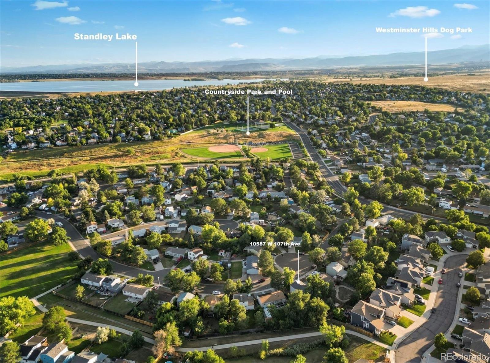 Fall in love with this charming, South-facing home in the heart of Countryside! Offering 3 beds, 2 baths, a 2-car garage, and a mature landscape with a beautiful backyard and no HOA. The interior showcases refined style with abundant natural light, a soothing neutral palette, and a thoughtful mix of wood-look flooring & plush carpet throughout. The formal living room offers a warm and inviting first impression, ideal for both everyday living and hosting guests. The eat-in kitchen features ample white cabinetry, modern appliances, and pantry storage. Upstairs, you'll find the perfectly sized bedrooms and a full bathroom for added comfort. The finished basement adds valuable living space, featuring a spacious additional family room and a versatile bonus room ideal for a home office, guest bedroom, or hobby area. Outdoors, tranquility awaits in the expansive backyard—excellent for relaxation and entertaining or for your four legged friends! Complete with an open patio, lush natural grass, a cozy fire pit area, mature shade trees, and a convenient storage shed, the backyard is a dream. Positioned in an unbeatable location, with a large lot, this home sits very close to Standley Lake, Westminster Hills Open Dog Space, Walnut Creek Golf Preserve, and miles of biking and walking trails located directly behind the property. The property is also just down the street from an amazing local park, Jessica Ridgeway Memorial Park, great for time outdoors and has a large playscape. With easy access between Boulder and Denver, this property truly redefines convenience while offering a peaceful lifestyle. Home, sweet home! Schedule your showing today! Recent updates include: New garage door 2024, new furnace 2024, new refrigerator 2024, new garbage disposal 2025