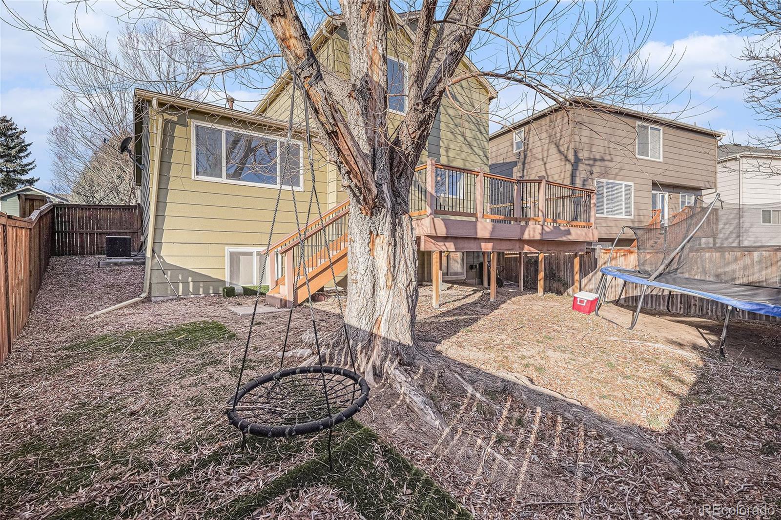 Fantastic 2-story home located in the highly sought-after Meadows community, offering incredible flexibility with three distinct living areas—a rare find at this price point—plus an assumable loan opportunity! You’ll feel right at home the moment you enter, with beautiful wood floors, vaulted ceilings, and built-in shelving in the living room, which can also function as a formal dining space. The family room features matching wood floors, vaulted ceilings, and a ceiling fan, flowing into the dining area with tile floors and a sliding door leading to the backyard deck. The kitchen is the heart of the home, showcasing light and bright white cabinetry, granite countertops, tile backsplash, pantry, and brand-new stainless steel appliances—perfect for entertaining or everyday living. A convenient half bath completes the main level. Upstairs, the spacious primary suite includes a walk-in closet, ceiling fan, and private en-suite bathroom, along with two additional bedrooms—each with ceiling fans—and a full bath. The mostly finished basement offers a large flex space ideal for an office, rec room, or additional family room, plus a 4th bedroom, ¾ bath, and generous laundry area. Step outside to enjoy the expansive Trex deck overlooking a private, mature backyard oasis, perfect for summer BBQs, morning coffee, or evening relaxation—plus front-row views of July 4th fireworks. Located within walking distance to three schools, Butterfield Pool & Park, multiple parks, trails, and shopping, with easy access to I-25 and Highway 85, and just minutes from Castle Rock Outlets. This is truly one of Castle Rock’s most desirable communities—you won’t find a better home at this price.