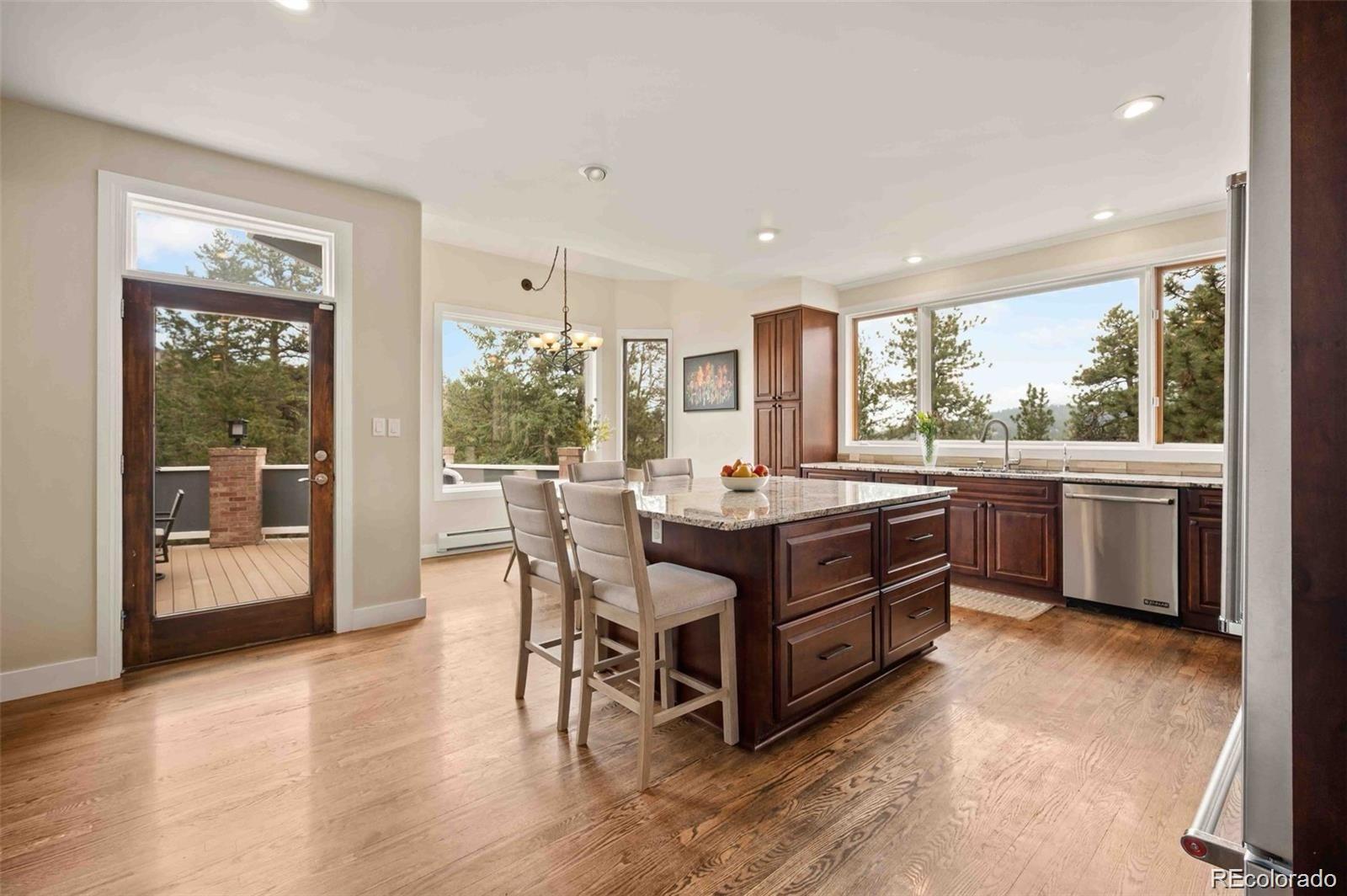 Welcome to your next adventure in mountain living! This spacious four-bedroom, five-bathroom home offers room for everyone—and then some. Whether you're hosting guests or just soaking up the peace and quiet, there’s plenty of space to relax and unwind. This home is the epitome of mountain luxury. Step inside and you'll find a warm, inviting layout perfect for both everyday living and entertaining. Each bedroom includes its own bathroom, so no more waiting your turn in the morning. The primary bedroom provides a luxurious escape with all the room you need to settle in and enjoy it. The observation lounge offers unparalleled views of the Rockies. Outside, nature doesn’t just knock—it moves in. There is just under 5 acres to explore or with Genesee Mountain Park just minutes away, it’s easy to start or end your day with a quick hike or a picnic under the trees. Feel like venturing a little further? You're just a short trip to downtown Golden, where charming shops, local eats, and plenty of history are waiting to be explored. And don’t worry, dinosaur lovers haven’t been left out—Dinosaur Ridge Trailhead and Red Rocks Park are close enough for spontaneous outings whenever the mood strikes. The possibilities are infinite with the lot size and zoning. This home is also a back-up generator ready in the event of epic snowfall. The three car garage includes a workshop for all of your gear, additional office or reimagined to suit your needs. The location is simply unequalled with I-70 minutes away whether you are headed to Golden, Evergreen or Morrison. If you love spending weekends on the trails, catching a concert under the stars, or simply looking out the window and smiling at the view, this home has a little something for every lifestyle. It’s a home with space, character, and great access to the kind of Colorado beauty you can’t put a price on. This could be where your next chapter begins. Keep your hiking gear by the door… you're going to need it.