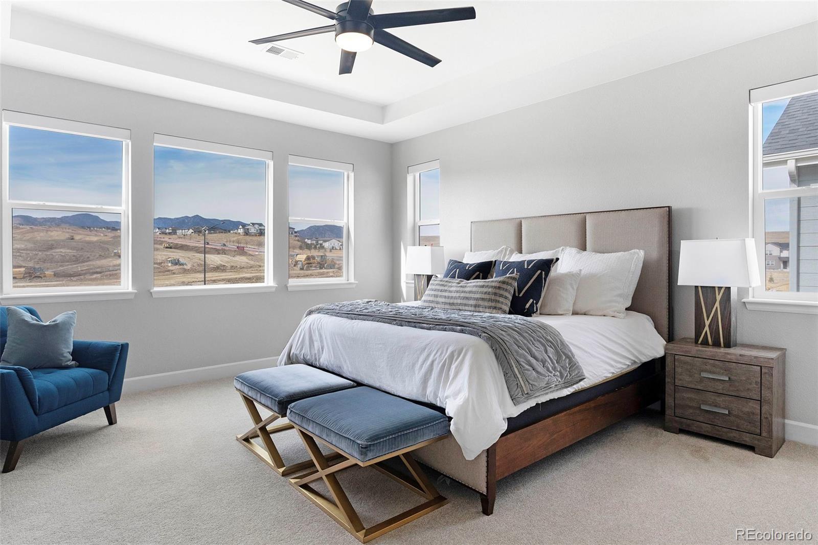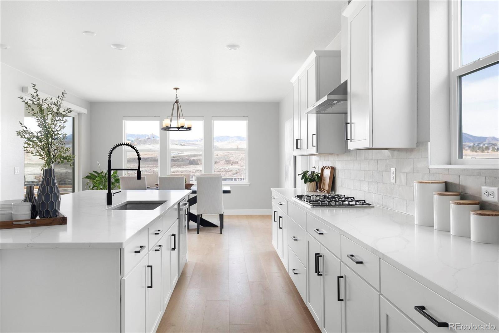 Welcome to the highly sought-after Keystone model in Trailstone, beautifully finished, move-in ready, and ideally located for both comfort and convenience. With landscaping already complete, buyers can enjoy the home and yard immediately without the time or expense of finishing outdoor spaces. Inside, the home showcases a bright, modern kitchen with crisp white cabinetry, quartz countertops, a large eat-up island, tile backsplash, GE appliance package, and a spacious walk-in pantry. The soaring family room features high ceilings, a cozy gas fireplace, extended cabinetry ideal for a bar or entertaining, and double sliding doors that open seamlessly to the patio for effortless indoor-outdoor living. The thoughtfully designed main level includes a one of a kind glass-enclosed office and a well-appointed guest suite with en-suite access and backyard views. Upstairs, the luxurious primary suite captures beautiful mountain views and connects to a spa-inspired bath with dual quartz vanities, soaking tub, and an oversized walk-in shower with dual shower heads. A versatile loft, upper-level laundry and spacious secondary bedrooms complete the upper floor. Enjoy early access to the Trailstone community with premier amenities located directly across the street with an estimated 2027 completion. Amenities will included a pool, fitness center, pickleball courts, parks, and miles of trails. This is a rare opportunity to own a turnkey Keystone in an unbeatable location. This property also comes with a PERMANENTLY REDUCED INTEREST RATE as low as 4.99% (APR 5.494%) as of 2/19/2026 through List & Lock™. This is a seller paid rate-buydown that reduces the buyer’s interest rate and monthly payment FOR THE LIFE OF THE LOAN! Terms apply. Copy and paste this link into your browser for more information: https://www.cmghomeloans.com/mysite/hunter-combs/listnlock/property/9349-Russell-Cir-Arvada-CO-80007