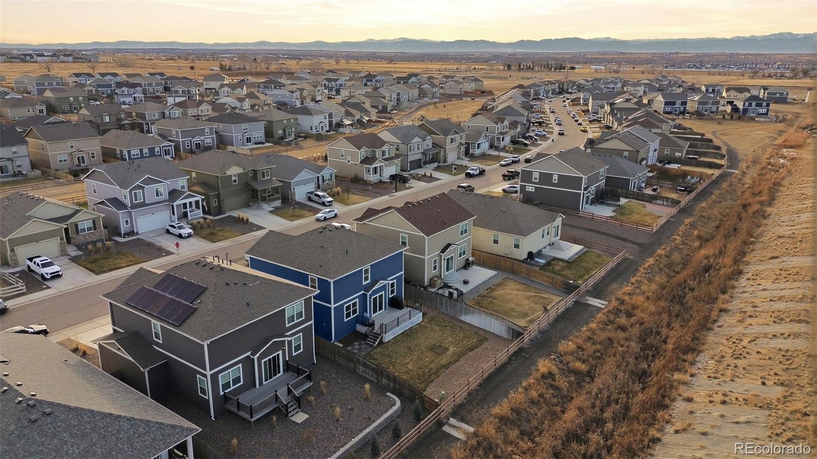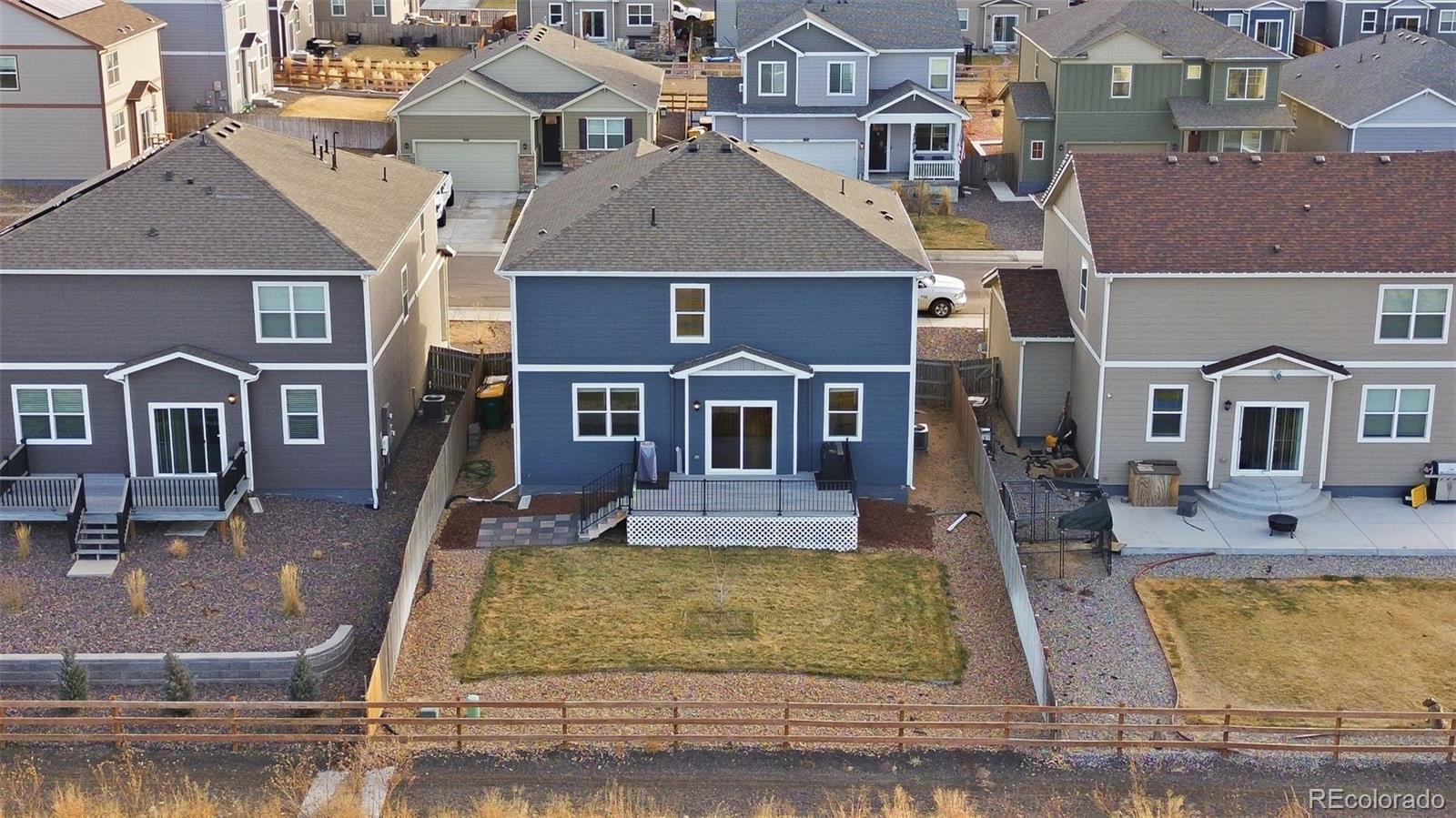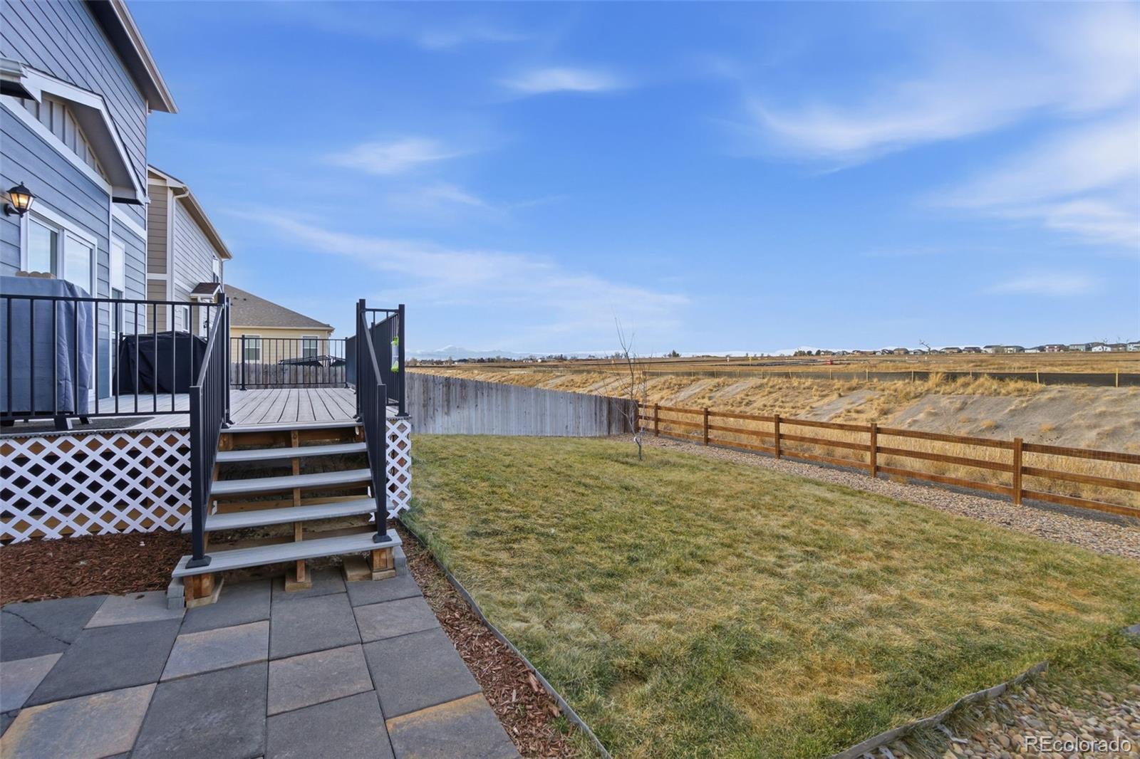 Welcome to this stunning, move-in-ready residence located in the vibrant Mountain Sky community of Fort Lupton. Built in 2021 and maintained in excellent condition, this home perfectly balances modern sophistication with everyday functionality. The journey begins with a versatile front bonus room, ideal for a dedicated home office, which leads seamlessly into the heart of the home: an expansive, light-filled open-concept living space. The gourmet kitchen serves as a central hub, featuring a large island, sleek cabinetry, and a full suite of stainless steel appliances. Upstairs, a generous loft offers a secondary living area, providing the perfect flexibility for a media room or play space. The primary suite acts as a private sanctuary with its own four-piece bath, complemented by two additional spacious bedrooms and a convenient upper-level laundry room. What truly sets this property apart is its premium location; the home is situated along a protected drainage corridor behind the property, creating separation from future development and ensuring no homes will be built directly behind the house. This thoughtful buffer provides added privacy and breathing room compared to many homes in the area. The outdoor experience is enhanced by a fully fenced yard featuring a lovely deck, perfect for peaceful mornings or summer gatherings. Situated just minutes from local schools and shopping, this home offers the ultimate convenience for busy lifestyles. For those ready to move, the property is available for a quick close in as little as 10 days. With easy access to I-76 and Highways 52 and 85, you are perfectly positioned for a seamless commute to Denver, Brighton, or Greeley while enjoying a quiet, turn-key retreat.