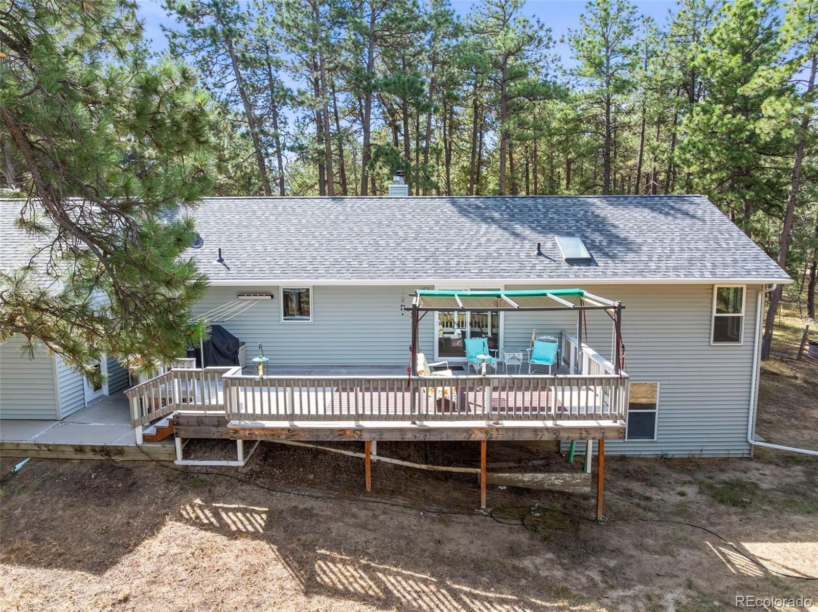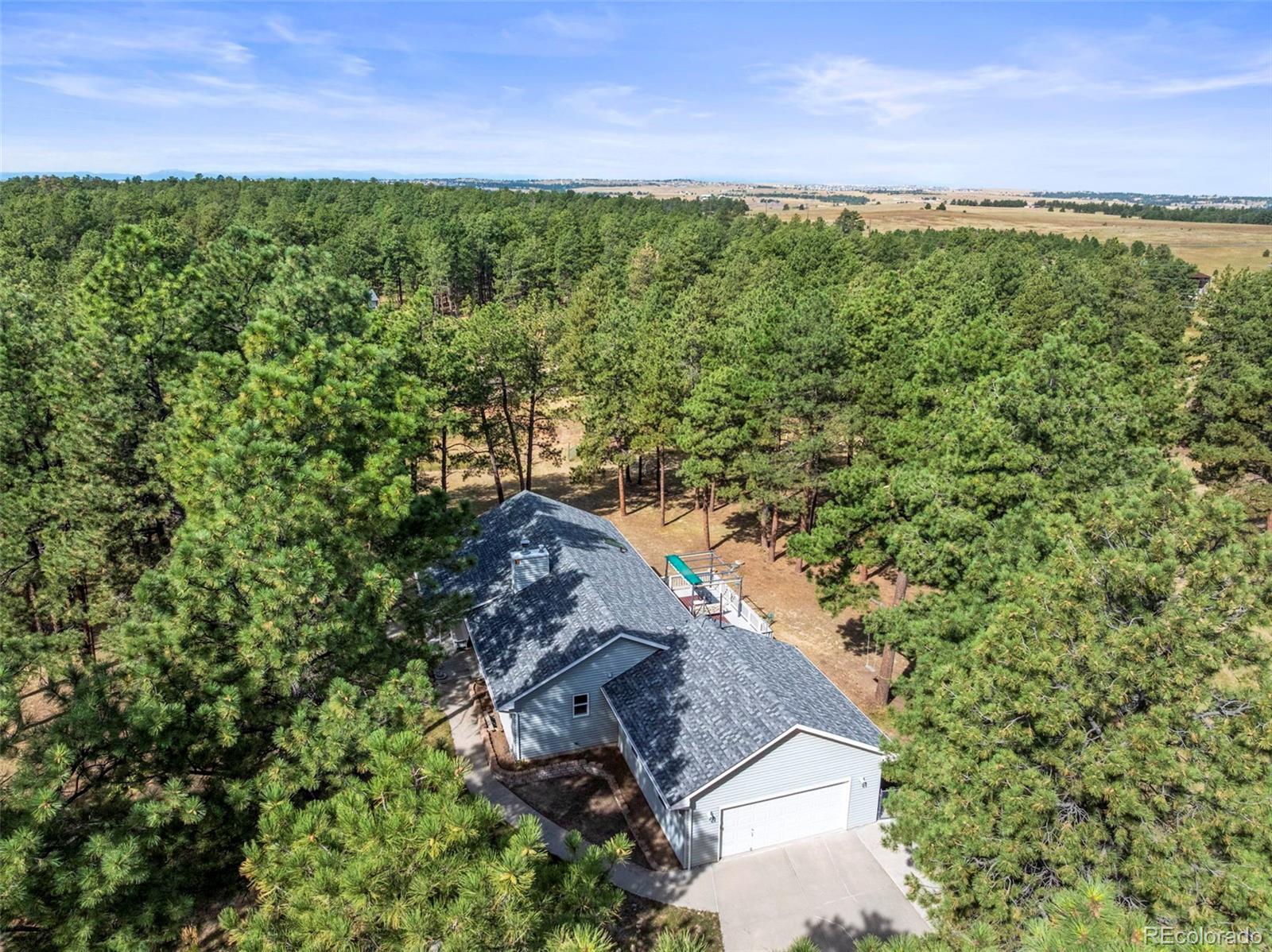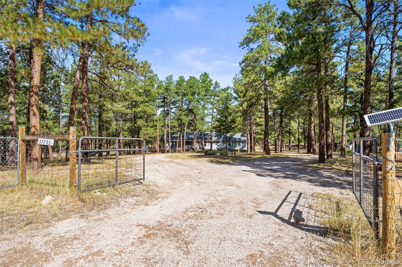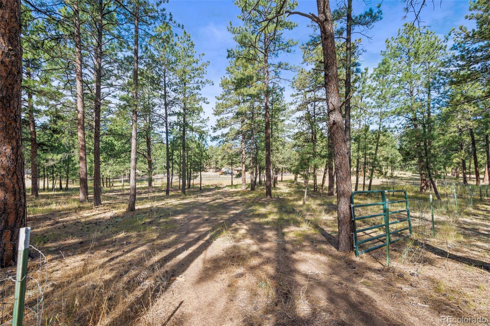 This spacious ranch home offers single-level living on five acres in Elizabeth. At the center of the home, a large living room with a fireplace connects to the dining area and kitchen, creating an easy flow for daily living and gatherings. The eat-in kitchen includes ample counter space, a pantry, and all essential appliances. The primary suite features a walk-in closet and a five-piece bath, while two additional bedrooms and a full bath are located on the opposite side of the home, providing a practical split-bedroom layout for privacy from the primary. A convenient laundry room sits near the attached two-car garage for everyday function. The home is move-in ready with fresh paint, new carpet and neutral finishes ready for your customization. Outdoor living is a highlight, with a covered front deck and back deck that both look out onto the peaceful forest setting. The mature trees provide both privacy and tranquility, offering a quiet retreat that can be enjoyed year-round. The home has been professionally fire mitigated to allow for easy homeowners insurance approval. The property is zoned RA-1, serviced by a private well and septic, and enhanced with recent upgrades such as a newer roof and new gutter guards. For the animal lover, the property is fully fenced with a gated entry and additional cross fencing for smaller pastures. There is a loafing shed with sliding doors if you'd like to bring any 4-legged friends. Or, for those without animals, you could utilize the storage sheds as a great place for lawn equipment, overflow storage, etc. With its acreage, privacy, and versatile layout, this home offers a true country lifestyle while remaining close to the community amenities of Elizabeth — an excellent opportunity to enjoy space and comfort in a serene location.