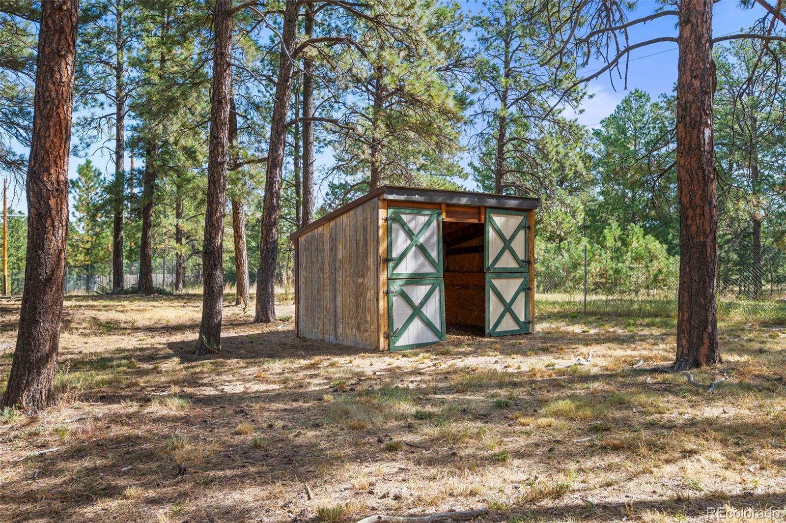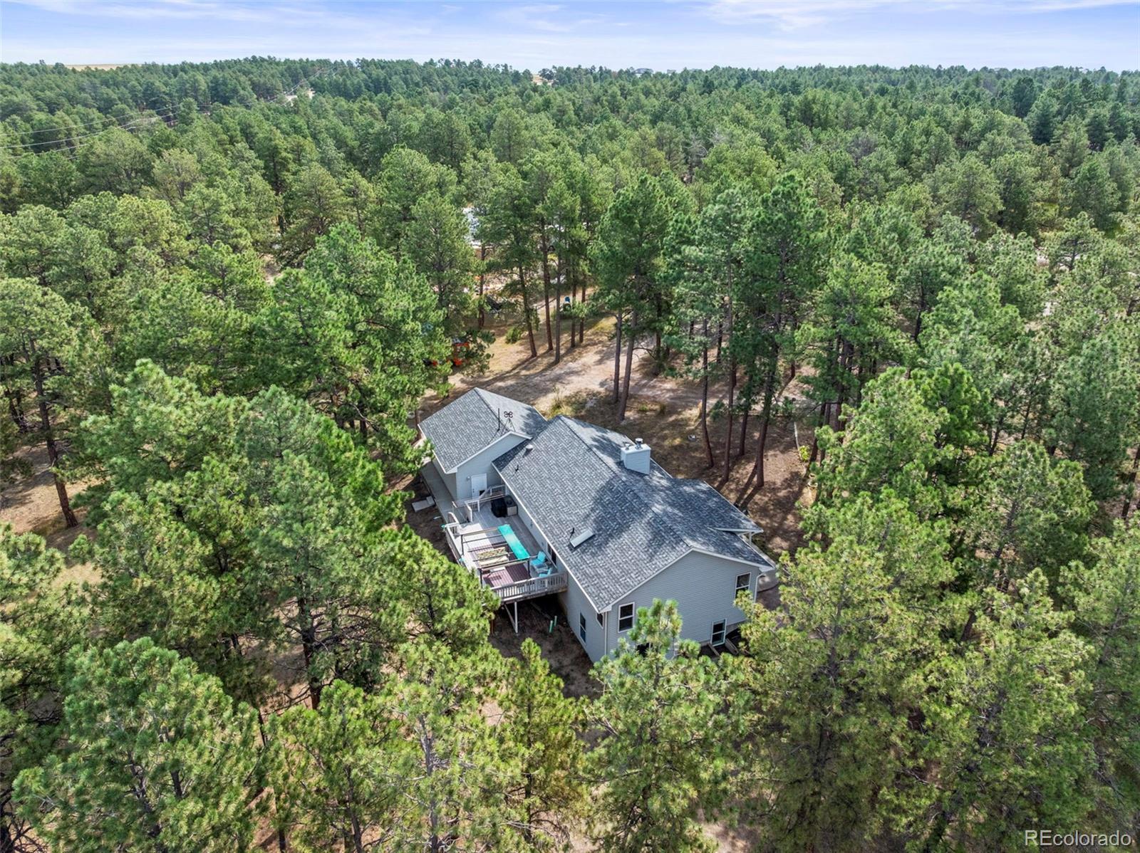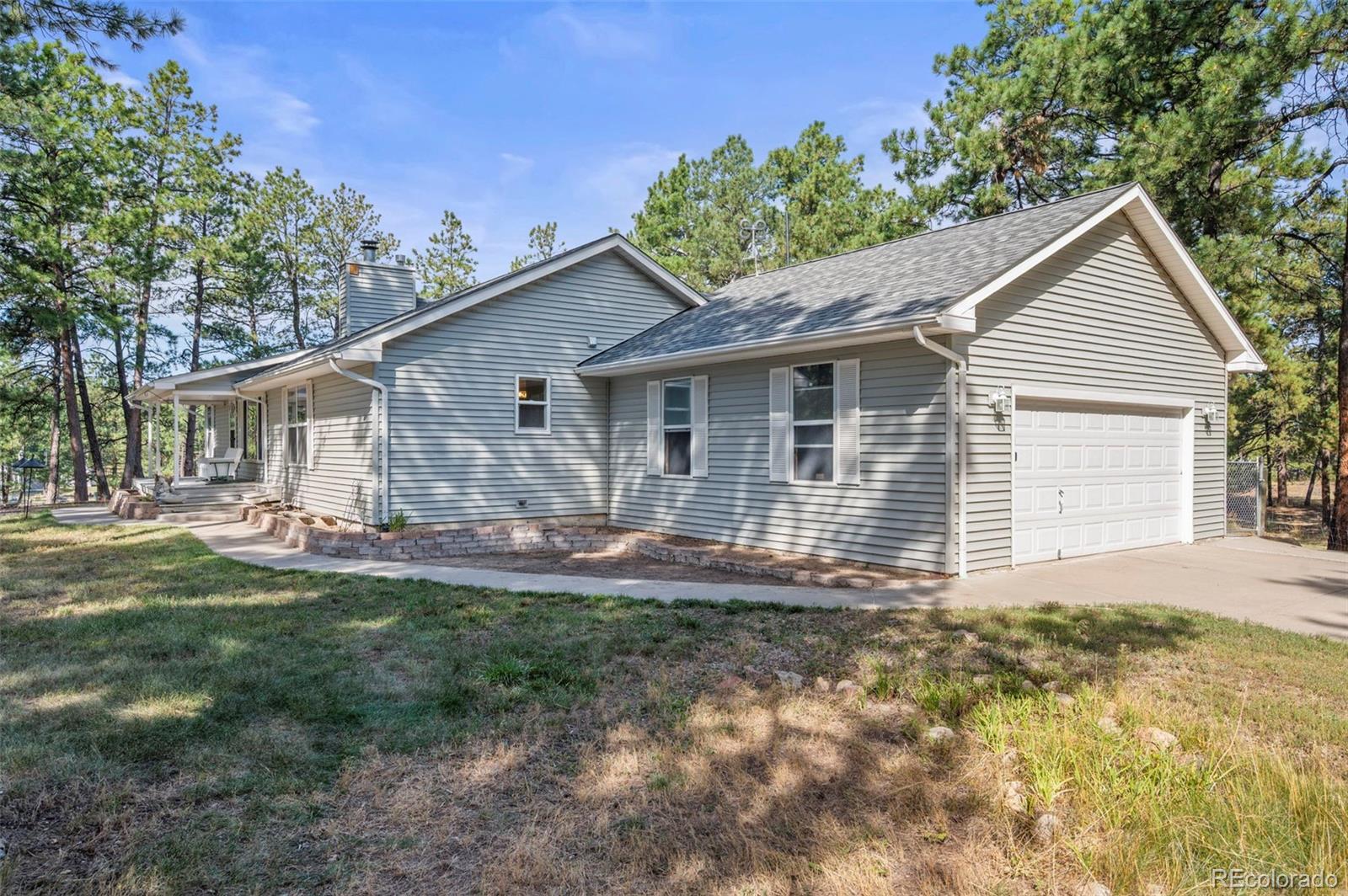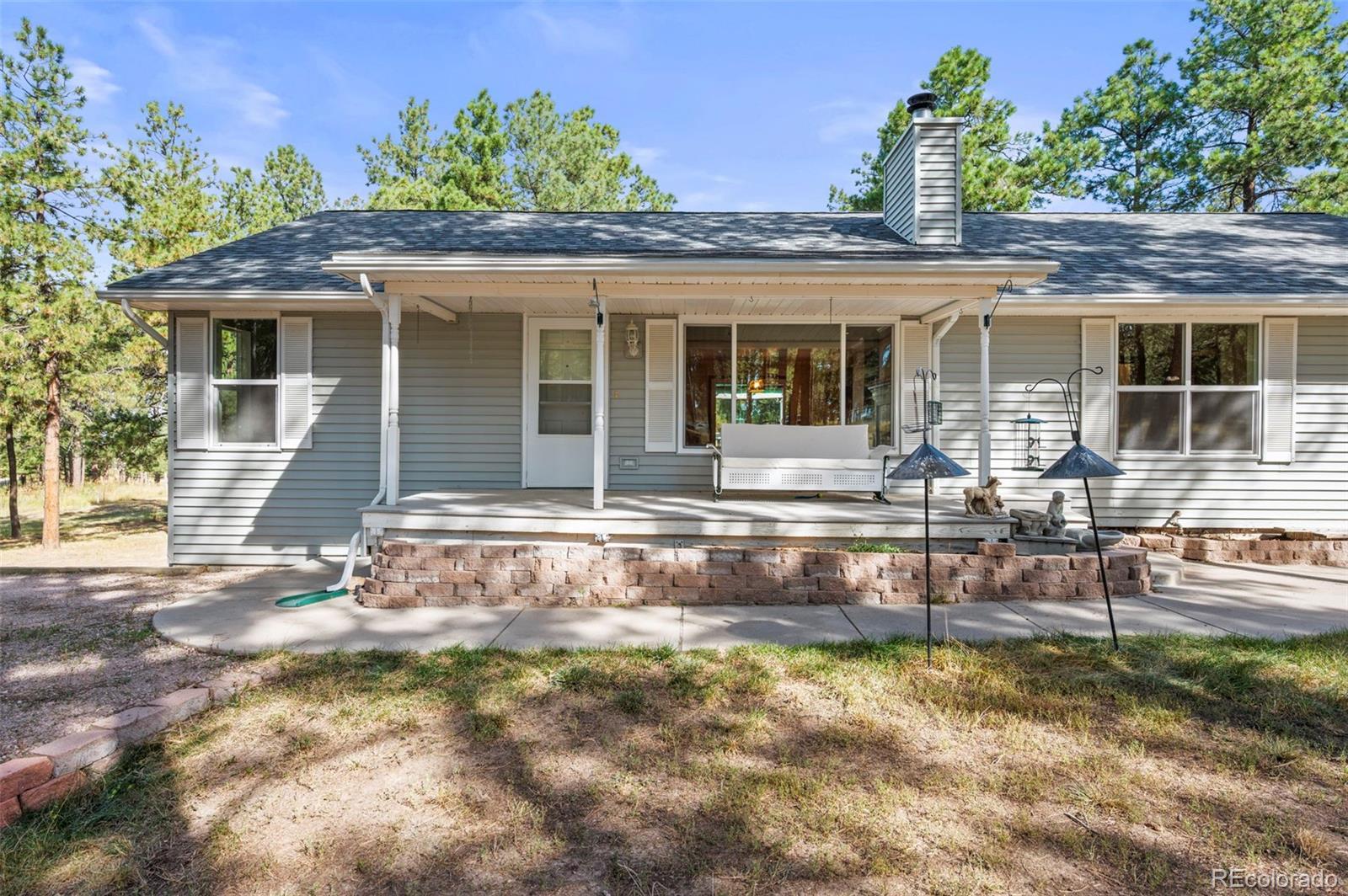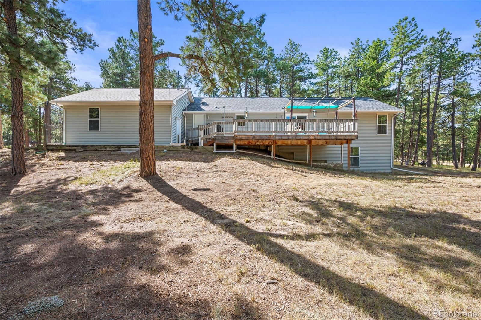 This spacious ranch home offers single-level living on five acres in Elizabeth. At the center of the home, a large living room with a fireplace connects to the dining area and kitchen, creating an easy flow for daily living and gatherings. The eat-in kitchen includes ample counter space, a pantry, and all essential appliances. The primary suite features a walk-in closet and a five-piece bath, while two additional bedrooms and a full bath are located on the opposite side of the home, providing a practical split-bedroom layout for privacy from the primary. A convenient laundry room sits near the attached two-car garage for everyday function. The home is move-in ready with fresh paint, new carpet and neutral finishes ready for your customization. Outdoor living is a highlight, with a covered front deck and back deck that both look out onto the peaceful forest setting. The mature trees provide both privacy and tranquility, offering a quiet retreat that can be enjoyed year-round. The home has been professionally fire mitigated to allow for easy homeowners insurance approval. The property is zoned RA-1, serviced by a private well and septic, and enhanced with recent upgrades such as a newer roof and new gutter guards. For the animal lover, the property is fully fenced with a gated entry and additional cross fencing for smaller pastures. There is a loafing shed with sliding doors if you'd like to bring any 4-legged friends. Or, for those without animals, you could utilize the storage sheds as a great place for lawn equipment, overflow storage, etc. With its acreage, privacy, and versatile layout, this home offers a true country lifestyle while remaining close to the community amenities of Elizabeth — an excellent opportunity to enjoy space and comfort in a serene location.