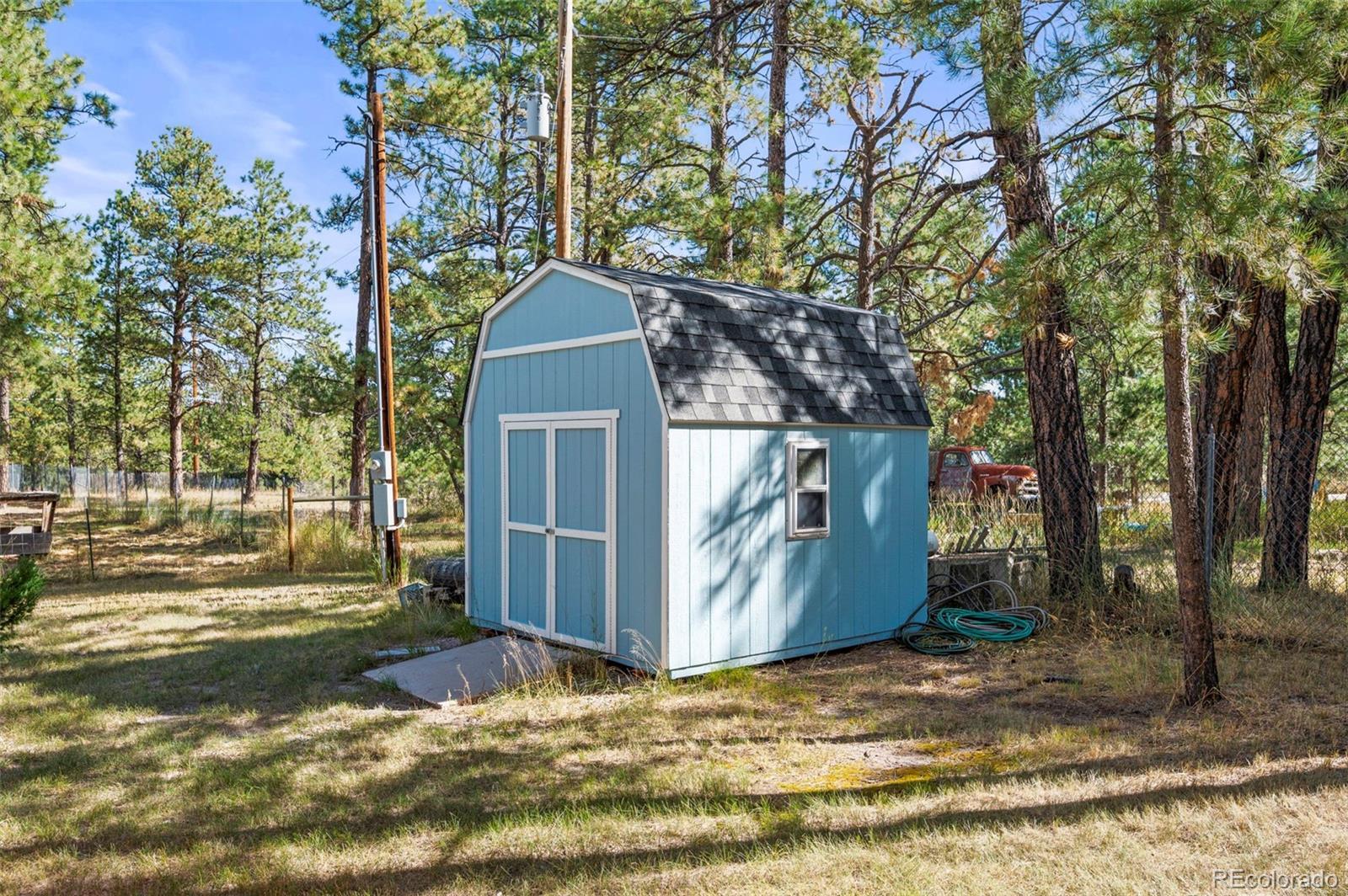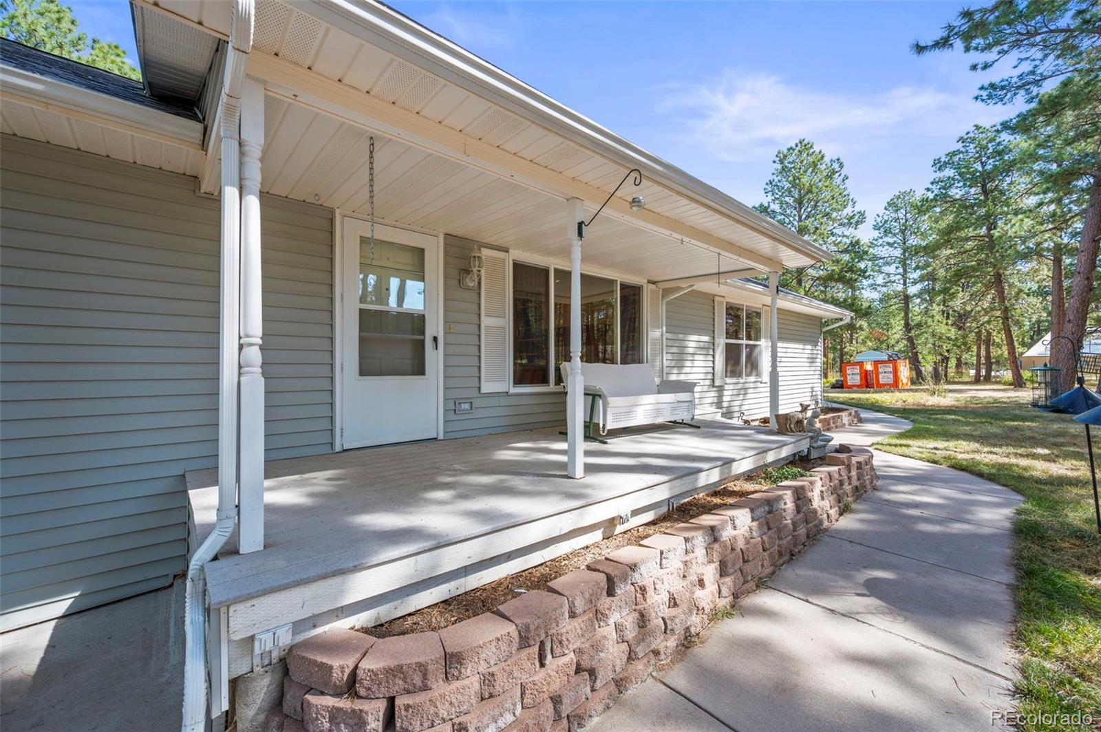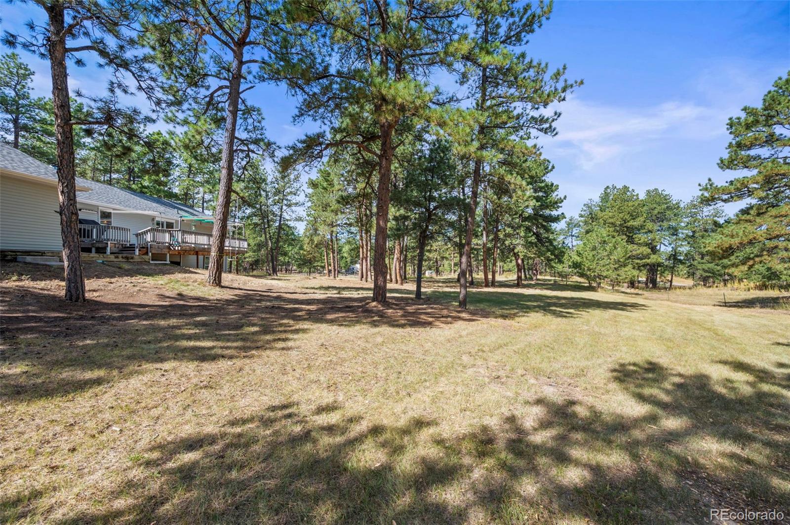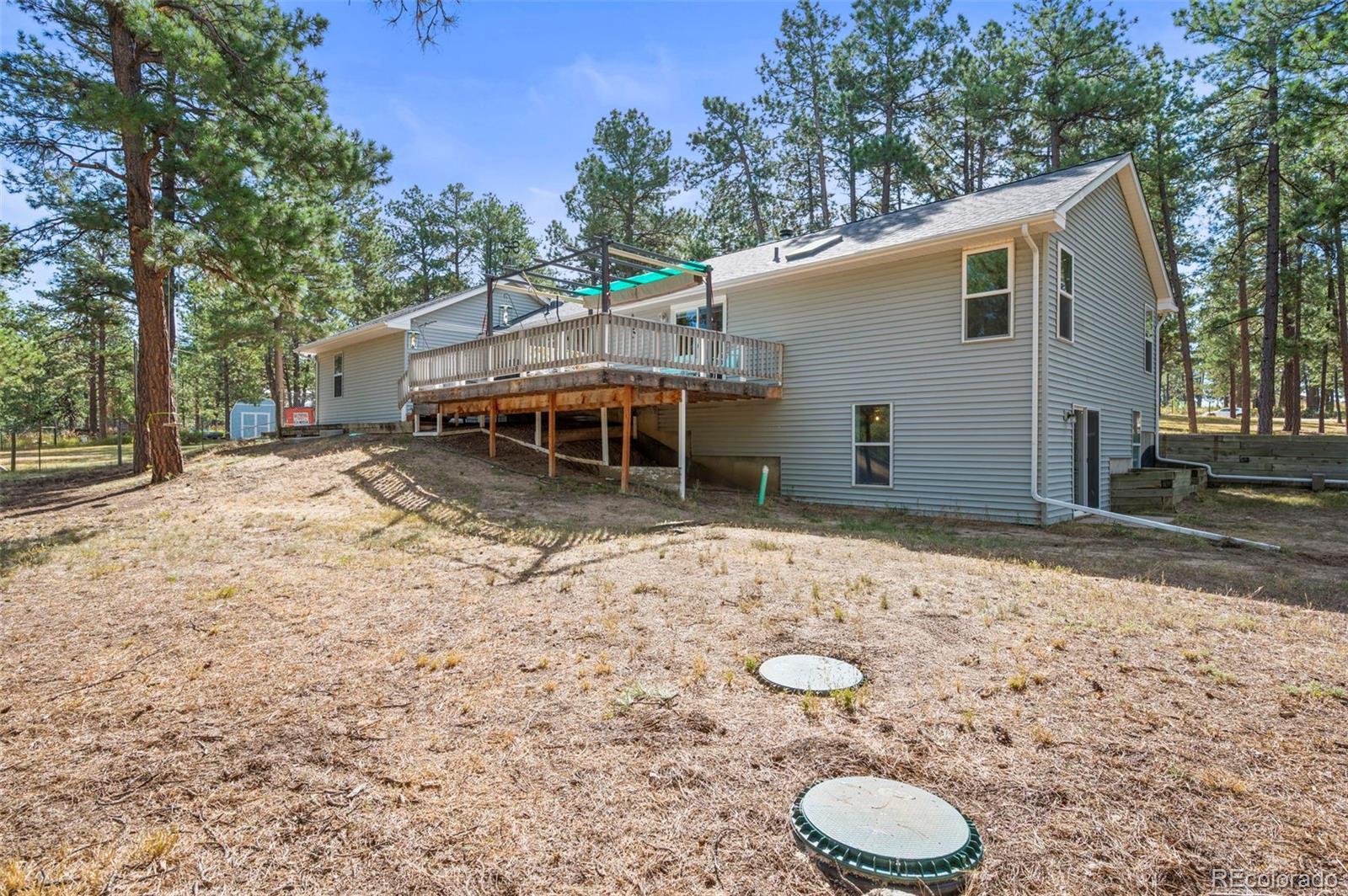 This spacious ranch home offers single-level living on five acres in Elizabeth. At the center of the home, a large living room with a fireplace connects to the dining area and kitchen, creating an easy flow for daily living and gatherings. The eat-in kitchen includes ample counter space, a pantry, and all essential appliances. The primary suite features a walk-in closet and a five-piece bath, while two additional bedrooms and a full bath are located on the opposite side of the home, providing a practical split-bedroom layout for privacy from the primary. A convenient laundry room sits near the attached two-car garage for everyday function. The home is move-in ready with fresh paint, new carpet and neutral finishes ready for your customization. Outdoor living is a highlight, with a covered front deck and back deck that both look out onto the peaceful forest setting. The mature trees provide both privacy and tranquility, offering a quiet retreat that can be enjoyed year-round. The home has been professionally fire mitigated to allow for easy homeowners insurance approval. The property is zoned RA-1, serviced by a private well and septic, and enhanced with recent upgrades such as a newer roof and new gutter guards. For the animal lover, the property is fully fenced with a gated entry and additional cross fencing for smaller pastures. There is a loafing shed with sliding doors if you'd like to bring any 4-legged friends. Or, for those without animals, you could utilize the storage sheds as a great place for lawn equipment, overflow storage, etc. With its acreage, privacy, and versatile layout, this home offers a true country lifestyle while remaining close to the community amenities of Elizabeth — an excellent opportunity to enjoy space and comfort in a serene location.