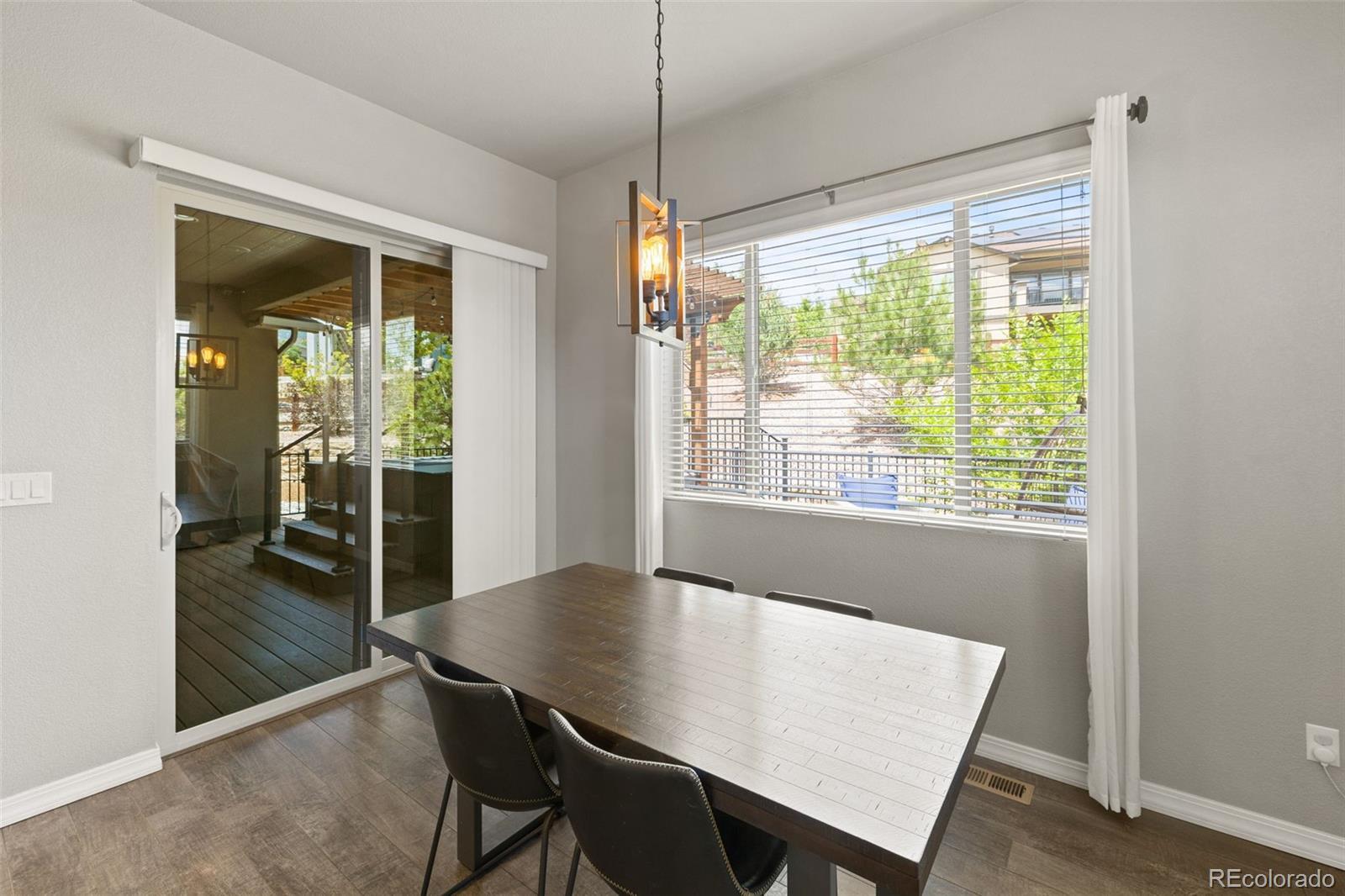 Luxury, lifestyle, and location converge in this stunning ranch-style masterpiece tucked within the prestigious Forest Lakes community. Perfectly positioned just steps from shimmering private lakes, miles of meandering trails, and serene open space, this residence offers a front-row seat to Colorado’s most coveted outdoor experiences—kayaking, paddleboarding, fishing, hiking, and community parks/concerts are all at your fingertips. From the moment you arrive, timeless sophistication and thoughtful design shine through. Inside, the open-concept layout is anchored by soaring ceilings, expansive windows that frame the natural beauty outside, and rich hardwood floors that flow throughout the main level. The gourmet kitchen is a chef’s dream, boasting granite countertops, stainless steel appliances, double ovens, a gas cooktop, soft-close cabinetry, and an oversized island. A stylish butler’s pantry adds both function and finesse. The great room is warm and welcoming, featuring a cozy gas fireplace and custom built-ins, seamlessly connected to an elegant dining area that opens to a covered composite deck—complete with roof heaters, so you never have to clear snow—ideal for year-round entertaining. Main-level primary suite offers a peaceful escape. JR suite, home office or flex room, and formal dining room on the thoughtfully designed main floor. Downstairs, the lower level expands your living space with a spacious rec room, wet bar, 2 additional bedrooms, full bath, and plenty of storage. Step outside to your personal oasis—lush landscaping and a private hot tub! A community known for its scenic 65-acre lake, rolling hills, and resort-style amenities, this home offers more than just a place to live—it delivers a lifestyle of tranquility, recreation, and elevated comfort. Quick access to I-25, top-ranked District 38 schools, and breathtaking mountain views, this is Forest Lakes living at its absolute finest.