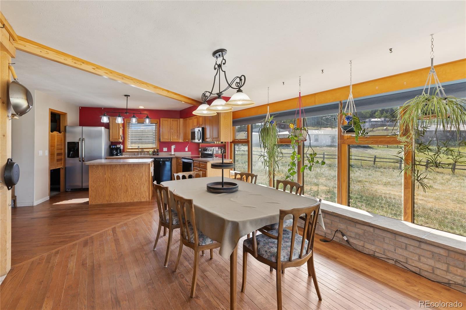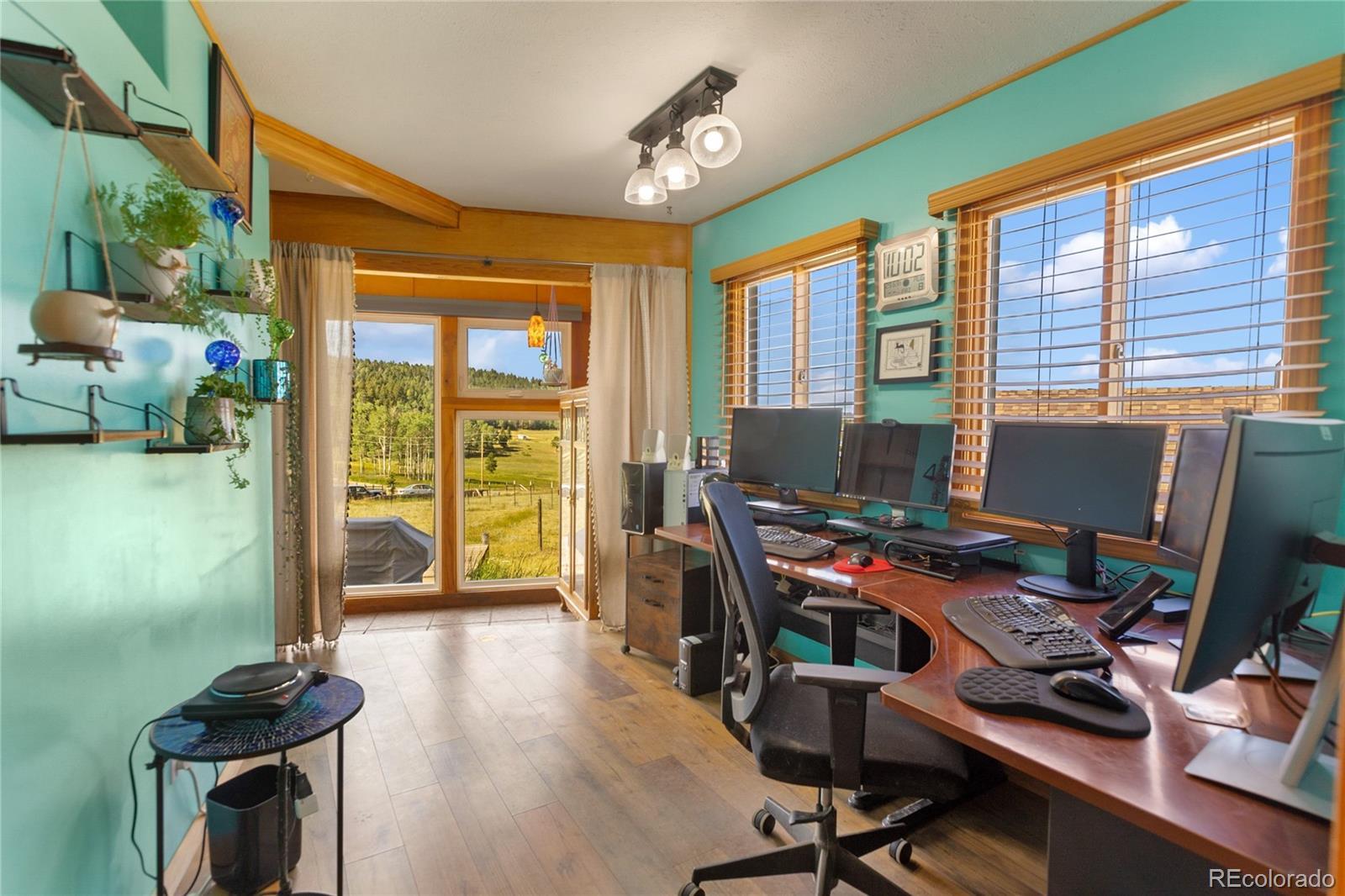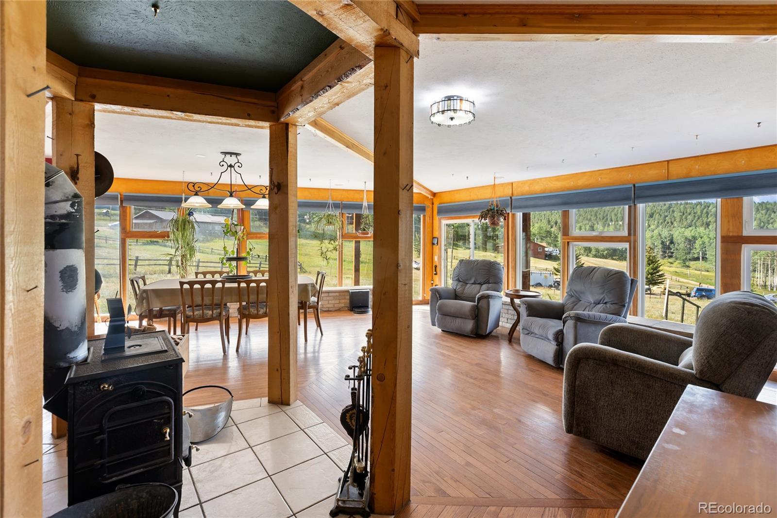 Immerse yourself in Colorado's mountains from the sanctuary of 3,425 sq ft of imaginatively curated living space where architectural character meets nature's splendor in perfect harmony. This custom home features natural hardwood floors, a sun-filled Great Room, Wood Stove & 2 walls of windows with sweeping southwestern views of peaks and forest. The open floor plan is perfect for entertaining allowing the Chef a generous work area, breakfast bar & walk-in Pantry while still being a part of any gathering. The wrap-around Sun Room (with eco-charm solar thermal walls) creatively unites the Kitchen, Dining & Living Areas to the tiered deck for grilling or unwinding with evening cocktails as alpenglow paints the mountains in ethereal hues. The patio is also wired for a hot tub! The primary suite's thoughtful design ensures you awakening each day to breathtaking vistas that inspire and rejuvenate the spirit. Savor morning coffee as dawn breaks over the peaks. Use the sitting area for a home gym or intimate sanctuary for contemplation. You'll appreciate the 3 large closets this suite has to offer as well as the ample bath. If you are lucky enough to work from home, then your Office is just steps away with tons of sunshine and views. Family or guests will enjoy the lower level with 3 bedrooms, family/theater room and full bath with double sinks. Additional perks include: Laundry with additional Refrigerator, Freezer and plumbed for a sink, huge walk-in front hall closet, wrap-around walk in attic storage, pellet stove in family room and Generac generator with separate dedicated 250 gallon propane tank. The ultimate Colorado lifestyle includes gear & toys and the oversized garage & workshop will accommodate all your needs. Restore the Green House to its former glory and enjoy nature’s bounty. Here sunsets, stargazing and crisp mountain air are part of everyday life and this home offers a front-row seat to nature’s ever-changing theatrical performance. Make it your Vision!