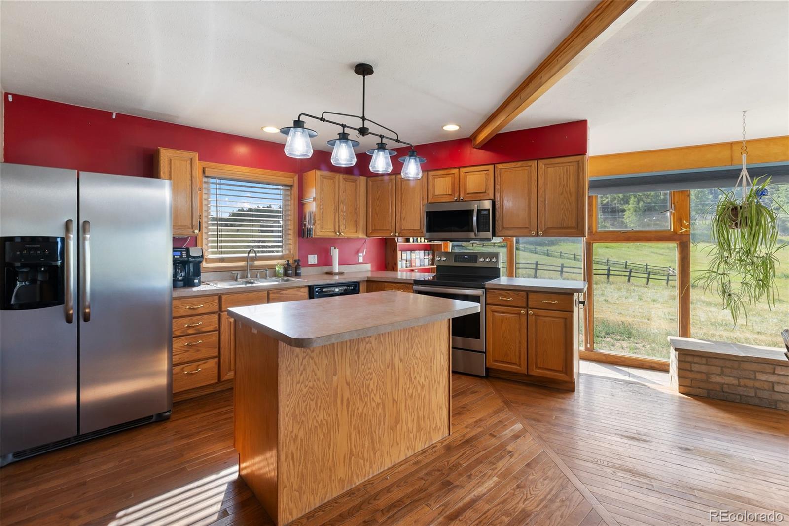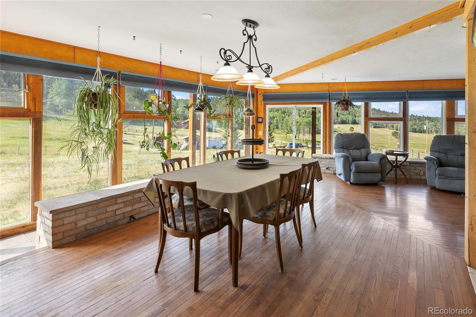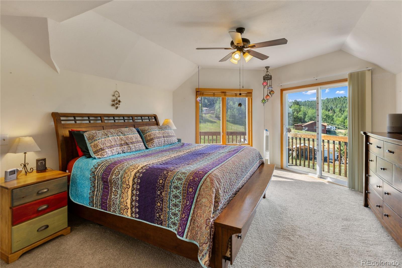 Immerse yourself in Colorado's mountains from the sanctuary of 3,425 sq ft of imaginatively curated living space where architectural character meets nature's splendor in perfect harmony. This custom home features natural hardwood floors, a sun-filled Great Room, Wood Stove & 2 walls of windows with sweeping southwestern views of peaks and forest. The open floor plan is perfect for entertaining allowing the Chef a generous work area, breakfast bar & walk-in Pantry while still being a part of any gathering. The wrap-around Sun Room (with eco-charm solar thermal walls) creatively unites the Kitchen, Dining & Living Areas to the tiered deck for grilling or unwinding with evening cocktails as alpenglow paints the mountains in ethereal hues. The patio is also wired for a hot tub! The primary suite's thoughtful design ensures you awakening each day to breathtaking vistas that inspire and rejuvenate the spirit. Savor morning coffee as dawn breaks over the peaks. Use the sitting area for a home gym or intimate sanctuary for contemplation. You'll appreciate the 3 large closets this suite has to offer as well as the ample bath. If you are lucky enough to work from home, then your Office is just steps away with tons of sunshine and views. Family or guests will enjoy the lower level with 3 bedrooms, family/theater room and full bath with double sinks. Additional perks include: Laundry with additional Refrigerator, Freezer and plumbed for a sink, huge walk-in front hall closet, wrap-around walk in attic storage, pellet stove in family room and Generac generator with separate dedicated 250 gallon propane tank. The ultimate Colorado lifestyle includes gear & toys and the oversized garage & workshop will accommodate all your needs. Restore the Green House to its former glory and enjoy nature’s bounty. Here sunsets, stargazing and crisp mountain air are part of everyday life and this home offers a front-row seat to nature’s ever-changing theatrical performance. Make it your Vision!