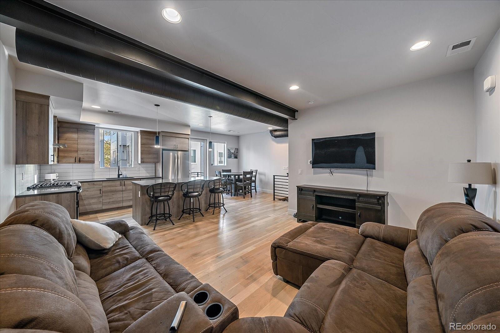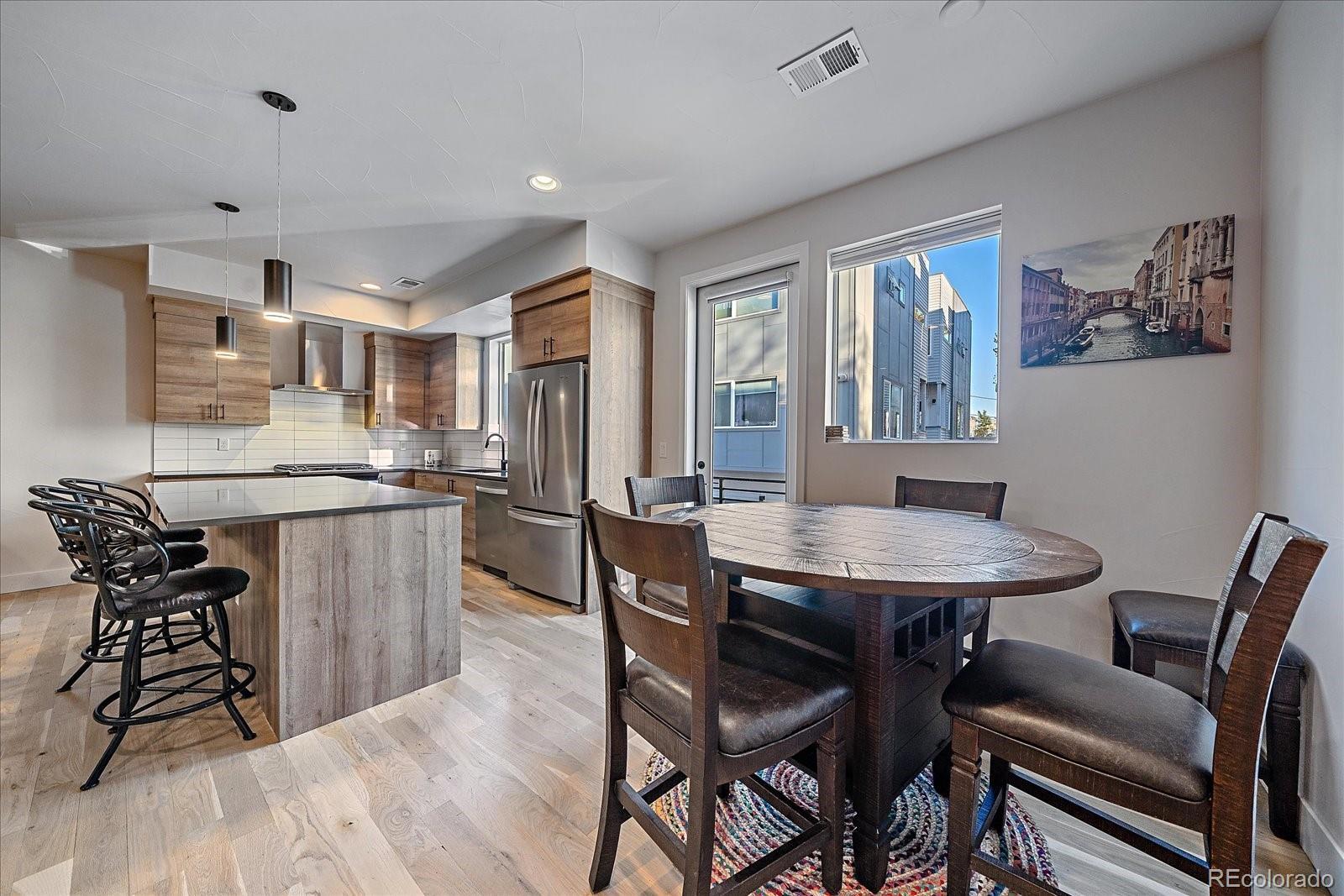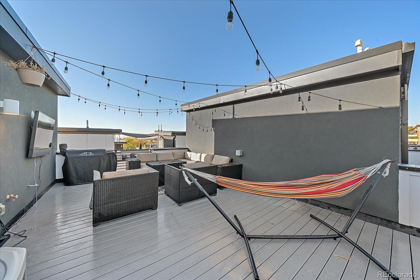 Come see this stunning townhome, with unparallel walkability, and incredible outdoor spaces! The main floor greets you with an open concept living and dining area with wood floors and deck for morning coffee plus a sophisticated powder room for guests. The kitchen is fantastic, with plenty of cabinetry, beautiful counter tops, gas stove, and large island. Heading upstairs you'll find the incredible primary suite, boasting a great walk-in closet, and ensuite bathroom! Additionally, there is a tastefully designed guest bedroom and full bathroom. Head up another level to the spacious rooftop deck with views of Downtown and The Rocky Mountains! This property includes an oversized 1 car garage with extra space for storage. Located steps from amazing restaurants, coffee shops, and Jefferson Park! Easily walk to Empower Field at Mile High, Children's Museum, Elitch Gardens, Ball Arena, and the Aquarium! With easy Access to I-25 and I-70, you can drive up the front range quickly to ski, hike, and breath in beautiful Colorado air. Come experience this home's unique design and urban appeal!