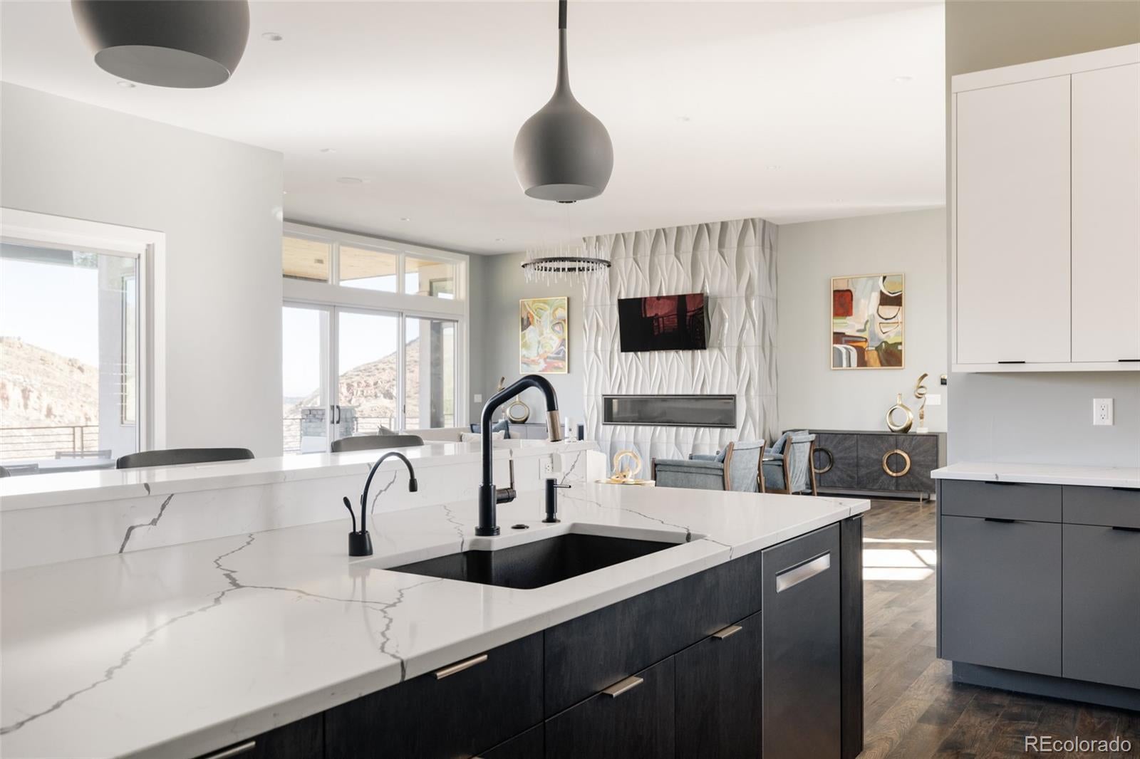 Awaken to sweeping views of the foothills and step onto the primary suite balcony to see the sun illuminate the city to the east. A quick change into riding gear and out of the garage you head down the block toward the trailhead on a custom built Santa Cruz Hightower for a joyride among your favorite trails. After several miles, a solid sweat, and burst of adrenaline, you settle onto the seemingly limitless main level patio to enjoy a cup of coffee before a stop in the steam shower and heading off to work in a black on black Ineos Grenadier...so reminiscent of the Land Rover Defenders of old. At the end of a productive day at the office, a sense of peace, calm, and tranquility envelope you like a warm blanket as you drive through the hogback and into Willow Springs - one of the best kept secrets on the Front Range. Just moments beyond, a brief stop to hit a few balls on the range and have a beer with friends at Red Rocks Country Club - effectively an extension of home - before the short drive down the hill into the Montane neighborhood. Slowing to say hello to a few neighbors, who have grown to be lifelong friends, you eventually reach the end of Dinosaur Ridge Rd and take in the view of your home, perched privately atop 2.5 acres and framed by a gorgeous sunset and Red Rocks Amphitheater. It is a spectacular summer evening - your family decides to spend the evening lounging on the patios, playing in the perfectly manicured backyard, preparing a steak dinner on the outdoor grill, then enjoy one another's company around the fire pit. The waterfall provides ambiance along with the lights beginning to charge up the atmosphere at Red Rocks just up valley while the Avett Brothers harmonize amongst themselves in one of the world's greatest concert venues. Home is your sanctuary, your temple, your most treasured space. And as each day comes to a close, you're evermore filled with gratitude at the knowingness that 15480 Dinosaur Ridge is truly your own personal wonderland.