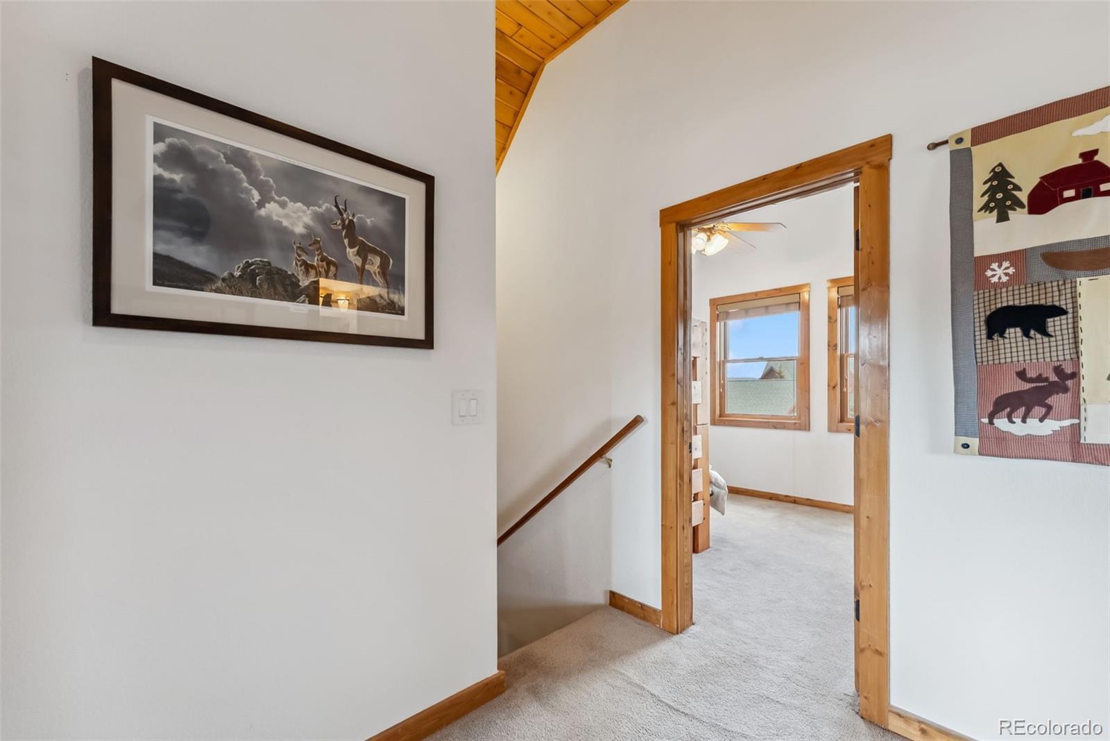 NEW LOW PRICE FOR THIS 3 bed / 2 bath home! HIGH DEMAND SHORT TERM RENTAL or perfect full time residence! Situated perfectly within the neighborhood of Whispering Aspens, this large cabin oozes character and charm throughout! The light and bright kitchen area is the hub of the home with unobstructed views from the large windows and has space for all! Cozy up in the family room warmed by tongue & groove ceilings and a gas fireplace. With 1 bedroom and 1 full bath on the main level & 2 additional bedrooms with soaring ceilings and a 2nd full bath upstairs, the cabin lives large. The oversized deck and patio offer a relaxing retreat or take advantage of the Clubhouse only a short walk away. Hiking is right outside your door with 1 1/2 miles of hiking trails within 160 acres of adjacent BLM Land. This low maintenance cabin is located for 4 seasons of enjoyment as it is just 1/4 mile from HWY 285 allowing for an easy drive to Breckenridge (30min), Buena Vista (30min), Denver and Colorado Springs (1+ hour). Enjoy the conveniences of Fairplay with numerous bars and restaurants, town festivals like Burro Days, and river access along the South Platte River just down the street at the Fairplay Beach! Make this your full time home or use as an investment property with a successful history as a Short Term Rental! Embrace mountain living!