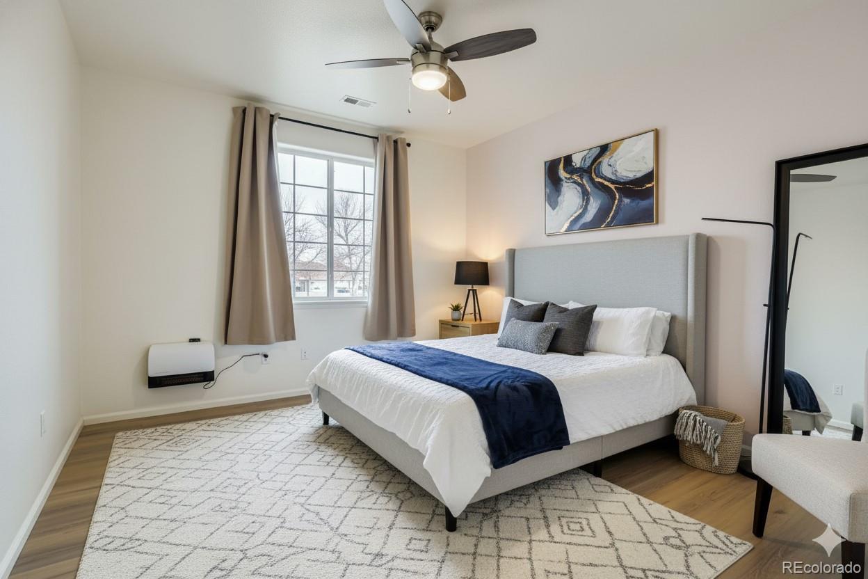 Welcome to Trails at Parkfield Lake, a peaceful and beautifully maintained community in the northeast part of Denver. This area blends suburban convenience with urban accessibility. Enjoy quick access to the expansive Parkfield Lake Park, featuring walking paths, open green space, and a tranquil lake. Shopping centers, grocery stores, and everyday conveniences are close by, along with diverse dining options. Commuting is seamless with I-70, I-225, and Peña Boulevard nearby, plus DIA and the Anschutz medical campus just minutes away. Residents benefit from nearby fitness centers, entertainment, schools, and fire station, all adding to the area’s desirability. This community offers one of the more affordable neighborhoods with strong long-term growth potential in the surrounding area. Trails at Parkfield Lake is a welcoming community with mature landscaping, a pool, clubhouse, fitness center, and hot tub that elevate the lifestyle and adds a sense of retreat. A thoughtful floorplan, and corner location offer a sense of separation and quiet, even within a connected neighborhood. Generous patio spaces provide ideal spots for relaxing or entertaining outdoors. Inside, the home is bright and open, with high ceilings, large windows, and thoughtful accessibility features that make it ideal for a wide range of needs. A split-bedroom layout ensures privacy for residents and guests alike, and everything from laundry to storage is within easy reach. Newer water heater, clothes dryer, and microwave oven. Both a detached garage and assigned parking are just steps away. The units proximity to Memphis St. adds an abundance of additional street parking if needed. This home blends function, charm, and location into a truly special opportunity to live with ease in one of Denver’s most connected neighborhoods. Note: The information contained in this listing may be reliable but is not guaranteed. The buyer must conduct due diligence and verify all information to their satisfaction.