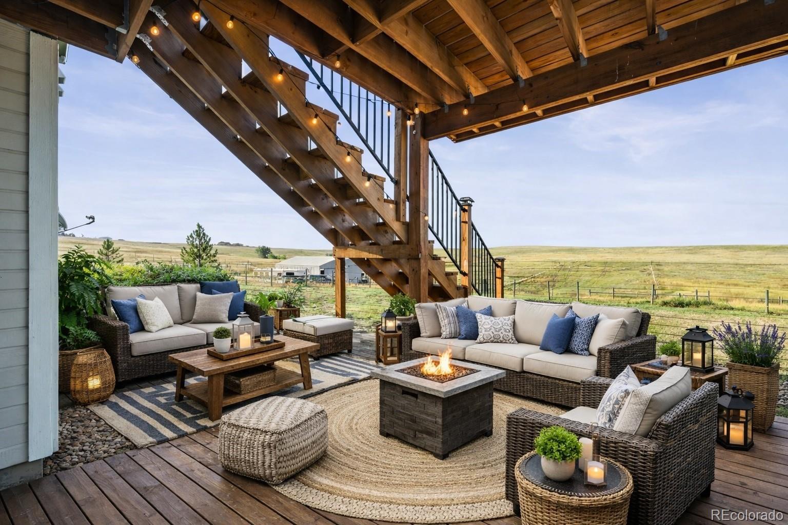 Huge price reduction - Hurry before someone else does! Set on 35 wide-open, usable acres, this move-in-ready ranch-style home offers the space, comfort, and freedom that make Colorado living so special. Inside, you’ll find brand-new carpet paired with beautiful hardwood floors, creating a warm, welcoming feel from the moment you step in. The farmhouse-inspired kitchen features quartz countertops and is perfectly positioned for everyday living and easy entertaining. The primary suite feels like a true retreat, complete with a four-piece bath, two closets, and windows overlooking the barn—so you can keep an eye on your horses without ever leaving your room. The family room opens to majestic views that stretch across the land, best enjoyed from the deck with your morning coffee or evening sunset. Downstairs, the unfinished walk-out basement offers endless potential to expand, customize, or create the space you’ve been dreaming of. This property is thoughtfully equipped for rural living with a domestic well permit that allows extensive watering, a water softener, and two pressure tanks. For equestrian lovers, everything is already in place: a 3-stall barn with rubber mats, three fenced pastures, plus a corral, arena, round pen, and bridle paths that connect throughout the neighborhood. Recent upgrades include a new roof, furnace, central A/C, water heater, and pressure tanks, along with high-speed Maverix fiber-optic internet—giving you modern convenience without sacrificing country charm. Paved roads, a school bus stop at the end of the driveway, and low Foxwood Ranches taxes (just 71 mills) make everyday life easy. Enjoy the peace of acreage living while still being a short drive to golfing, shopping, DIA, and the DTC. This is more than a home—it’s a lifestyle designed for both you and your animals.