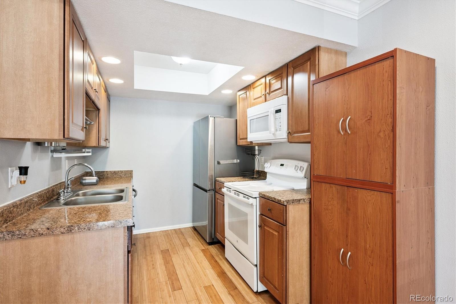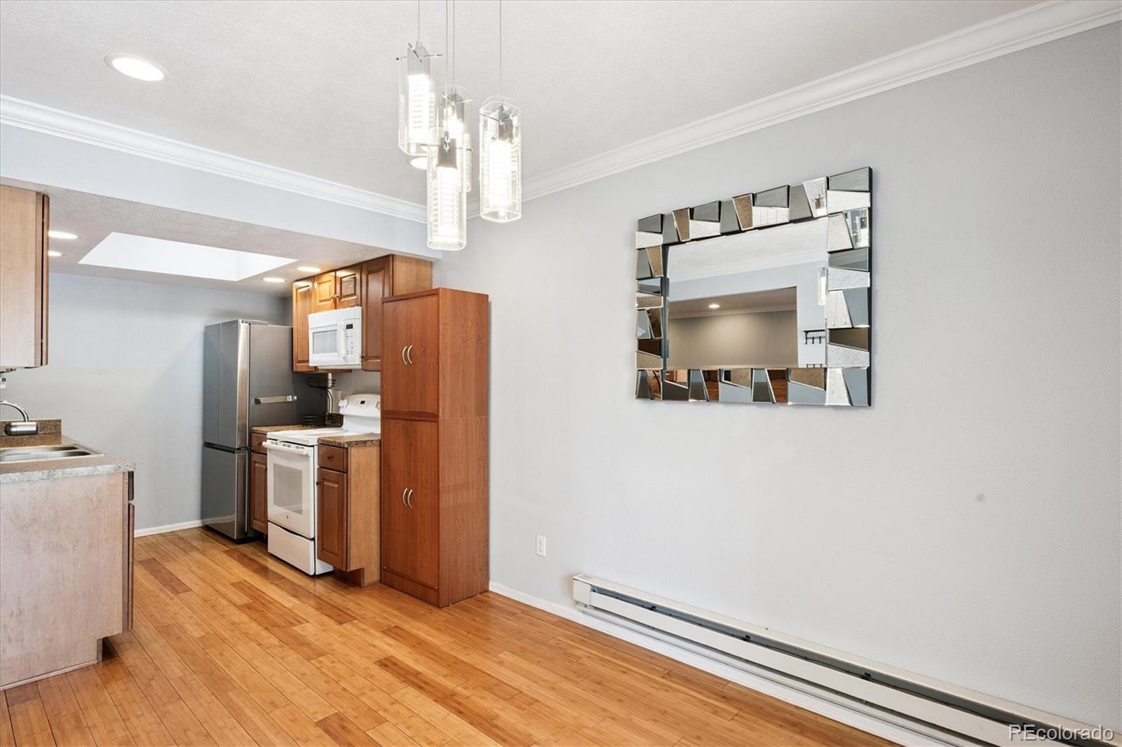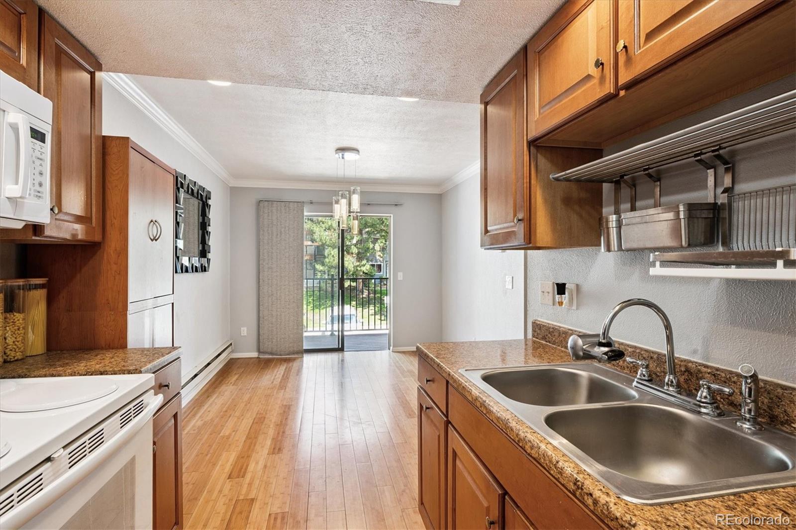 1/2 mile from Old Town Arvada! This charming 2-bedroom condo is perfectly situated directly across from Memorial Park, near light rail, scenic paved trails, numerous parks, shopping, and dining options. Inside, you’ll find beautiful wood floors, a tastefully updated kitchen and bath, and a cozy dining nook. Enjoy both a front deck for greeting neighbors and a private, covered back balcony overlooking a peaceful grassy common area. The home also includes a 200 sq. ft. storage unit located in the building’s lower level —perfect for bikes, gear, or seasonal items. An additional quarter bath offers a sink and generous countertop space for added convenience. With its combination of tasteful updates, thoughtful extras, and unbeatable access to all that Arvada has to offer, this condo truly stands out.