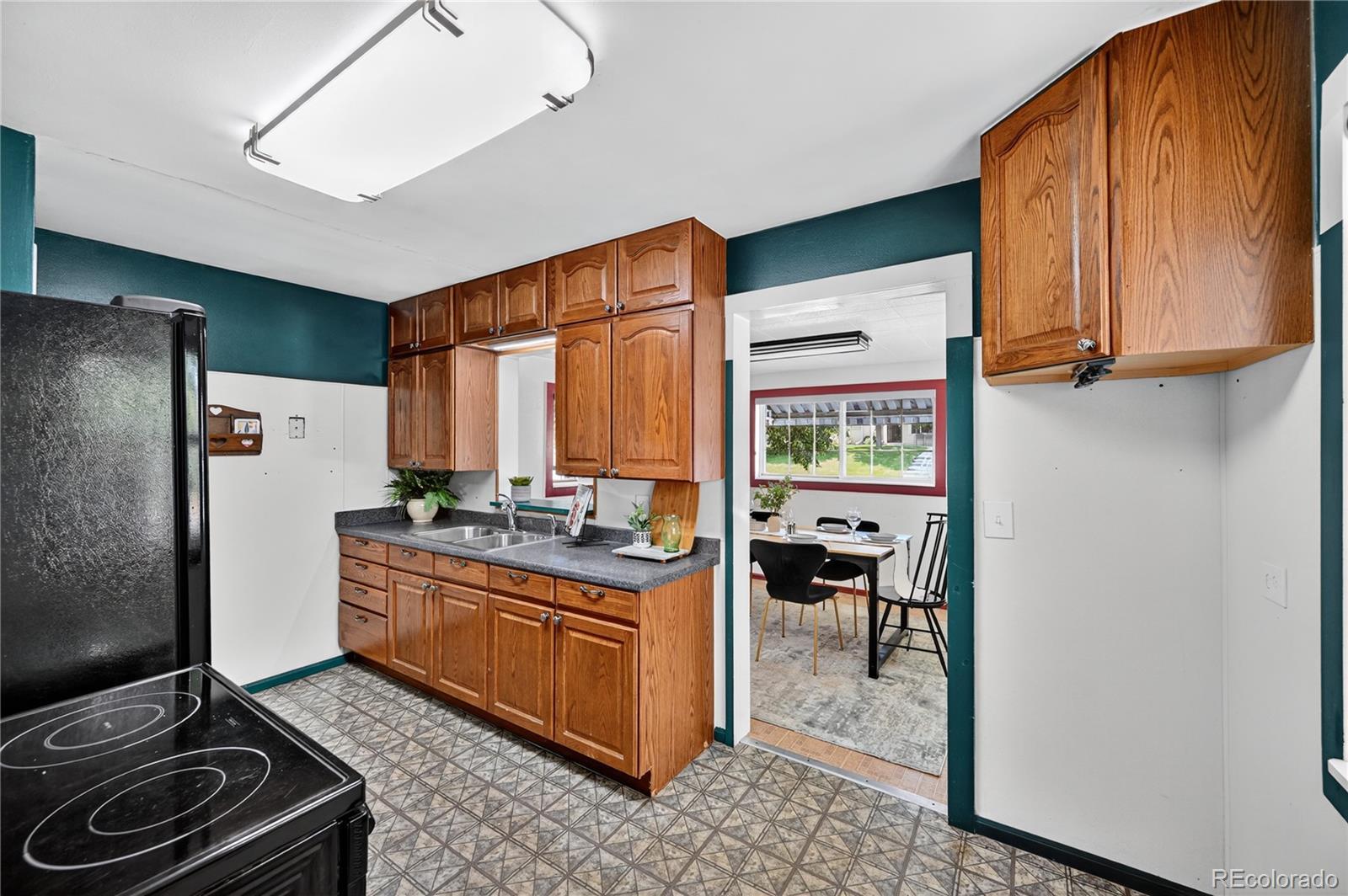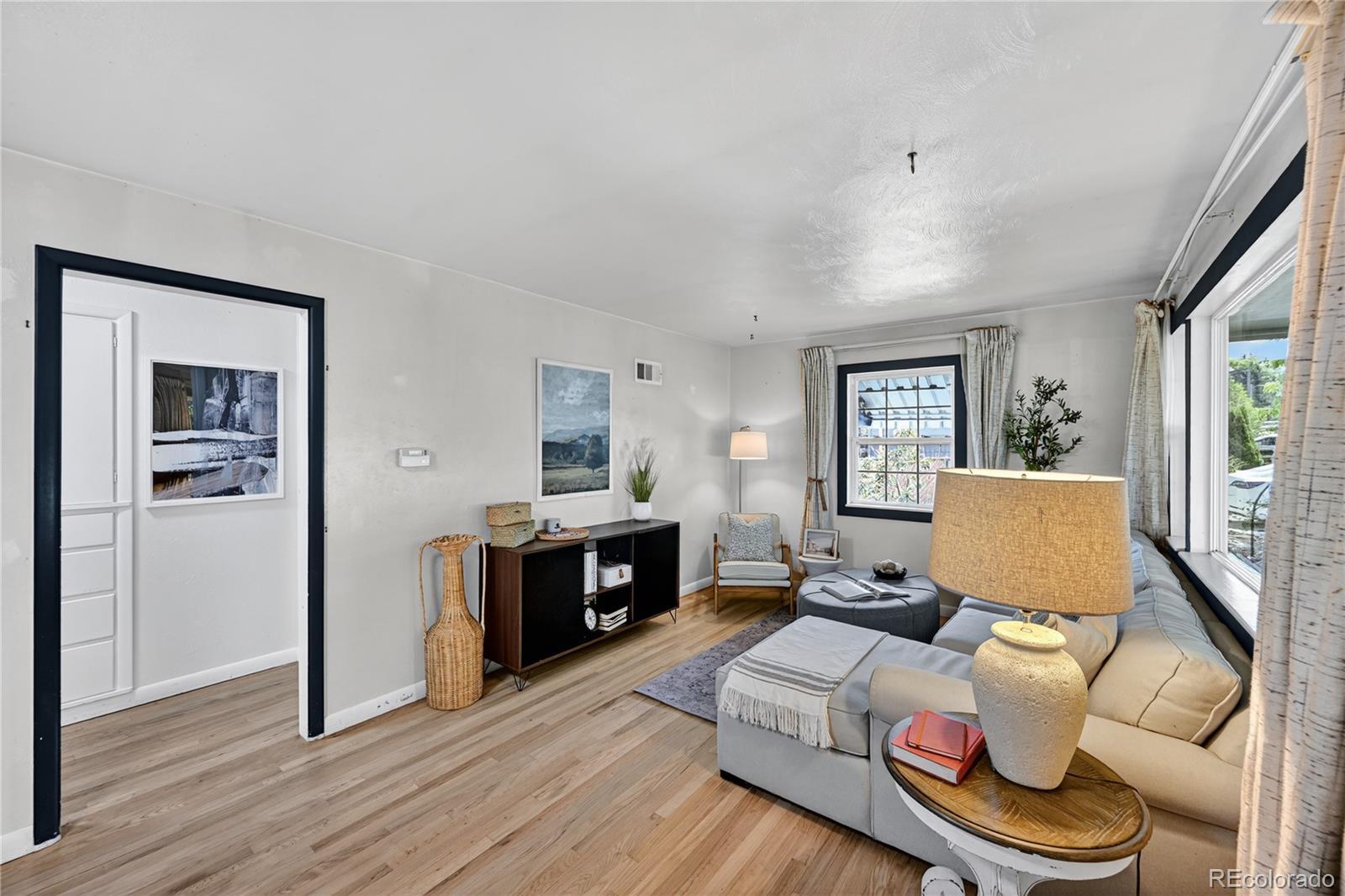Situated in the heart of the highly desirable Athmar Park neighborhood, this 4 bed/2 bath ranch-style home blends classic Denver character with solid bones, endless potential, and a prime location. Step inside to a sunlit living room with a large picture window, newly refinished original hardwood floors, and newer lighting that connects easily to the kitchen or down the hall to the home’s main level bedrooms. The kitchen features solid oak cabinetry and a functional layout with direct access to the attached garage and basement…ready for your own remodel or modern design ideas. Two main-level bedrooms share a full bath. The mostly finished basement (a rare feature in this neighborhood) offers flexibility with two non-conforming bedrooms, a remodeled bath, laundry area, utility sink, and ample storage. The fully fenced corner lot with alley access is a true bonus, providing space to accommodate extra parking, boats, or trailers. Mature trees offer shade for summer afternoons, while the backyard and garden area with raised beds, dog run, and storage shed add function and charm. Athmar Park is known for its mid-century charm, tree-lined streets, and convenient access to all things Denver. Huston Lake Park (just blocks away) has recently been upgraded with a brand-new inclusive playground and reconstructed walking paths, making it a favorite destination for all ages. You’re also minutes from Aspgren and Vanderbilt Lake parks, with quick access to I-25 and nearby light rail stations for easy commutes to downtown, the mountains, and beyond. Dining, shopping, and entertainment options are close at hand, making this home the perfect blend of opportunity, space, and location.