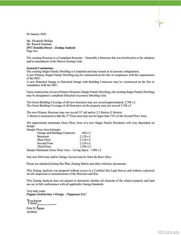 Beautifully renovated home with rare future upside in West Highland. This updated 3-bedroom, 2-bath home sits privately at the rear of a 9,370 sq. ft. lot, offering immediate comfort today with exceptional long-term potential. With over $100,000 in upgrades, the 1,342 sq. ft. layout is move-in ready and has consistently produced $3,650/month in rental income, making it ideal as a primary home, guest house, or legal Airbnb. The oversized lot allows for the option to build a new primary residence at the front while keeping the existing home as a legal ADU. Architectural analysis supports a future custom home of up to approximately 8,000 sq. ft. across all levels—a rare opportunity in this neighborhood. Rear alley access keeps curb appeal clean and allows for a grand front-home design, with a 35’ height allowance offering potential city and mountain views. Located on a quiet block of Zenobia Street between 29th and 30th, just blocks from Sloan’s Lake, parks, restaurants, and shops. Move in and enjoy now, generate income, or plan a future build—this property offers flexibility that’s nearly impossible to find in West Highland. Architectural and zoning documentation available in supplements.