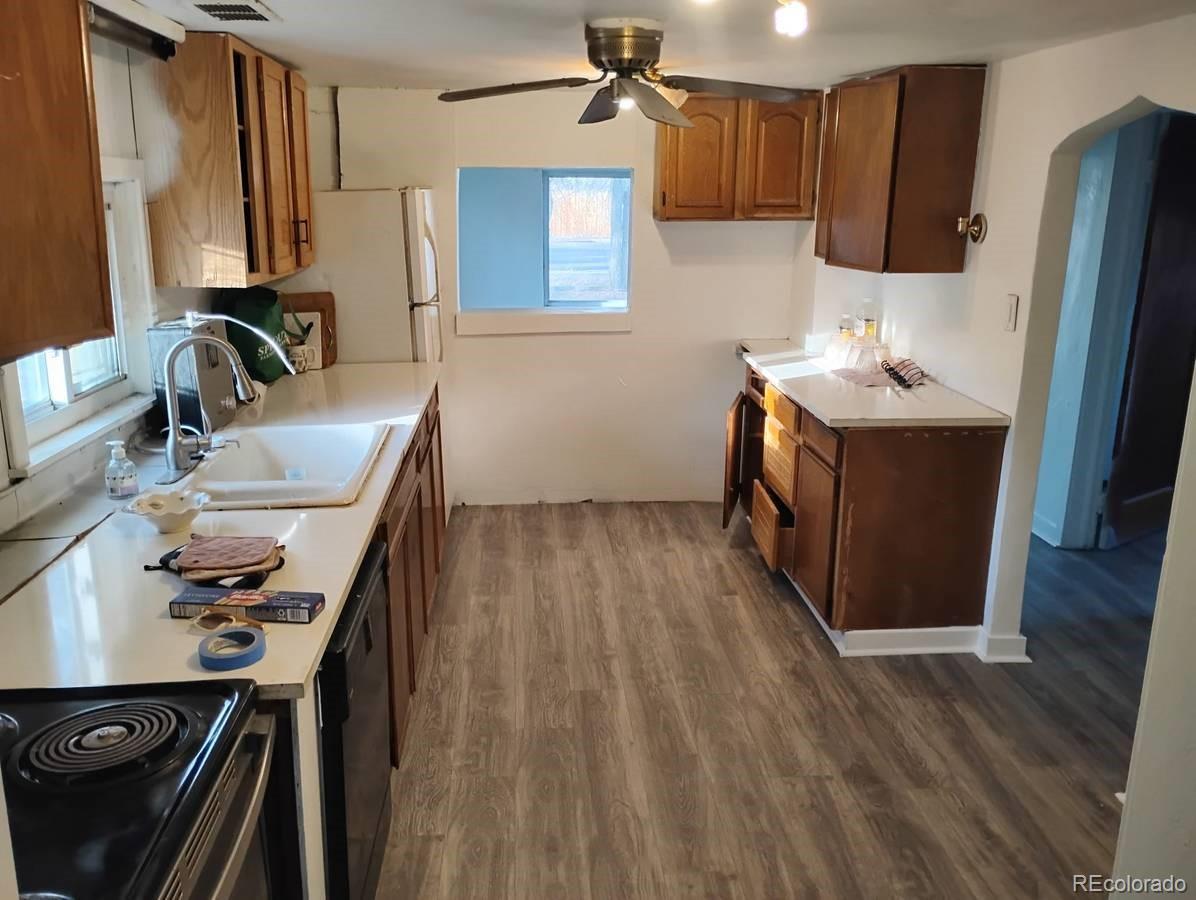 An adorable 1939 farmhouse in prime Lakewood location on a rare half-acre lot! This charming 2-bedroom, 1-bath home is full of character and opportunity. Inside, enjoy updated Laminate flooring throughout (except the bathroom), fresh interior paint, a cozy family room, and a versatile utility/mudroom with laundry hookups. The standout south-facing 3-season room (not included in square footage) is perfect for relaxing and entertaining. Fixer upper-Sold AS IS!-Property is zoned for an ADU limited to 700 sq. feet-1 bedroom dwelling. Step outside to a private, fenced backyard oasis that backs to mature trees and opens up to a sprawling recreation field—ideal for summer barbecues, pets, gardening, or future expansion. With only one adjacent neighbor, (a church)-privacy abounds. Spacious half-acre lot, Oversized detached 2-car garage, Sewer, water, and utilities already in place. New furnace, Strong rental history, Easy access to Downtown Denver and the entire metro area, Backs to The Link Recreation Center for added lifestyle perks This property offers exceptional development potential: subdivide and build an additional dwelling or explore multi-family possibilities (buyer to verify). Whether you’re looking for a cozy home with land, an income-producing rental, or a lot with future build potential—this one checks every box. Tenant-occupied through July 31, 2026, providing reliable rental income while you plan your next move.