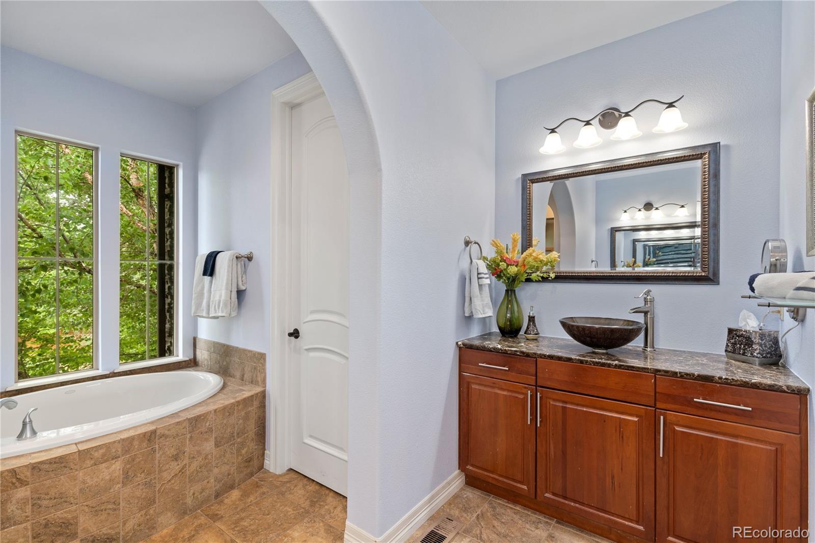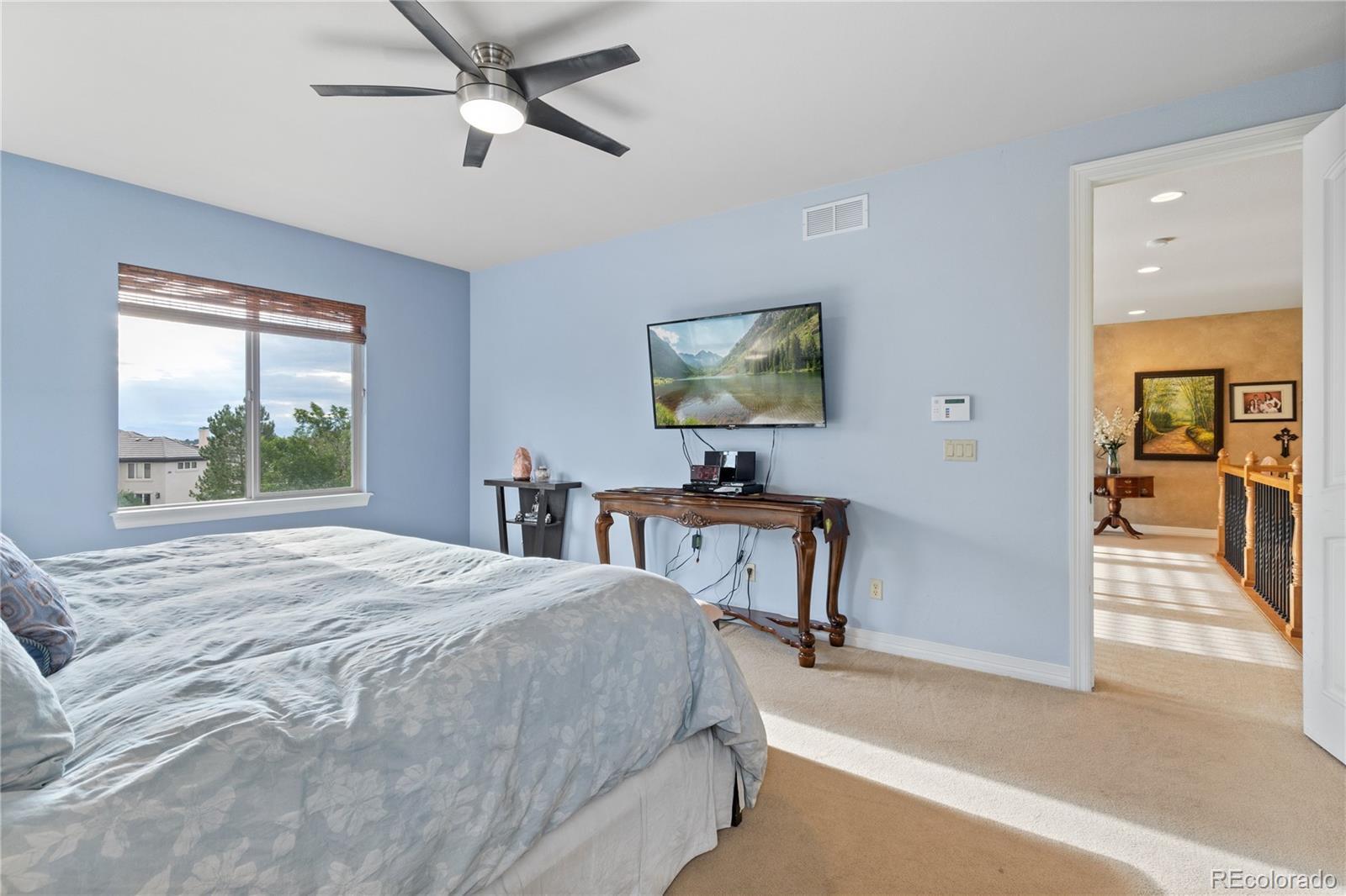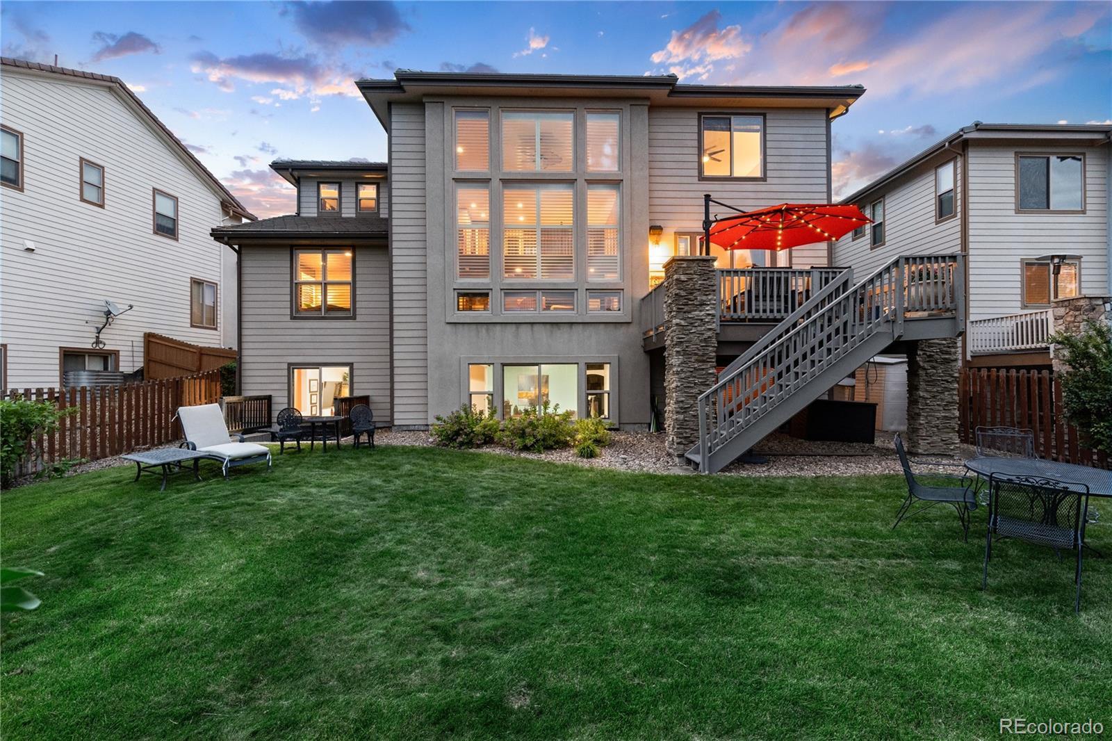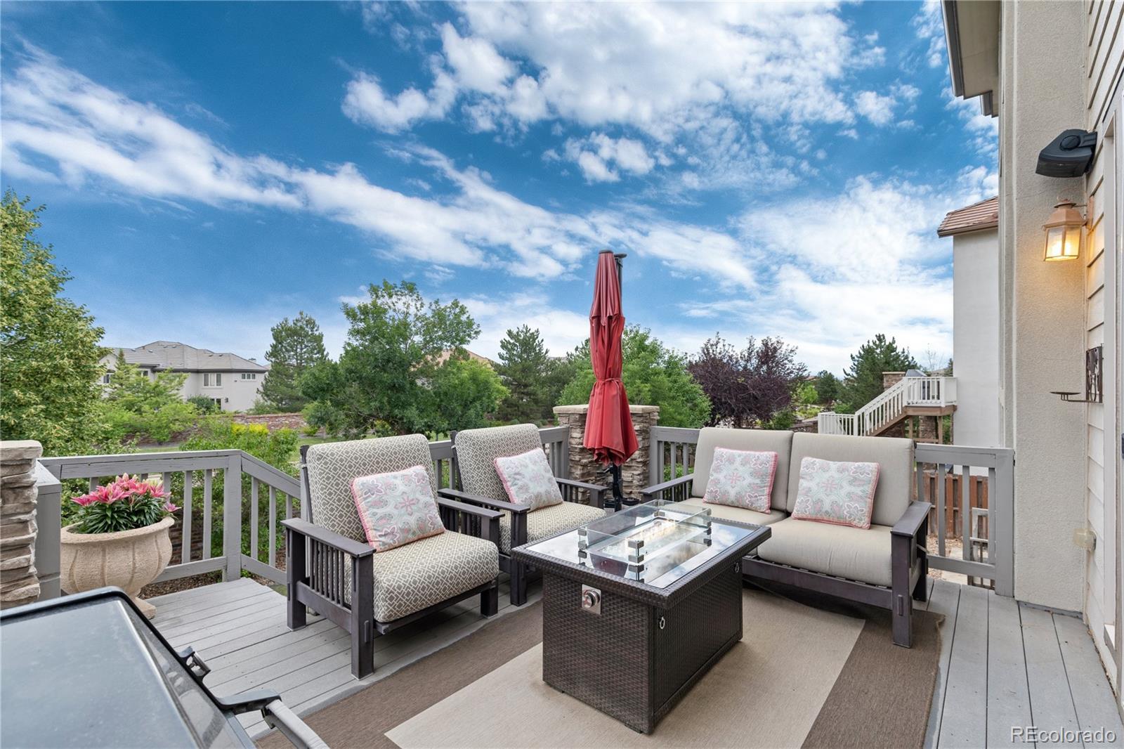 Luxury living in gated Heritage Hills * Sweeping mountain views * Seller updated interior paint on 9/27 ~ Open floorplan with vaulted ceilings * Beautiful architectural details upon entering as your attention is drawn to the second level bridge-way and high ceiling two story foyer * Family room with floor to ceiling windows and two-sided stacked stone fireplace to main floor office * Gourmet stainless kitchen with 5 burner gas cooktop, refrigerator and dishwasher new in 2020, butler's pantry, large granite island with serving area for gatherings or casual dining * Main floor bedroom (no closet) and main floor full bath * Plantation shutters * Escape to your private primary suite with two walk-in closets, separate vanities with glass bowl sinks, walk-in shower and large soaking tub * Two more bedrooms with a shared full bath on second level * Partially finished garden level basement full of windows and light! with two finished bedrooms (one non-conforming) and an oversized partially finished area with sealed, stained concrete floors and exposed ceiling waiting for your finishing ideas to suit your needs * Cul-de-sac location * Sunrise views on your second level balcony * Awe at the sunsets from your west facing deck with gas line for summer entertaining * Resort style living, your home is a half block walk to one of two junior Olympic sized pools, the tennis courts, a playground, a Jr soccer field, and a basketball half court * Quick access to I-25 and E-470 * Walk or bike to Lone Tree Elementary * Top rated schools * Park Meadows retail resort * A vast variety of restaurants, coffee shops & stores * Lone Tree Arts Center * SkyRidge Medical Center * Charles Schwab * Miles of hiking and biking trails at Bluffs Regional Park * This home's location has an easy walk to light rail for your work commute or a night out