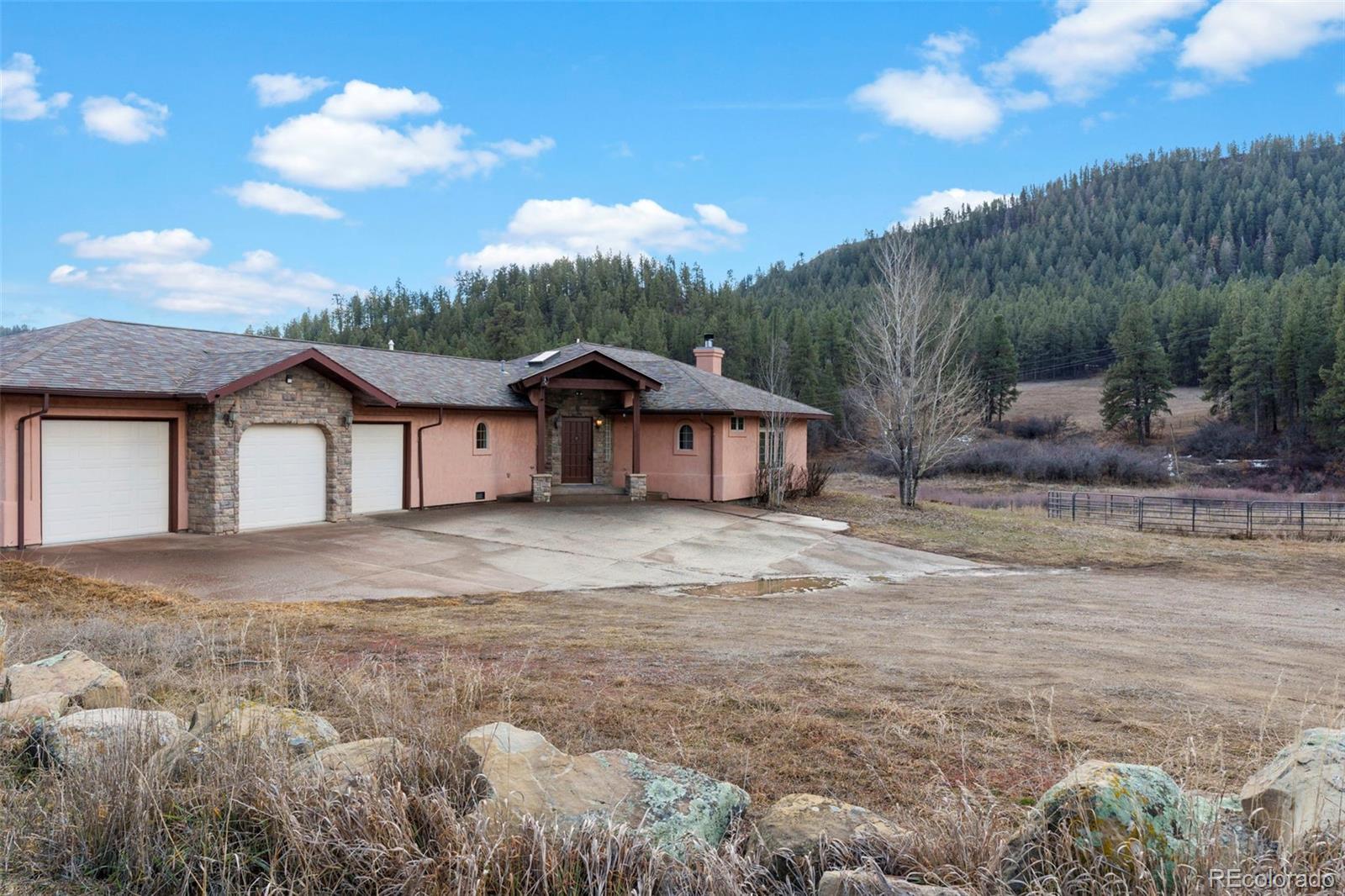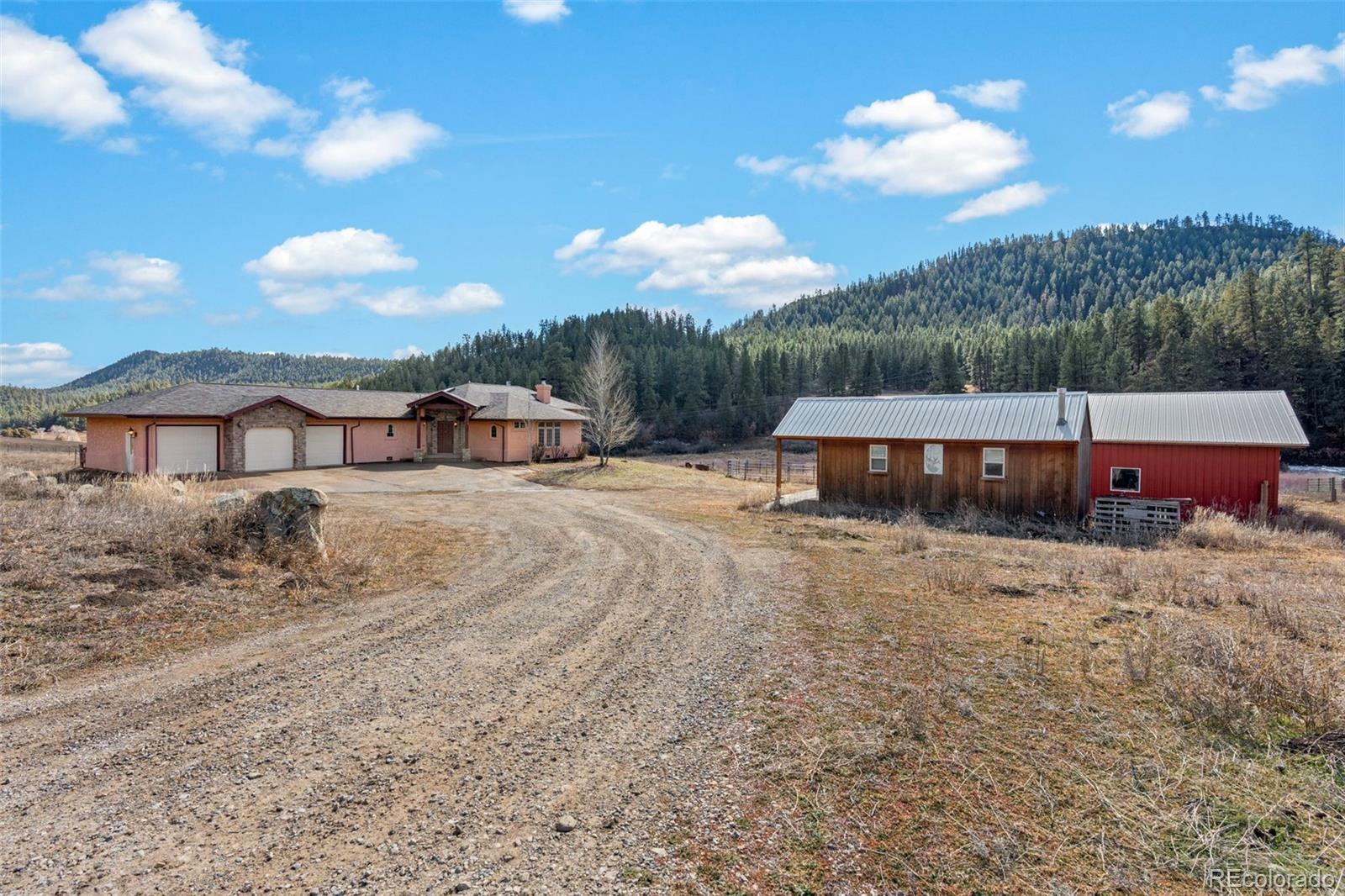 Discover an extraordinary 126.5-acre mountain ranch ideally situated between Durango and Pagosa Springs along Highway 160, just minutesfrom Bayfield. This rare offering combines lush irrigated pastures, towering ponderosa pines, and year-round natural beauty with Yellow JacketCreek meandering through the land and a natural spring enhancing its agricultural and recreational value. Wildlife of all kinds are attracted tothe creek and spring. Bordered by National Forest to both the north and south, this property offers exceptional privacy and direct access toendless outdoor adventure. The mix of open meadow and wooded terrain creates ideal habitat for deer, elk, and other native species whileproviding breathtaking mountain and valley views in every direction. The ranch includes approximately 15 irrigated acres with valuable waterrights. fully fenced andcross-fenced, the property is ready for cattle, horses, or other livestock.The 2,101 square foot stick-built ranch-style home,constructed in 2007, offers comfortable single-level living with 2 main floor primary suites and 3 bathrooms. The primarysuites are located on the main level and includes a walk-in closet and one has an in room coffee bar. Additional highlights include a game room,ceiling fans, gas/wood fireplace, 10 foot ceilings, in floor heat, and laundry room. Enjoy Colorado evenings from the covered deck overlookingcreek, and expansive pastures. The deck even has it's own fireplace! The attached, oversized, heated 3-car garage provides ample space forvehicles, equipment, and recreational gear. Property includes a domestic well, septic system, propane, electricity through La Plata ElectricAssociation, and high-speed internet via Starlink. There is even cell phone reception at the home. With no HOA and agricultural zoning, thepossibilities are extensive — agriculture, livestock, equestrian operations, orchard, tree farm, or mountain recreation.
