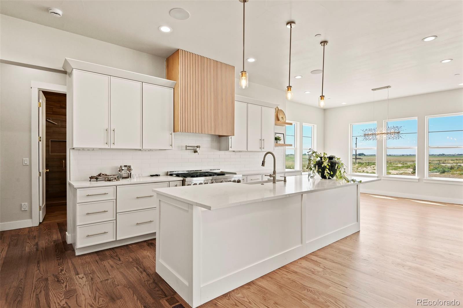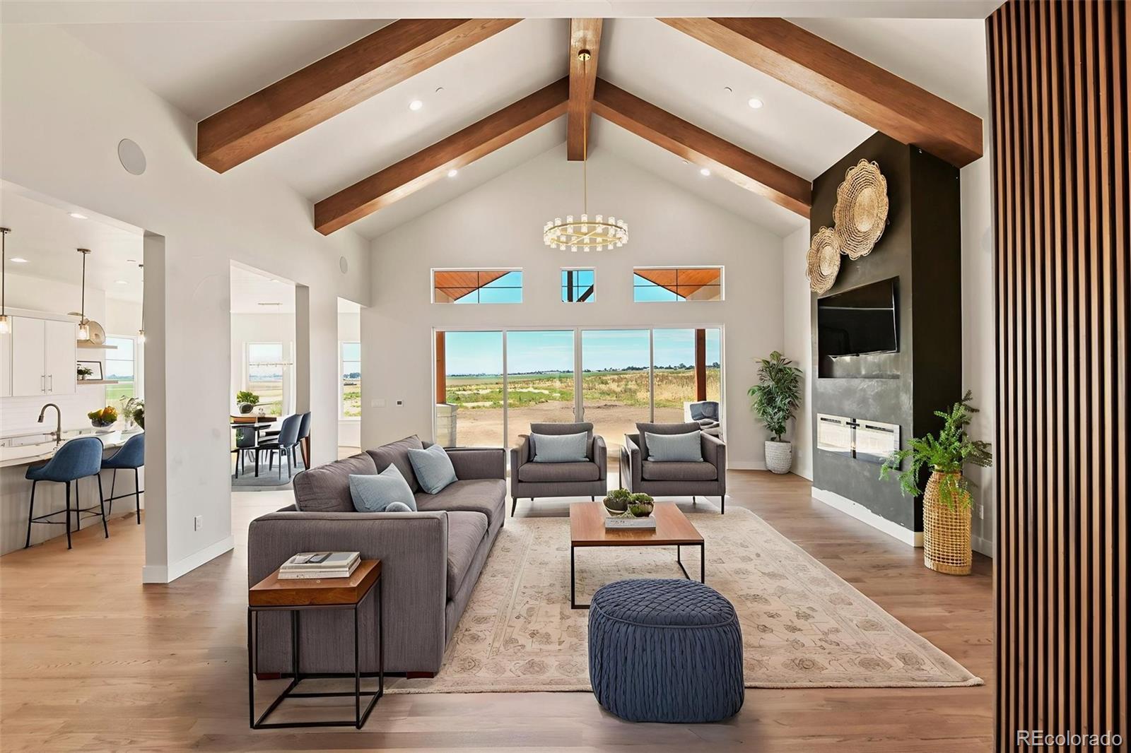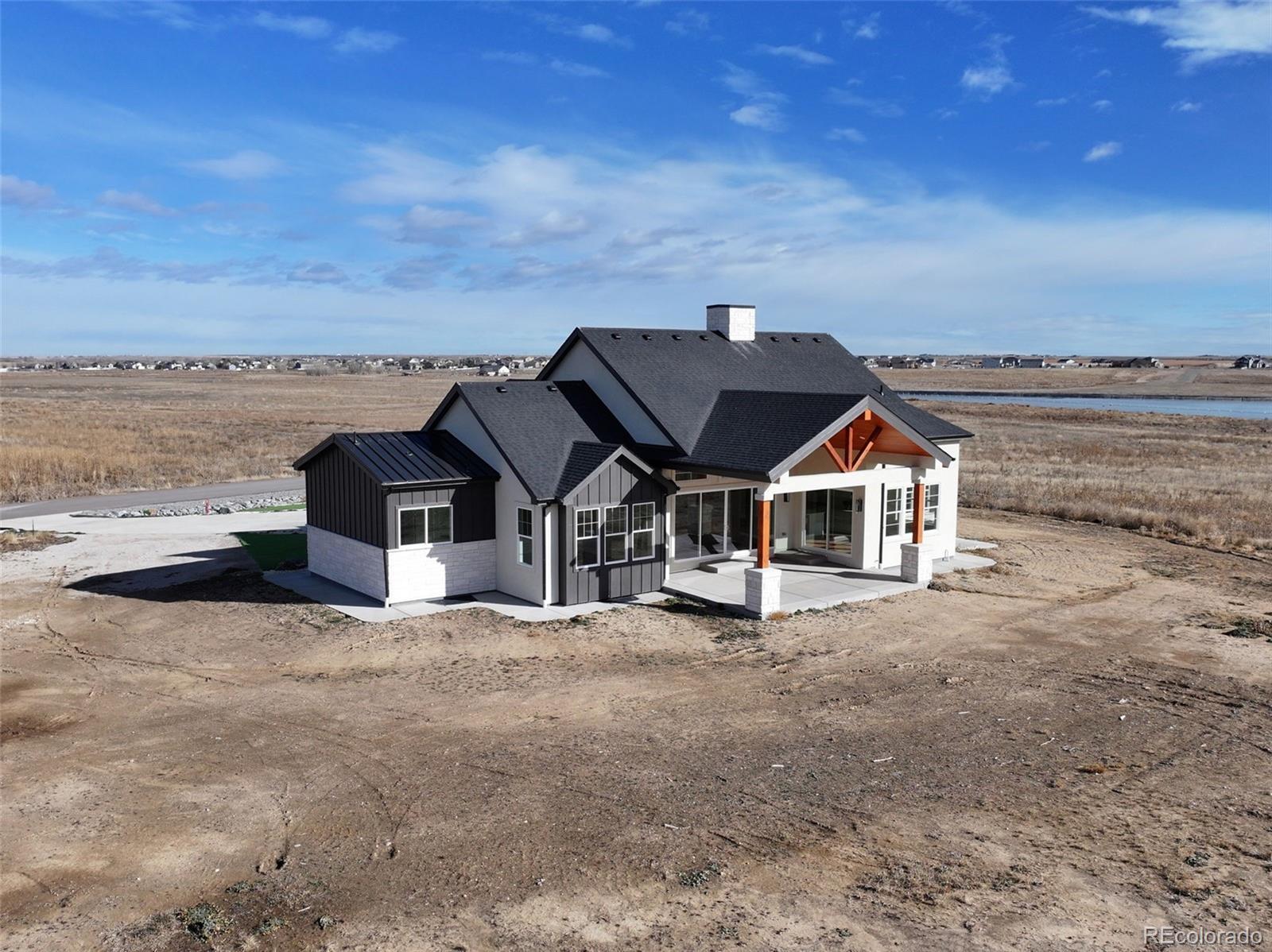 Price improvement on this brand new home! $30K concessions now offered for buy downs etc! Located on almost 2 acres, this modern and stylish ranch style home will impress! With 5159 square feet of living space, 4 bedrooms, and 4 bathrooms, this home has plenty of room to spread out. The home has a warm and inviting feel, with many windows for lots of natural light, real hardwood floors, vaulted ceilings, elegant light fixtures, mixed with wood elements for a very modern feel. The kitchen has a large 12 ft island, quartz countertops, ceramic farm sink, pull-down faucet, walk-in pantry, and stainless KitchenAid appliances, including a 6-burner gas range with a double oven. The primary bedroom has vaulted ceilings and a large walk in closet. The 5 piece bathroom is truly a statement of elegance, with stunning large format tile floors, modern gold cabinet hardware and light fixtures, oversized shower, and quartz counters on the vanity. The secondary main floor bedroom has an ensuite bathroom, with oversized shower and two walk-in closets. The home office is perfectly located for privacy while you work. The laundry room doubles as a mud room, with a bench, clothes hooks, cubbies for extra storage, multiple cabinets, and utility sink with pull down faucet. Downstairs, there's lots of recreation space with a family room plus an oversized game room, and a wet bar, perfect for those Super Bowl parties! There are two additional bedrooms and a 3/4 bathroom with large format tile. This home has a fire sprinkler system for safety, plus a Navian system for instant hot water. The 3-car oversized garage is fully finished with drywall, insulation, a gas heater, two openers, and insulated doors. Country Club Ranchettes does not have an HOA, but does have protective covenants that follow the county Residential Estates guidelines. Horses are allowed. Only 30 minutes from the airport or downtown Denver. Check out the virtual tours for arial views and walk-throughs.