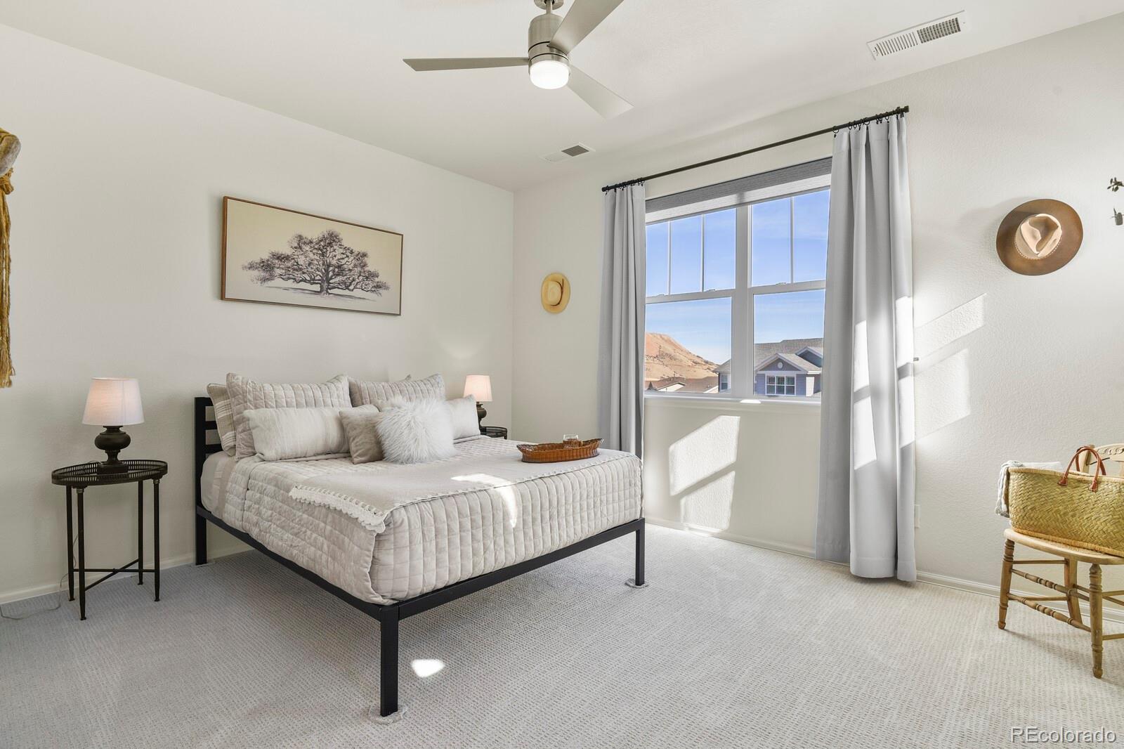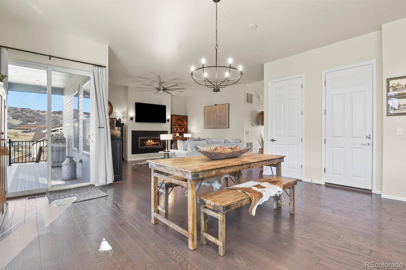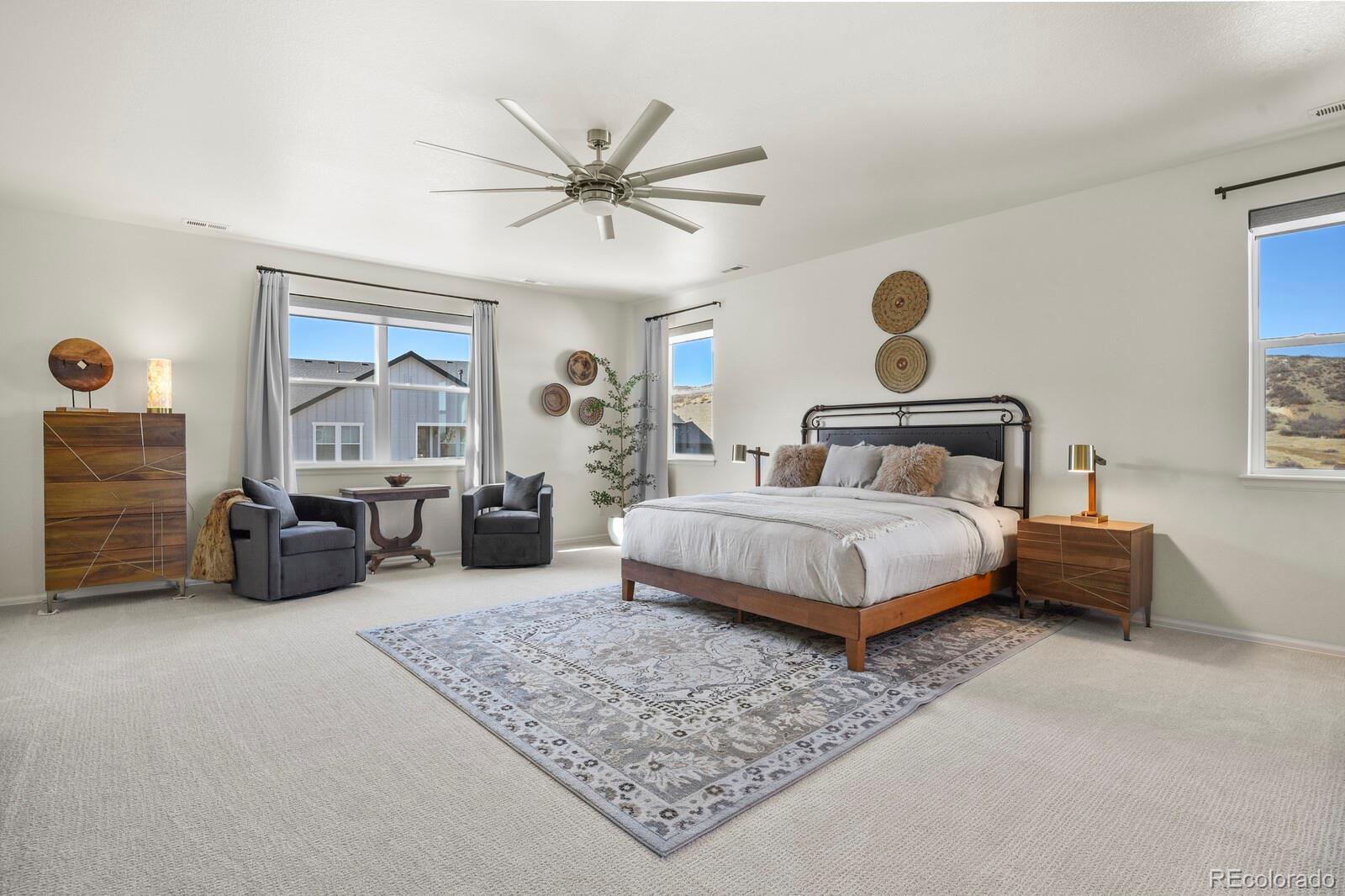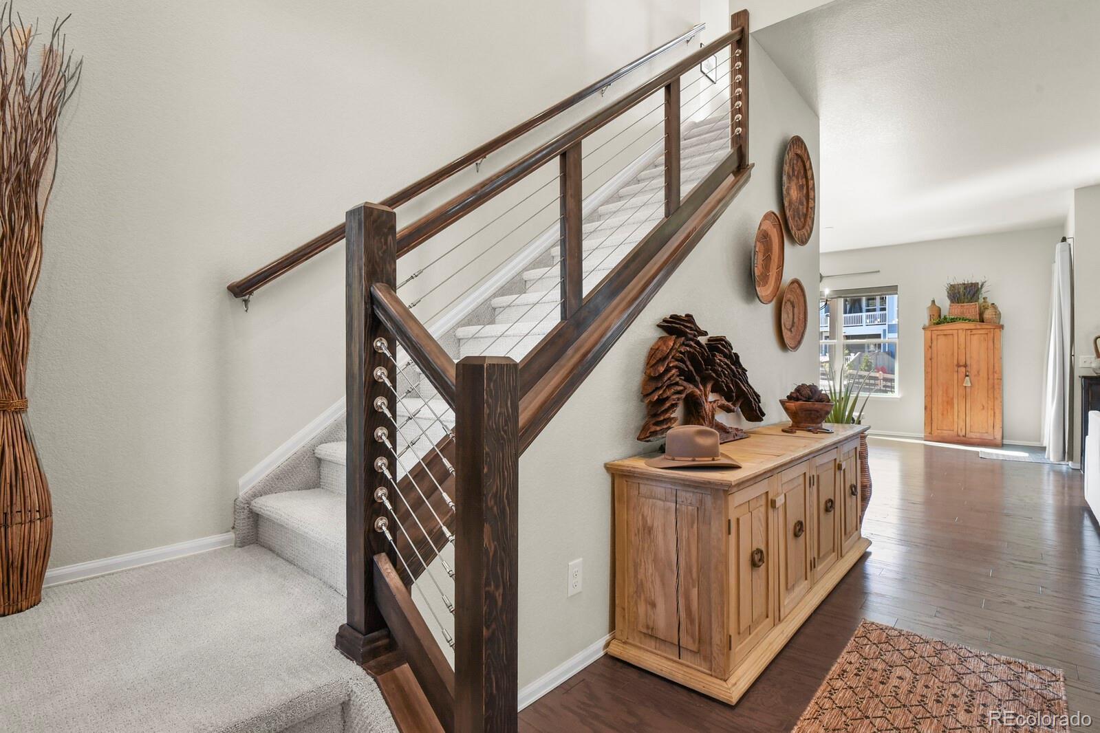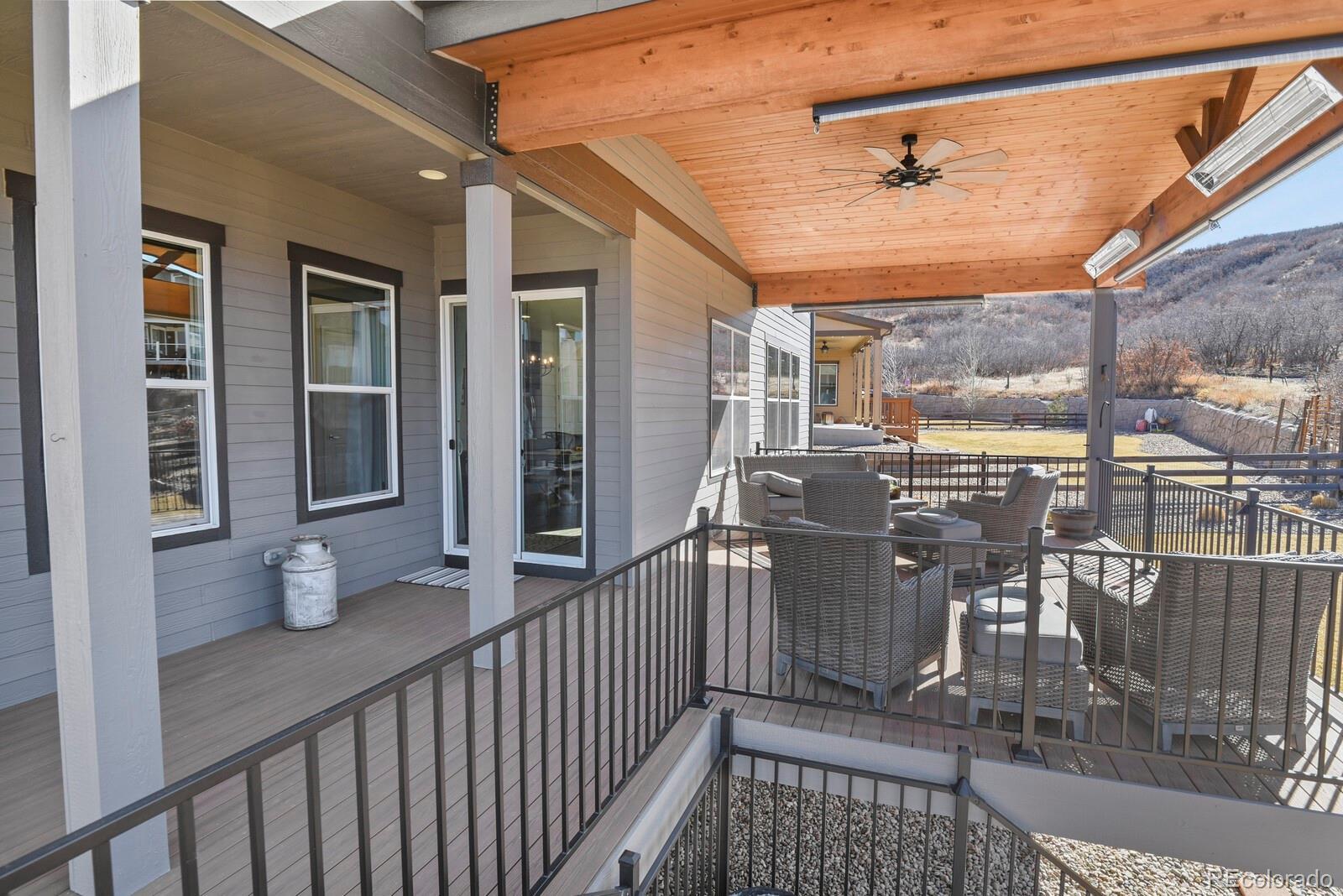 Welcome to this turnkey and meticulously cared for home in the Park Preserve community of Castle Rock, offering thoughtful upgrades, a great layout, and direct trail access behind the home. This property blends comfort, function, and the Colorado lifestyle. The home also benefits from a lower property tax rate and low association fees compared to The Meadows and many newer build communities such as Crystal Valley. The main level features high ceilings, hardwood floors, and abundant natural light throughout the open living space. The kitchen is ideal for everyday living and entertaining with a large center island, high-end stainless-steel appliances including double ovens and a gas cooktop, generous cabinetry, and a walk-in pantry. The living and dining areas flow easily, creating a welcoming space to gather. A main floor guest suite with a private bath and walk in closet provides flexibility for visitors or multi-generational living. Upstairs includes a spacious loft, laundry room, and three additional bedrooms, including a large primary suite. The primary retreat features dual walk-in closets, double vanities, a large walk-in shower, and a private water closet. The unfinished basement offers excellent storage and future potential. The backyard is a true extension of the home with a beautiful large custom covered deck that captures hillside views and includes ceiling heaters along with privacy and sunshades, creating a cozy space for outdoor entertaining and relaxation year-round. Mature landscaping enhances privacy, while the trail behind the home provides direct access to Philip S. Miller Park, Ridgeline Open Space, and the Adventure Complex. Recent improvements include fully owned solar panels, interior and exterior paint, radon mitigation, new carpet, HVAC duct cleaning, updated lighting and hardware, a storm and security front door, refreshed landscaping, and three car garage spaces.