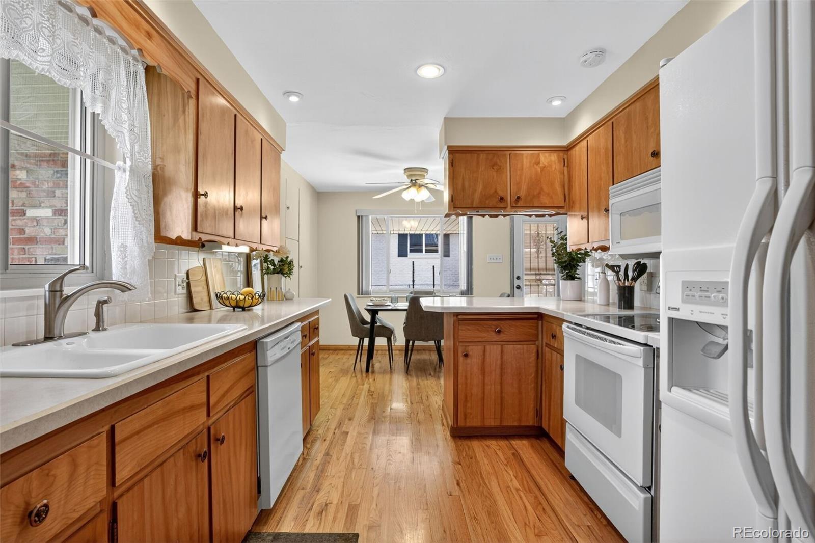 Welcome to this meticulously maintained, custom ranch-style home in the heart of Arvada! From the moment you arrive, pride of ownership is clear - beautiful curb appeal, a lush front lawn, and energy-efficient solar panels set the tone. Inside, the sun-filled living room features a large picture window and a cozy brick fireplace, creating an inviting gathering space. The functional galley kitchen offers abundant cabinetry, ample counter space, and a breakfast bar that opens to the dining area - perfect for both casual meals and entertaining. The spacious primary suite includes dual closets and direct access to its own private bath, while two additional bedrooms and a full hallway bath provide flexibility for family, guests, or a home office. The finished basement expands the living area with a generous family room, a second fireplace, a charming clawfoot tub bath, laundry area, and extra storage. Thoughtful updates throughout the years highlight the careful care and maintenance this home has received. Step outside to enjoy Colorado living at its best - an expansive covered patio, mature trees, raspberry bushes, a terraced backyard, and a storage shed with 220 electrical for tools or hobbies. With an extended driveway and oversized garage, there’s plenty of room for parking and projects (RV or boat parking too). Located just minutes from Secrest Elementary, North Arvada Middle, Majestic View Park, and the Apex Center, this neighborhood also offers easy access to Indian Tree Golf Club and Olde Town Arvada’s dining, breweries, shopping, and the RTD G-Line for quick downtown commutes. Quick close possible! Move into your new home before the holidays are in full swing. This home blends comfort, functionality, and location - truly a rare find in today’s market.