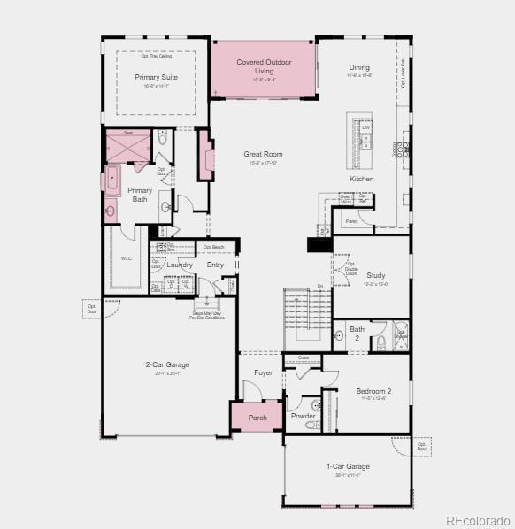 New Construction - Ready Now! Built by America's Most Trusted Homebuilder. Experience effortless ranch-style living in the Columbine new construction floorplan at Trailstone, where luxury meets thoughtful design. From the impressive foyer, step into an expansive kitchen with a spacious eat-in island that flows seamlessly into the bright great room and dining area—perfect for entertaining. The sought-after split-bedroom layout provides privacy, with a welcoming guest suite and full bath near the front and a serene primary suite with a walk-in closet tucked at the back for a true retreat. Functional touches like a dedicated study and a large laundry room off the entry make everyday living a breeze. Structural options include: built in appliance package, primary bath configuration 5, covered outdoor living 1, center meet sliding glass door, traditional fireplace at great room, gas line rough in on patio, finished basement.