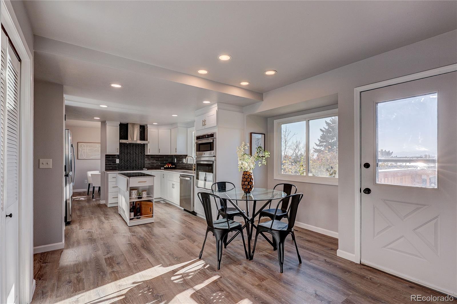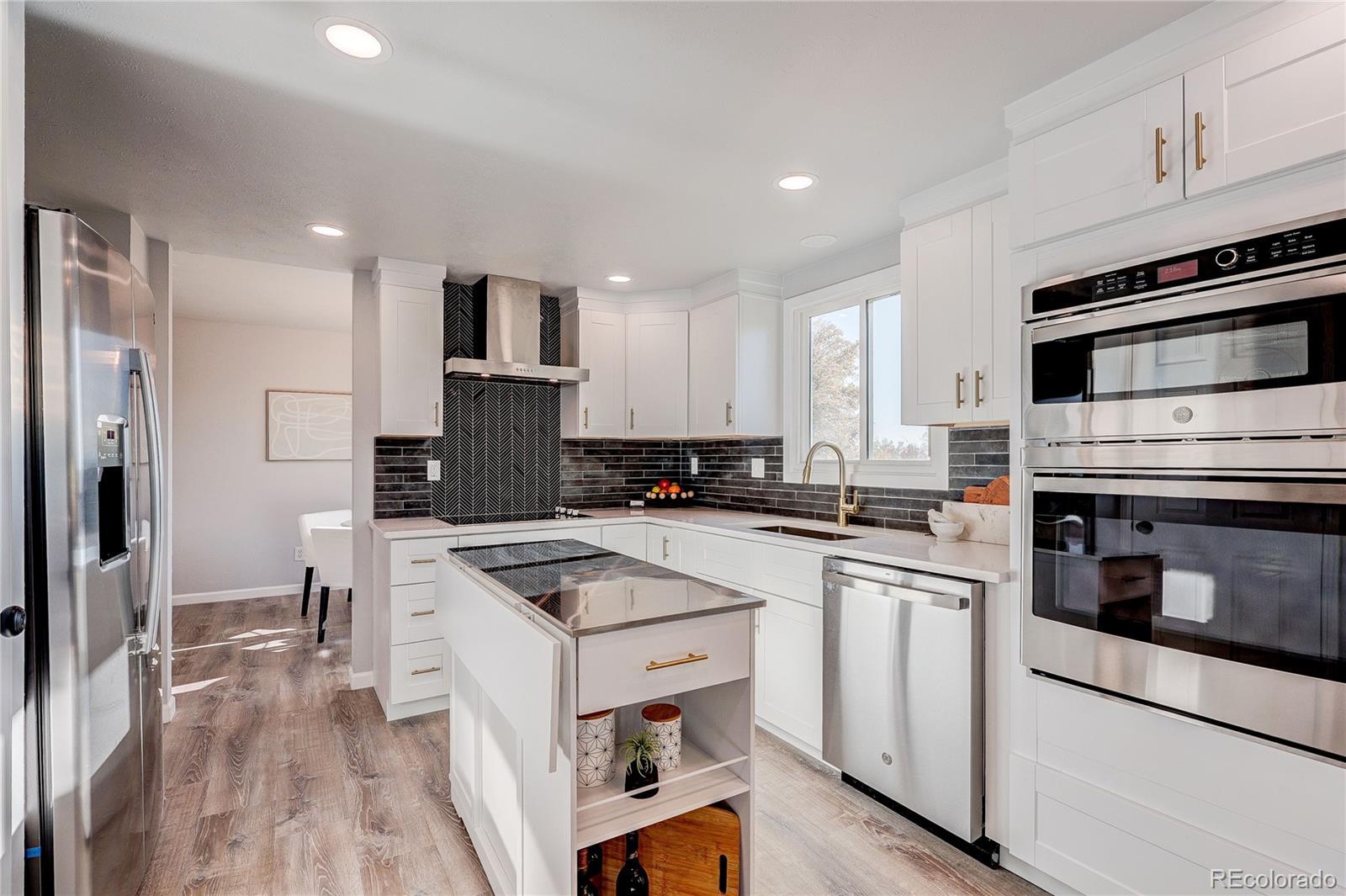 Every detail has been reimagined in this beautifully remodeled 4-bedroom, 4-bath, two-story home full of timeless comfort and modern design. The main level LVP flooring adds warmth and durability, complemented by fresh texture and paint, new baseboards, stylish hardware and all-new LED lighting. At the heart of the home, is a chef's dream kitchen that shines with soft-close white shaker cabinetry, quartz countertops, brushed-gold fixtures that accent a striking matte black backsplash with herringbone detailing. New GE stainless steel appliance package includes a double wall oven with built-in microwave, radiant cooktop, and French door refrigerator. Upstairs, you’ll find 2 generously sized bedrooms that share a fully renovated bathroom or settle into the primary with en-suite that features a marble-topped vanity, LED lighted mirror, dual-flush toilet, and spa-style touches like a rain shower, frame-less glass doors, and brushed-gold accents. Entertain effortlessly with a 20-bottle wine and beverage cooler, while enjoying the picturesque mountain views relaxing on the newly built backyard Trex® deck, or sitting under the refreshed gazebo perfect for the outdoor Colorado evenings. Need more space, the fully finished basement offers a 4th bedroom and versatile bonus living/media room and additional fully complete bathroom. Major systems have been handled for peace of mind, including a new roof (2024), hot water heater (2024), central air conditioning (2025), and garage concrete slab. With every surface renewed and every feature considered, this classic Shaw Heights, Westminster home offers the rare blend of craftsmanship, convenience, and contemporary style — all that’s left to do is move in and make it yours!