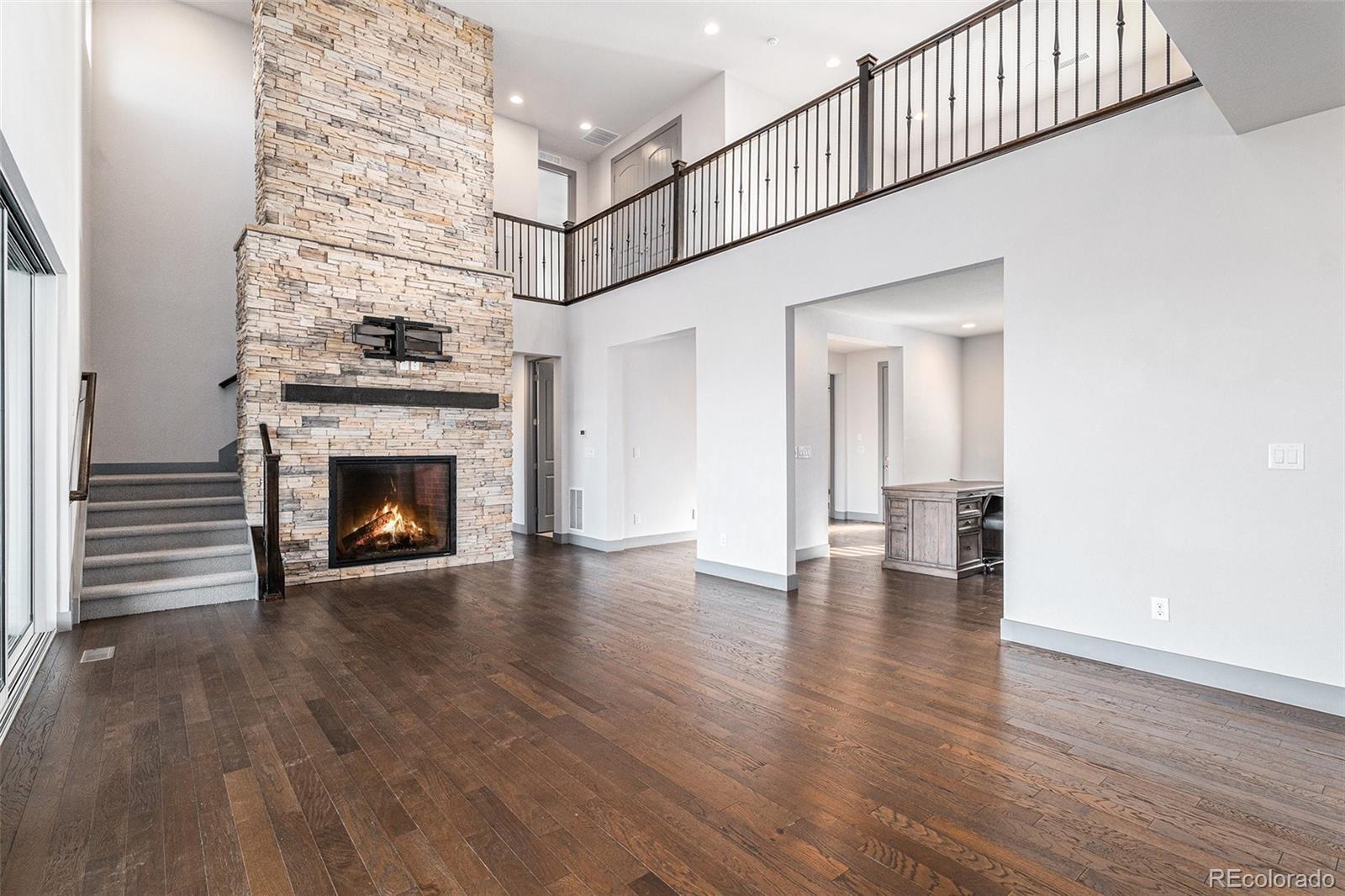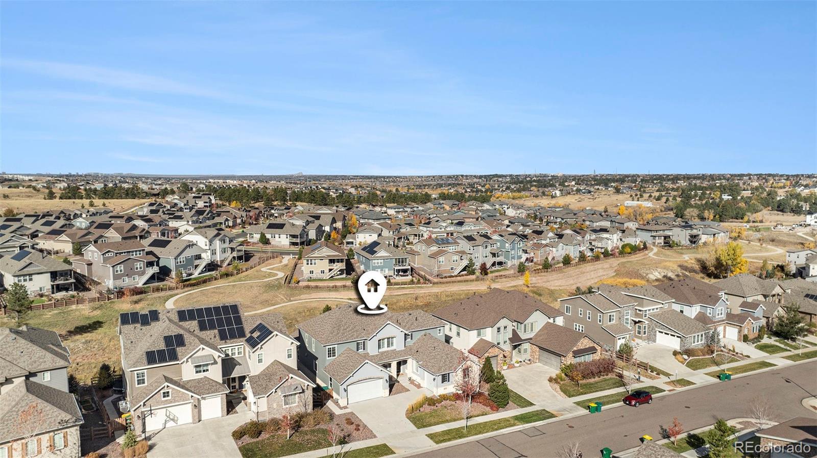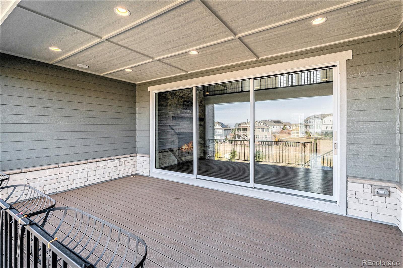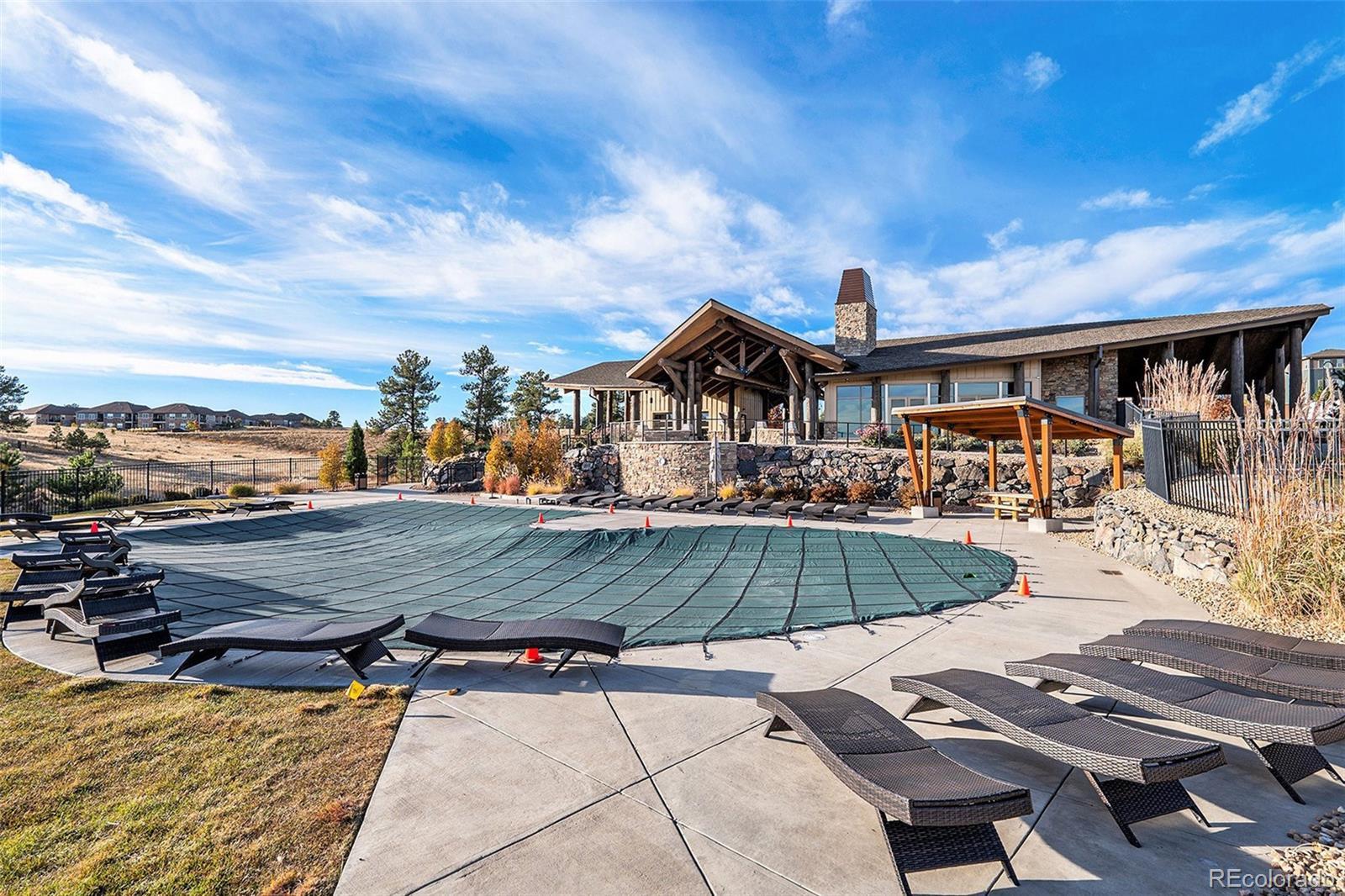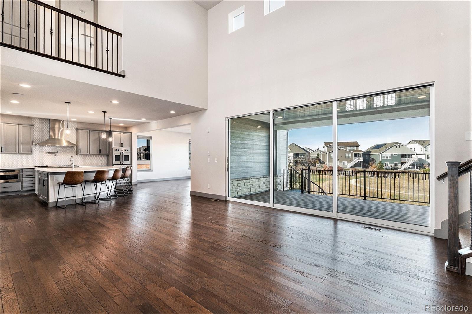 Welcome home to Whispering Pines! Tucked away and backing to peaceful open space, this beautifully crafted home blends sophistication, comfort, and Colorado charm. Step inside to a dramatic two-story living area filled with sunlight and centered around a striking floor-to-ceiling stone fireplace that creates an inviting gathering place. The heart of the home is the gourmet kitchen designed for those who love to cook and entertain, showcasing a spacious island, Viking appliances—including multiple ovens (4!) and a pot filler—an expansive walk-in pantry, and a separate prep kitchen that keeps everything organized behind the scenes. Thoughtful built-ins in the office and mudroom add style and function to everyday life. The main-level primary suite is a true retreat, offering dual walk-in closets, double vanities, and a spa-inspired shower. A second main-level bedroom with its own en-suite bath provides flexibility for guests, family, or a home office setup. Every bedroom throughout the home enjoys its own private bathroom, while the airy upstairs loft overlooking the great room offers an ideal reading nook, play space, or casual lounge. The professionally finished walkout basement extends the living area with generous recreation and media spaces, plus an unfinished section perfect for a home gym or extra storage. A built-in central vacuum system with a toe-kick sweep adds convenience and efficiency. Step outside to your private sanctuary—professionally landscaped with a covered deck, lower patio, and beautiful mountain views. The backyard overlooks nearby trails, making it easy to enjoy morning strolls or evening sunsets. Entrance to the path is one house away. Whispering Pines offers resort-style amenities including an outdoor pool, clubhouse, and multiple playgrounds. Surrounded by mature trees and open space, it feels like a peaceful mountain escape—yet it’s just minutes from the Denver Tech Center, Parker, Southlands Mall, and E-470 for effortless commuting.