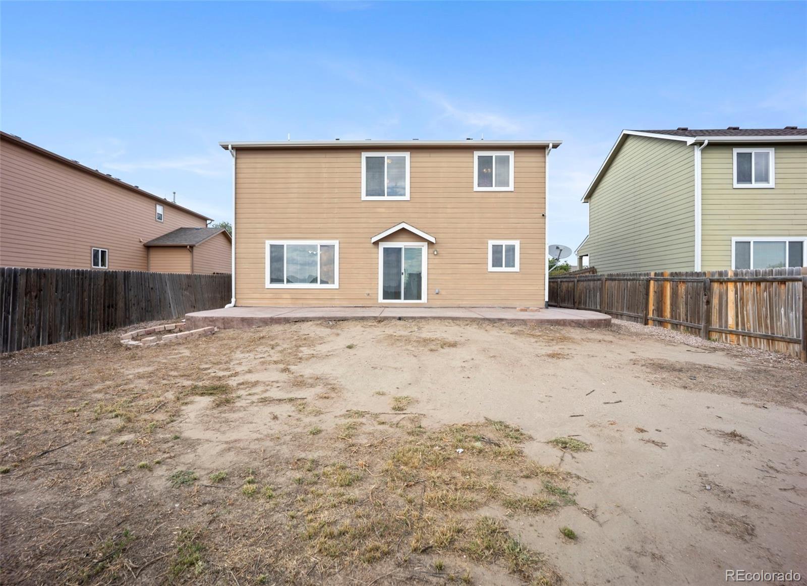 This two-story beauty in Ponderosa at Lorson Ranch awaits its new homeowner! Custom Xeriscaping in the front yard, Welcomed through the covered front porch, a Stone Tile Entry opens up to a Cozy living room, Main level bedroom and half bath. With a blend of flooring updates and well-loved charm, enjoy the homey-feel of the living room seamlessly flowing into the dining area and kitchen with walk-out. The Kitchen features like-new, cohesive Samsung appliances of Bespoke Refrigerator / Range Oven / Microwave / Dishwasher, farmhouse sink and New Faucet to match; Walk-in panty, and convenience of the adjacent Laundry room making daily housekeeping a breeze. Walking out to the backyard with a Custom Patio, memories of cookouts, pet play time or room for kids to be kids beckon. Up the Newly carpeted stairs, boasts a family room, 2 bedrooms and a full bathroom off the left wing, and the Primary bedroom off the right wing providing ample space for family and guests. The Spacious Primary bedroom is highlighted by an ensuite 5 piece bath and walk-in closet. Additional features include Vivint: Smart Lock Security / Cameras / Dual Smoke Detectors / Nest Smart home thermostat, not to mention the like-New Samsung Kitchen Appliances! Schedule for a private viewing of your next home today!!