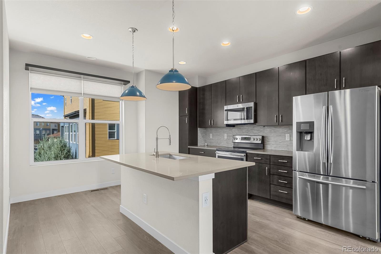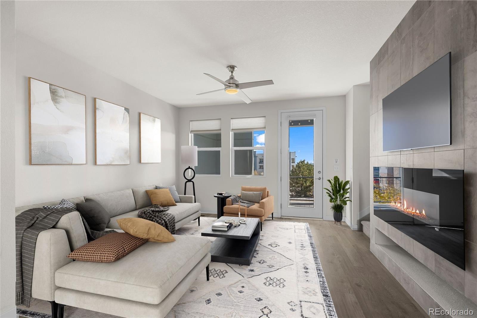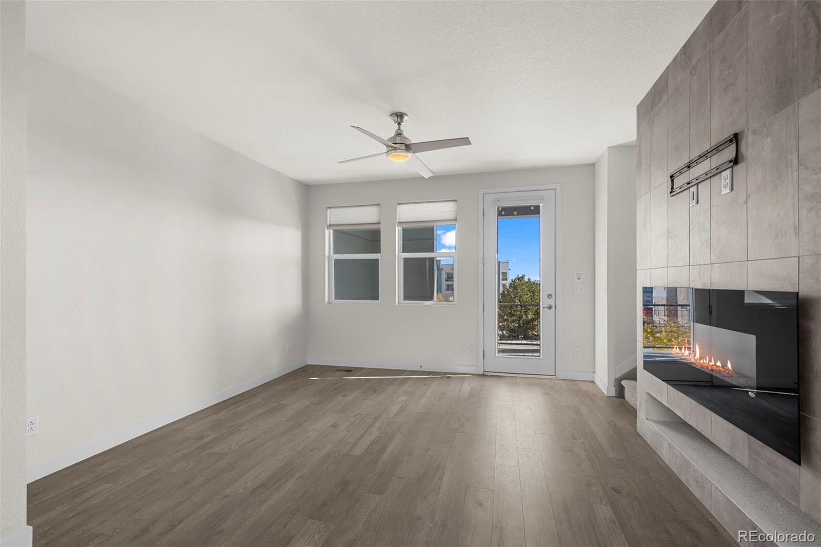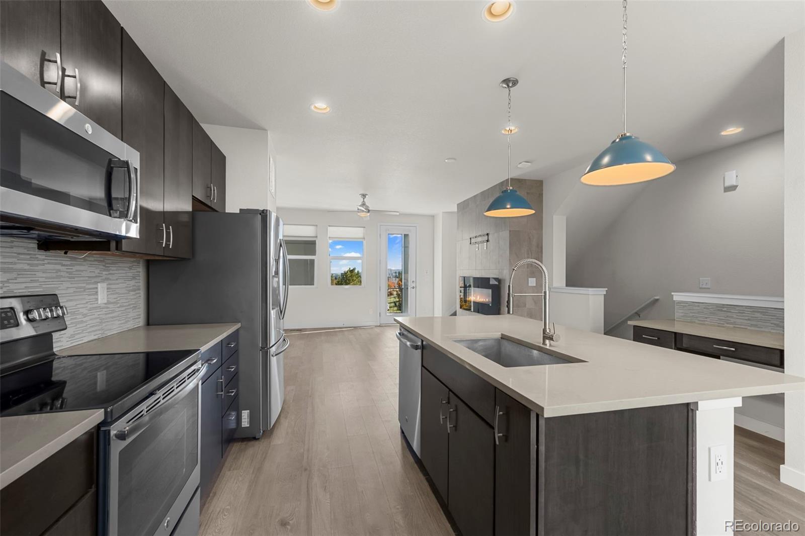 Discover effortless, modern living in this stylish and contemporary townhome nestled in the vibrant and sought-after Arista community in Broomfield. Ideally located just a short walk to Redpoint Community Park, and neighborhood dining, coffee spots, local brewery, and the transit at Arista Town Center, offering unparalleled convenience to both Boulder & Denver. Designed for comfort and ease, this beautifully maintained home perfectly blends low-maintenance living with sophisticated finishes and a convenient 2-car attached garage. Step inside to find an open-concept main-level living space with wide-plank grey-tone LVP flooring and abundant natural light. The inviting living room centers around a sleek, modern electric fireplace creating the perfect atmosphere for relaxing or entertaining. The adjoining kitchen showcases espresso cabinetry, quartz counters, stainless appliances, and an under mount sink. A large center island provides ample seating space, while a built-in desk nook offers a convenient area for work or study. A stylish powder bath completes the main floor. Upstairs, the spacious primary suite features a walk-in closet and private ensuite bath. The second bedroom is equally comfortable and sits adjacent to a full bathroom and laundry space with included stackable washer & dryer. Additional highlights include a covered balcony off the main-level living space, perfect for morning coffee or evening happy hours, and a covered front patio offers extra outdoor enjoyment. Enjoy a true "lock-and-leave" lifestyle and LOW HOA FEES in this desirable community with a dynamic mix of restaurants, shops, entertainment, and parks, all within walking distance. Easy access to Hwy 36 makes commuting to either Denver or Boulder effortless, from this low-maintenance, move-in ready home in a thriving community.