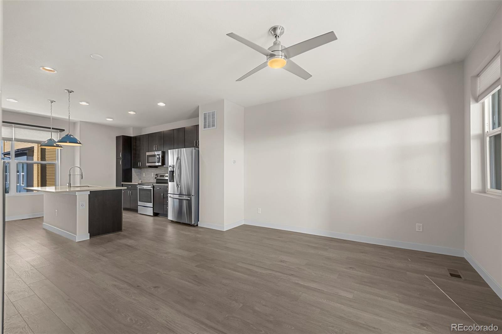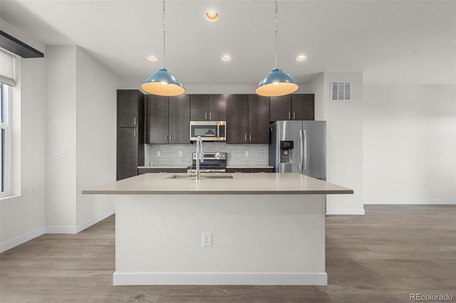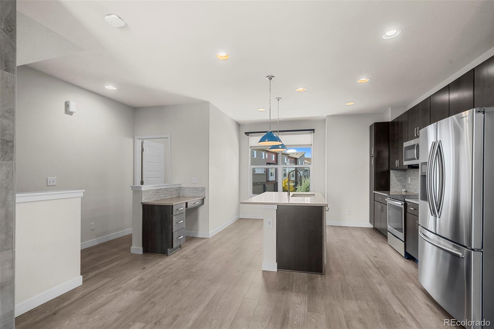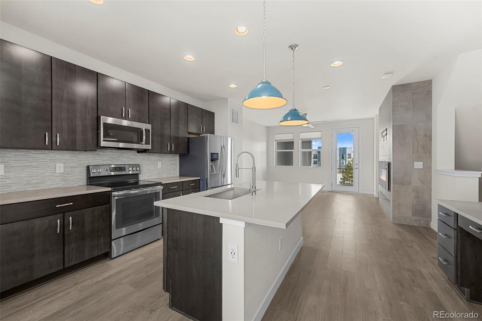 Discover effortless, modern living in this stylish and contemporary townhome nestled in the vibrant and sought-after Arista community in Broomfield. Ideally located just a short walk to Redpoint Community Park, and neighborhood dining, coffee spots, local brewery, and the transit at Arista Town Center, offering unparalleled convenience to both Boulder & Denver. Designed for comfort and ease, this beautifully maintained home perfectly blends low-maintenance living with sophisticated finishes and a convenient 2-car attached garage. Step inside to find an open-concept main-level living space with wide-plank grey-tone LVP flooring and abundant natural light. The inviting living room centers around a sleek, modern electric fireplace creating the perfect atmosphere for relaxing or entertaining. The adjoining kitchen showcases espresso cabinetry, quartz counters, stainless appliances, and an under mount sink. A large center island provides ample seating space, while a built-in desk nook offers a convenient area for work or study. A stylish powder bath completes the main floor. Upstairs, the spacious primary suite features a walk-in closet and private ensuite bath. The second bedroom is equally comfortable and sits adjacent to a full bathroom and laundry space with included stackable washer & dryer. Additional highlights include a covered balcony off the main-level living space, perfect for morning coffee or evening happy hours, and a covered front patio offers extra outdoor enjoyment. Enjoy a true "lock-and-leave" lifestyle and LOW HOA FEES in this desirable community with a dynamic mix of restaurants, shops, entertainment, and parks, all within walking distance. Easy access to Hwy 36 makes commuting to either Denver or Boulder effortless, from this low-maintenance, move-in ready home in a thriving community.