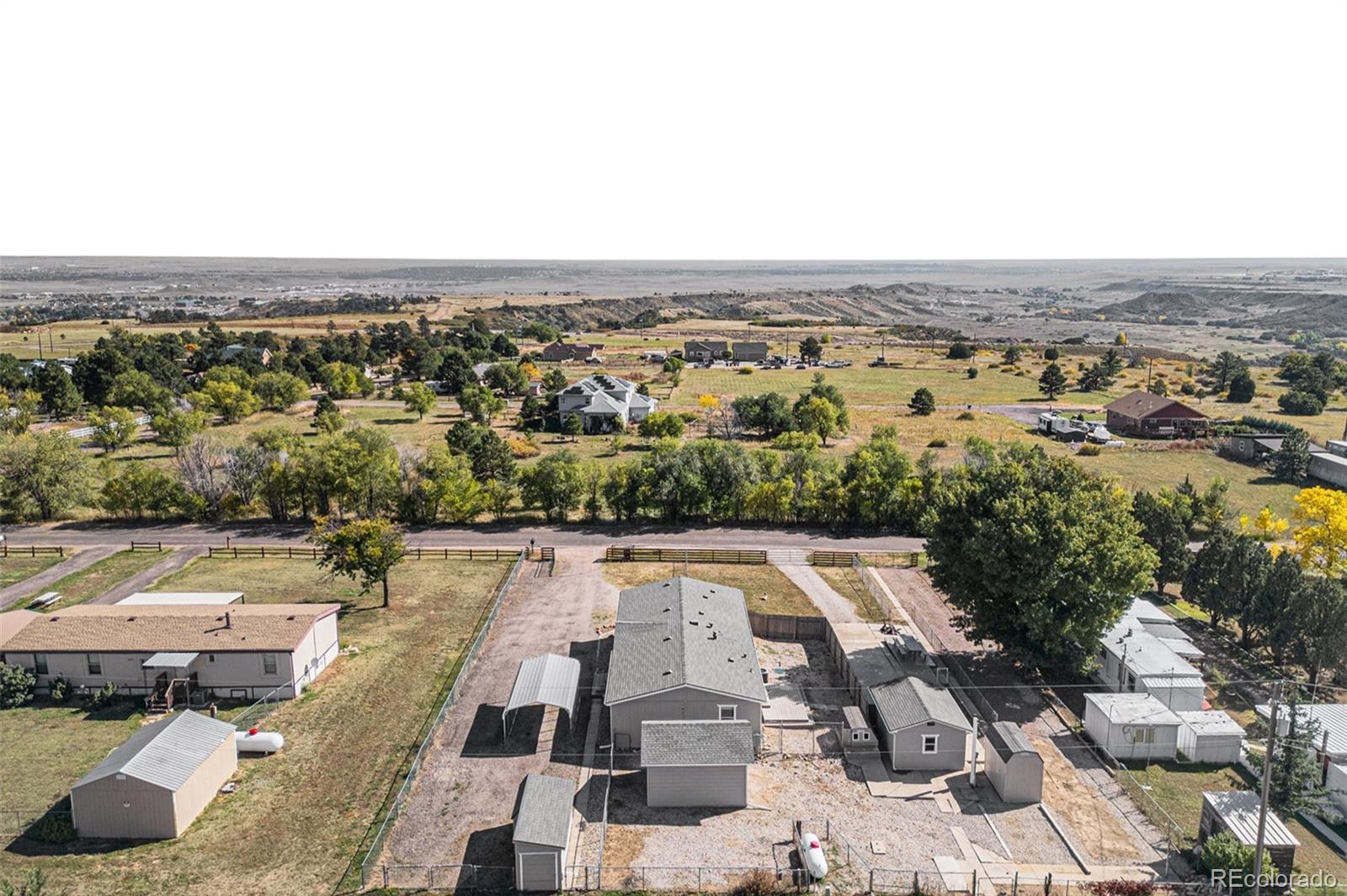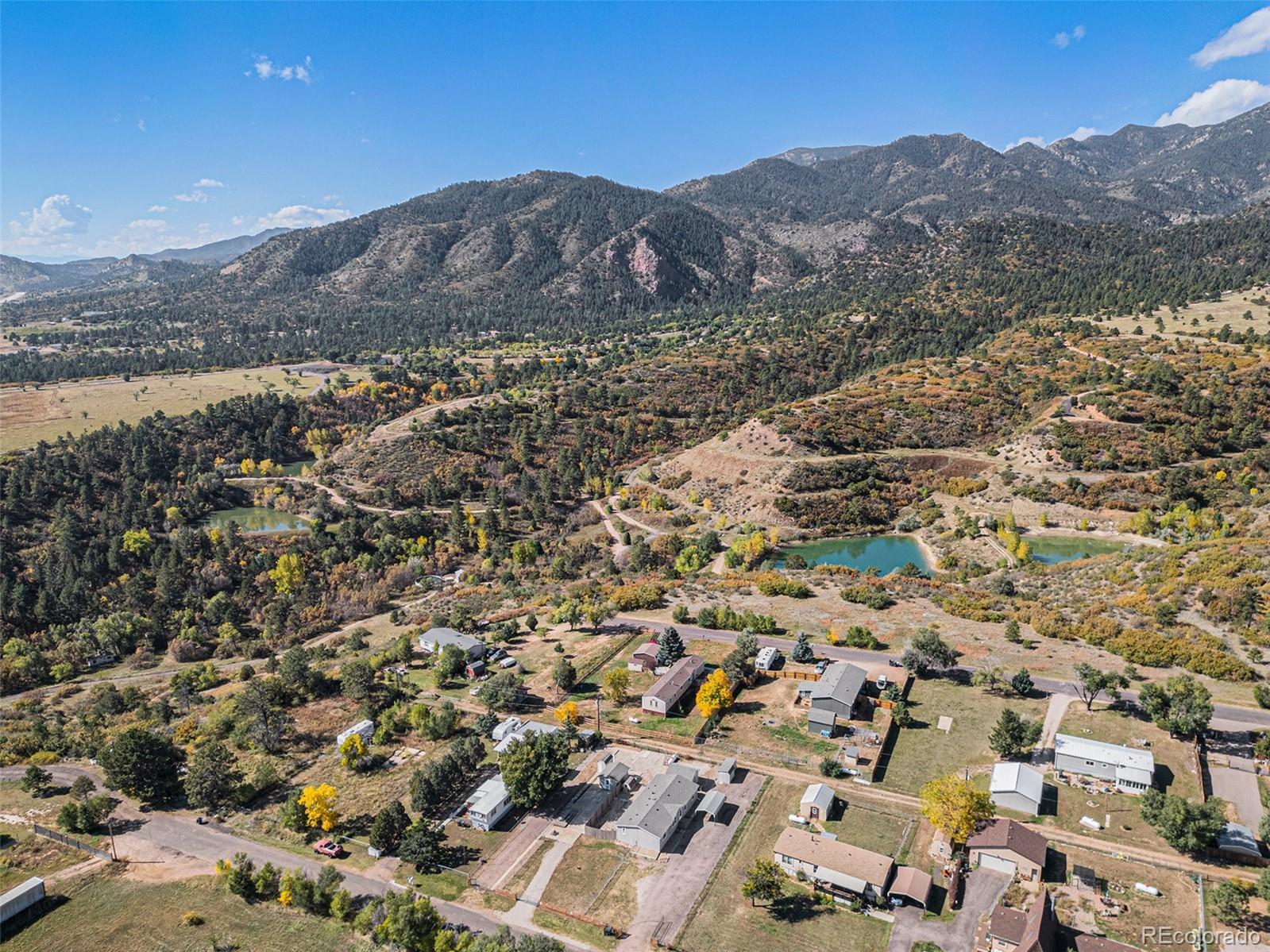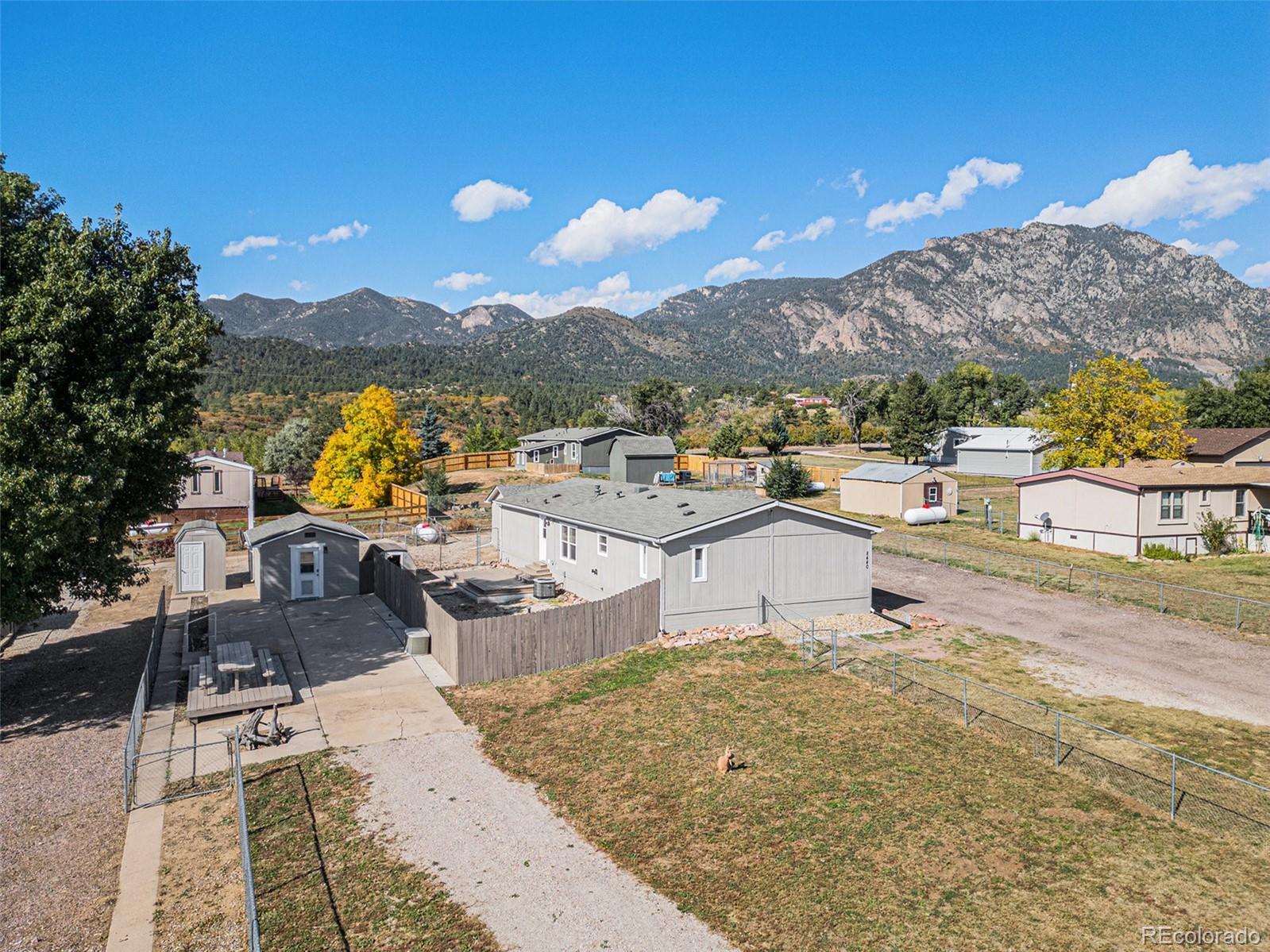 Move-In Ready Home Near Cheyenne Mountain – Expansive Lot, Breathtaking Mountain Views & Limitless Potential! This 0.46-acre property offers stunning Cheyenne Mountain views from every angle & the perfect blend of space & comfort. The cozy, well-maintained home features a living room, bonus room/office, dining area & kitchen w/ breakfast bar, pantry, gas range & ample cabinetry—ideal for cooking & entertaining. A/C keeps the home comfortable year-round & a pellet stove (Comfort Built) in the living room provides maximum heat output w/ a top-mounted hopper & heavy-duty steel design. The primary suite offers a relaxing retreat w/ a large adjoining bath, dual vanities & a freestanding glass shower. Two additional bedrooms, 2nd full bath & a functional laundry room w/ cabinets, shelving, built-in ironing board & walk-out access to the expansive deck complete this inviting interior. Step outside & embrace the best of country living. Imagine relaxing mornings on your deck, enjoying gentle mountain breezes, or evenings under a canopy of stars in your peaceful, private setting. The fully fenced lot is divided into 3 oversized chain-link areas, perfect for pets, toys, RVs, or boat storage. The property offers 3 SHEDS, a DOG HOUSE & a separate COTTAGE/DRY SHED (approx. 16x12) featuring electricity, sink, toilet integrated with the septic system & a kitchenette w/ microwave & mini fridge—ideal for guests, hobbies, or a home office retreat. A detached carport near the front provides covered parking w/ additional open parking nearby. The oversized gravel driveway provides convenient entry, complemented by two alley access points. Nestled on a quiet street w/ no HOA or covenants, this home delivers the charm of rural living w/ just minutes from Fort Carson, downtown Colorado Springs & Cheyenne Mountain State Park. Country living w/ the conveniences of the city—where rolling open spaces, fresh mountain air & a slower pace of life meet modern comfort and functionality.