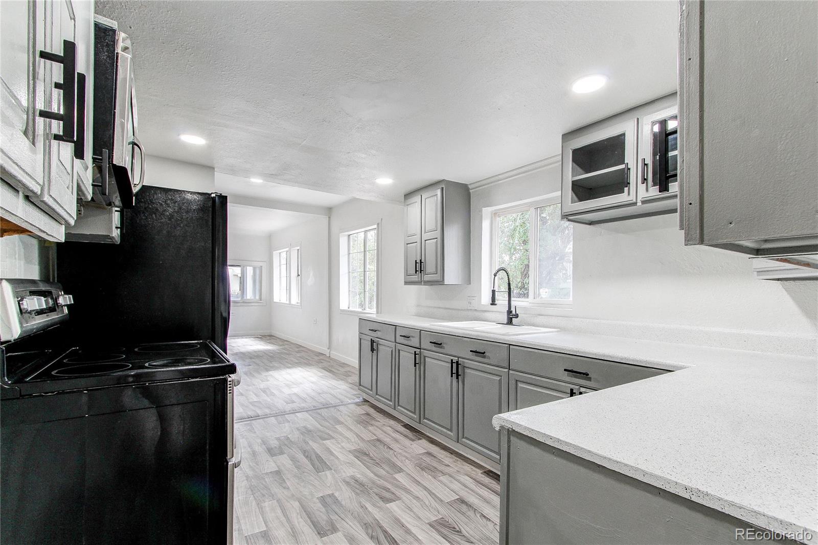 Jump into Denver's Up and Coming Hot Spot in the Villa Park Neighborhood AND Enjoy the Future Broncos New Stadium District that will be Minutes Away! Fantastic Option for Owner Occupants or Rental Investors! Long Term Equity and Opportunity is Huge! This Remodeled Denver Cottage gives you Immediate Access to Everything Denver has to Offer! Minutes to the Light Rail, 6th Ave, I-25, LoHi, RINO, Highlands, Downtown Denver, Broadway, Tennyson Street, Empower Field, Coors Field, Ball Arena, the List Goes ON and ON! Truly in the Heart of it All! And All of this in the low 400s! This Denver Cottage sits on an Elevated Lot that has a tiny Peak a Boo view of City Buildings From the Front and tiny Peak A Boo View of Mountains in the Back end of the Lot. Fully fenced Private Yard with a Patio Area for Entertaining and an Inviting Covered Front Porch that can be a Perfect Spot to Enjoy A Morning Coffee, Read A Book or Just enjoy some Quiet Private Space! This Cottage Home Features a Large Two Car Garage with Additional Off Street Parking. The Garage Provides endless Possibilities, Convert to A Studio Space, Personal Enjoyment Cave, Future ADU or?? Inside you will find An Open Living Room, and Dinning space that connects to the Kitchen! 2 Bedrooms (1 non-conforming) at the Front of House with a Full Bath in between! Enjoy a Primary Bedroom set up to the back of House with a 3/4 Bathroom that can be used as a Primary Bathroom! The Primary Bedroom also Features a Walk in Closet with tons of Space! This Area Could Easily be Converted to a Separate Living Space! Updates include New Flooring, New Paint, New Lighting, Resurfaced Counters and Bathroom, New 3/4 Bath, and more! Don't Wait to Jump on this Opportunity and Take Advantage of Lower Rates and Future Equity in this Location!