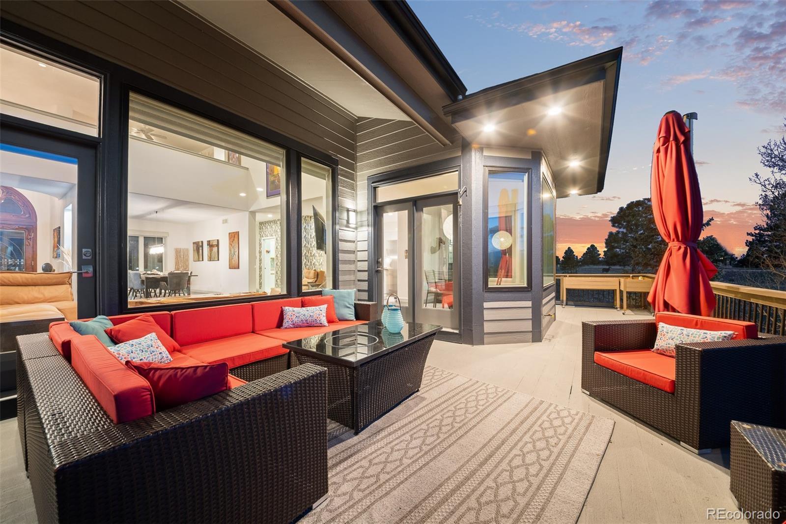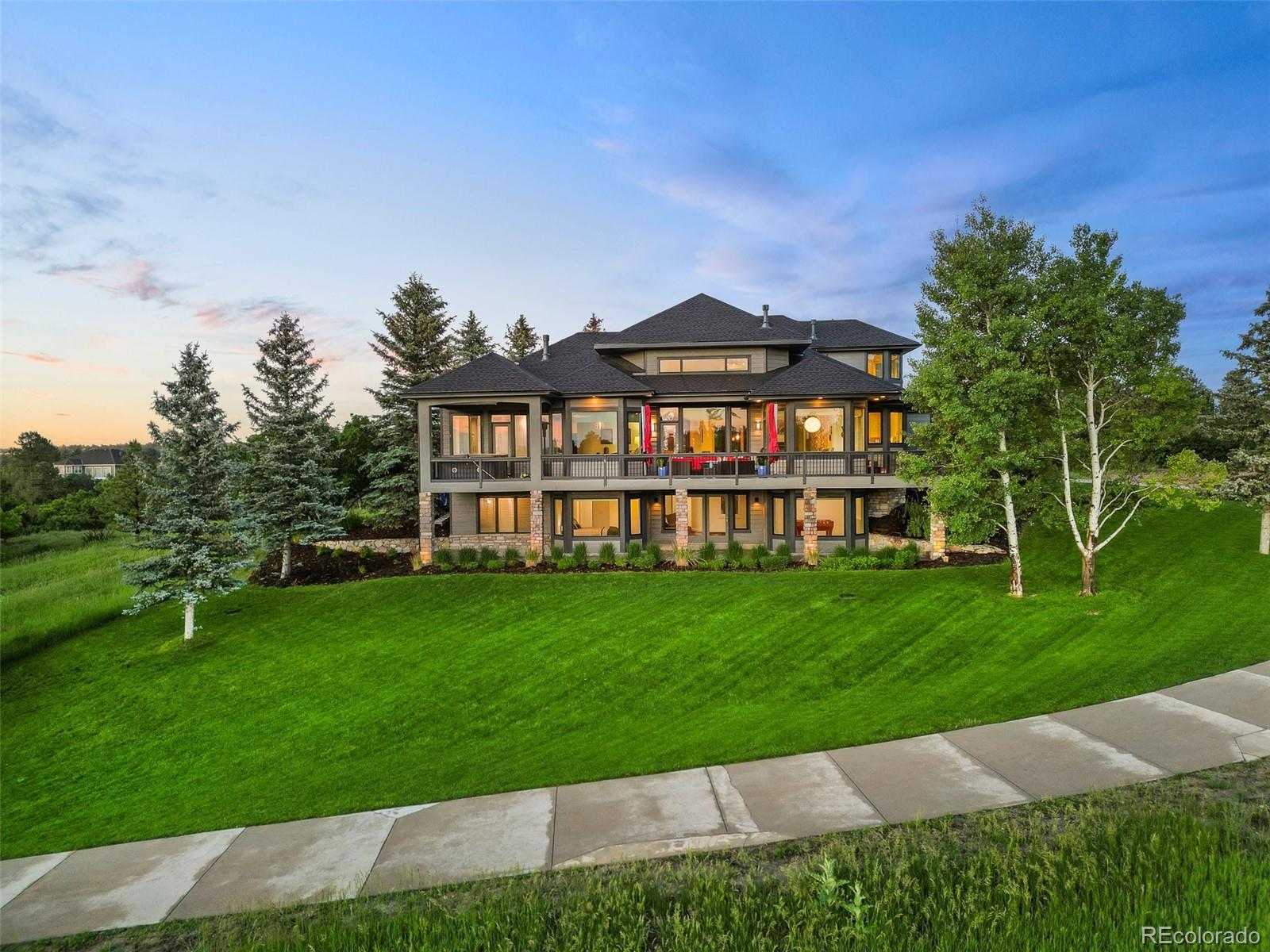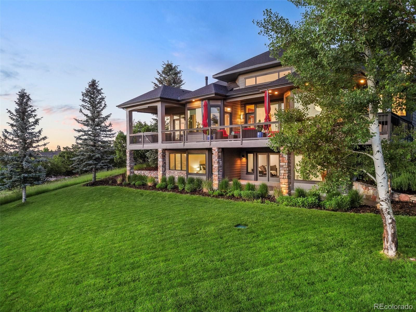 Poised at the top of the hill, at the end of a long, sweeping driveway, 5602 Silver Bluff Court commands attention—a signature residence known to anyone who drives by. This bold, modern home is more than a place to live—it’s a defining feature of The Pinery’s skyline. A landmark. Wrapped in panoramic views and framed by mature pines, the 1.67-acre property backs directly to open space, offering both dramatic visual impact and a seamless connection to the outdoors. With striking architectural lines, soaring ceilings, and curated finishes, this residence effortlessly blends livable luxury with timeless design. The heart of the home opens to a bright, open living space where floor-to-ceiling windows capture the surrounding beauty and stunning mountain views, filling the interior with natural light. Seamless transitions to the expansive deck create an effortless flow for entertaining, relaxing, or simply enjoying Colorado’s iconic sunsets. The main-floor primary suite is a true retreat, complete with a spa-inspired ensuite bath and direct access to outdoor living, and a private hot tub oasis. A sleek, modern kitchen with updated appliances, double ovens, gas cooktop, and custom cabinetry anchors the main level—flowing beautifully into the dining and lounge areas to create a layout that’s equal parts form and function. The walk-out lower level offers generous space for living and entertaining, complete with a wet bar, rec room, guest quarters, and a dedicated area for a future wine cellar. Upstairs, a lofted bonus level adds even more flexibility, featuring a private bedroom, full bath, and an open loft—ideal for a home office, studio, or quiet retreat. Whether you’re hosting under the stars or relaxing with a glass of wine, this property celebrates the essence of Colorado living—bold, elevated, and unforgettable. This isn’t just a home—it’s a conversation piece. See Video: https://youtu.be/Nlw4ACH4PFE