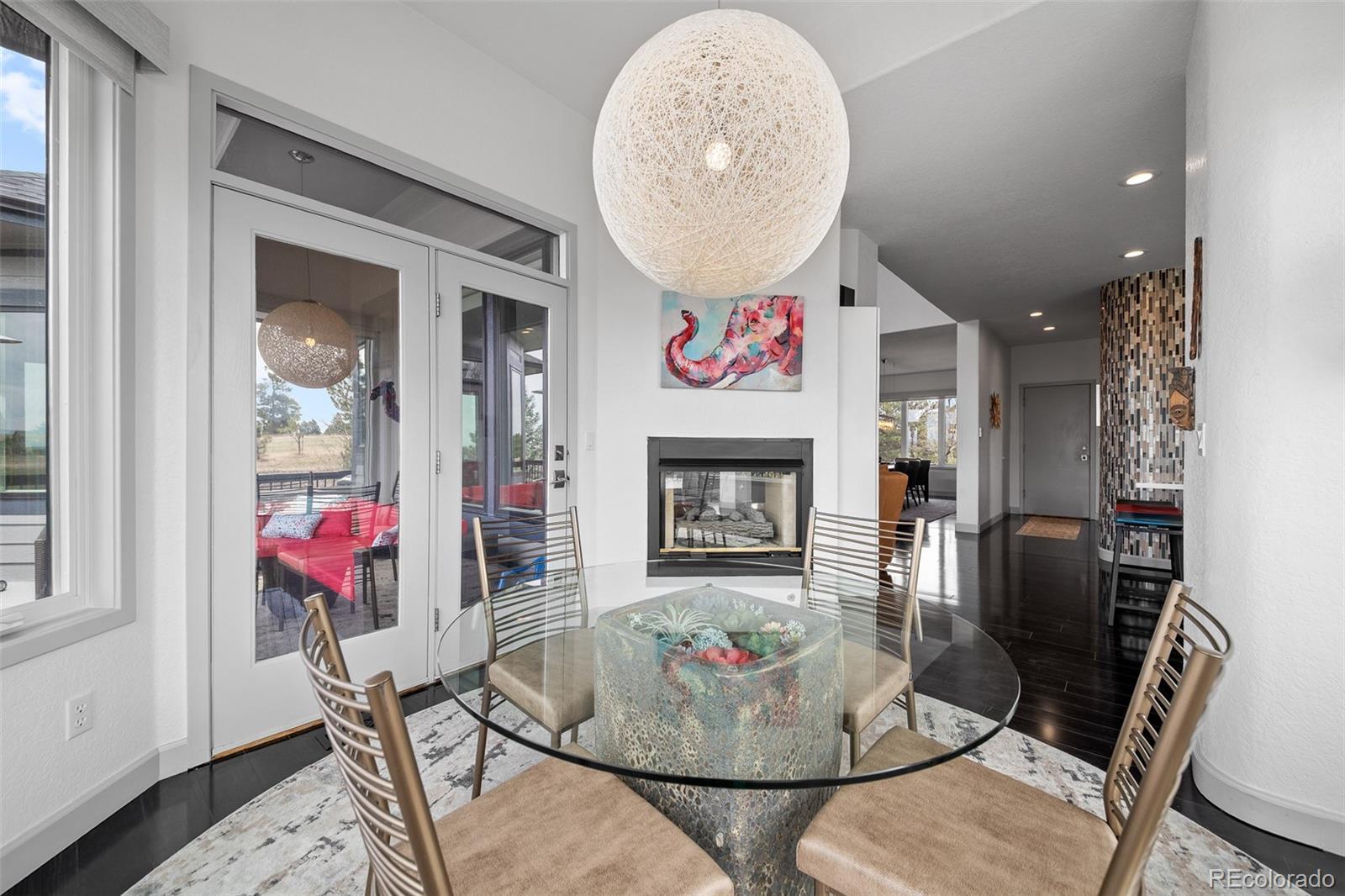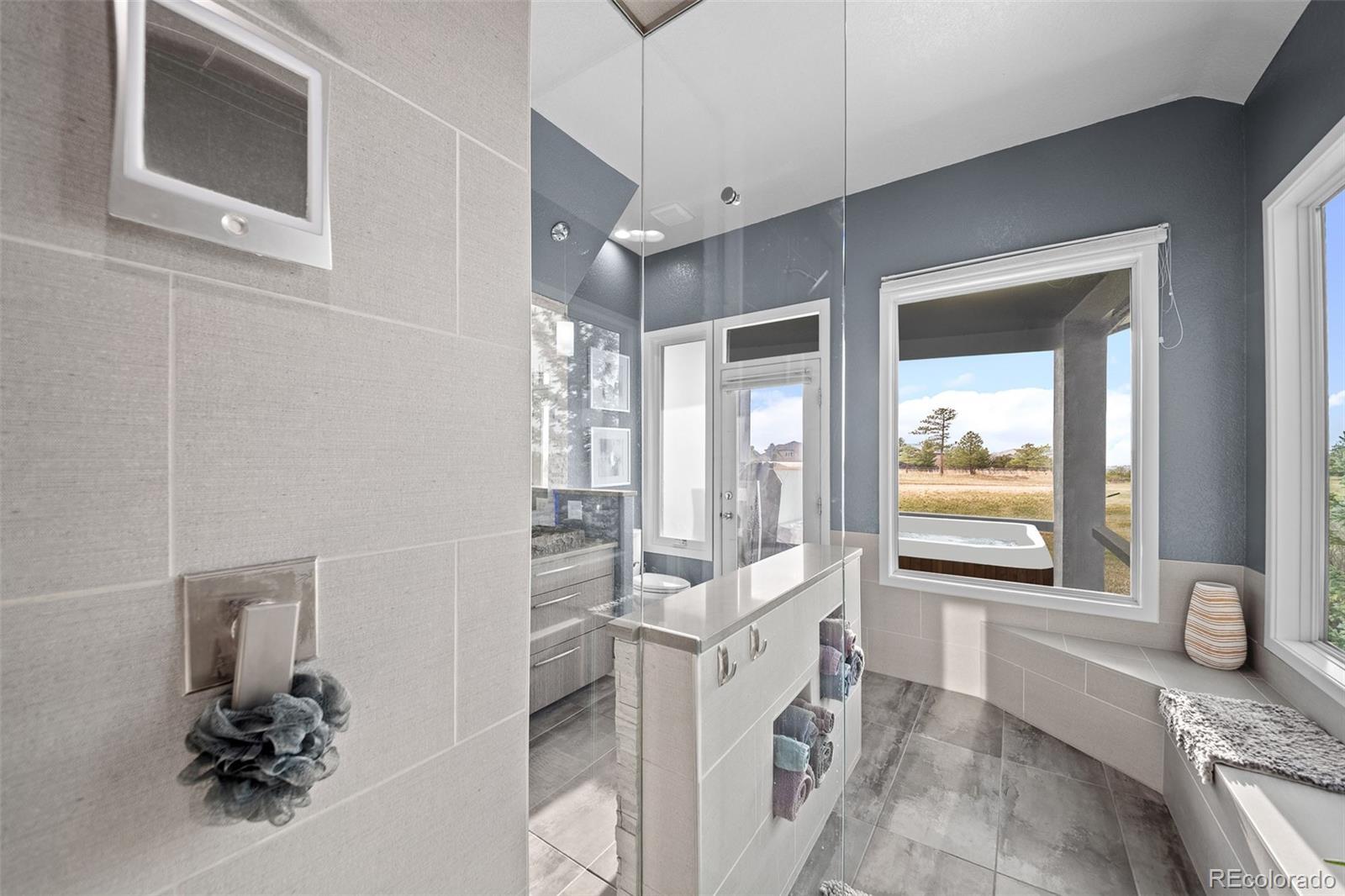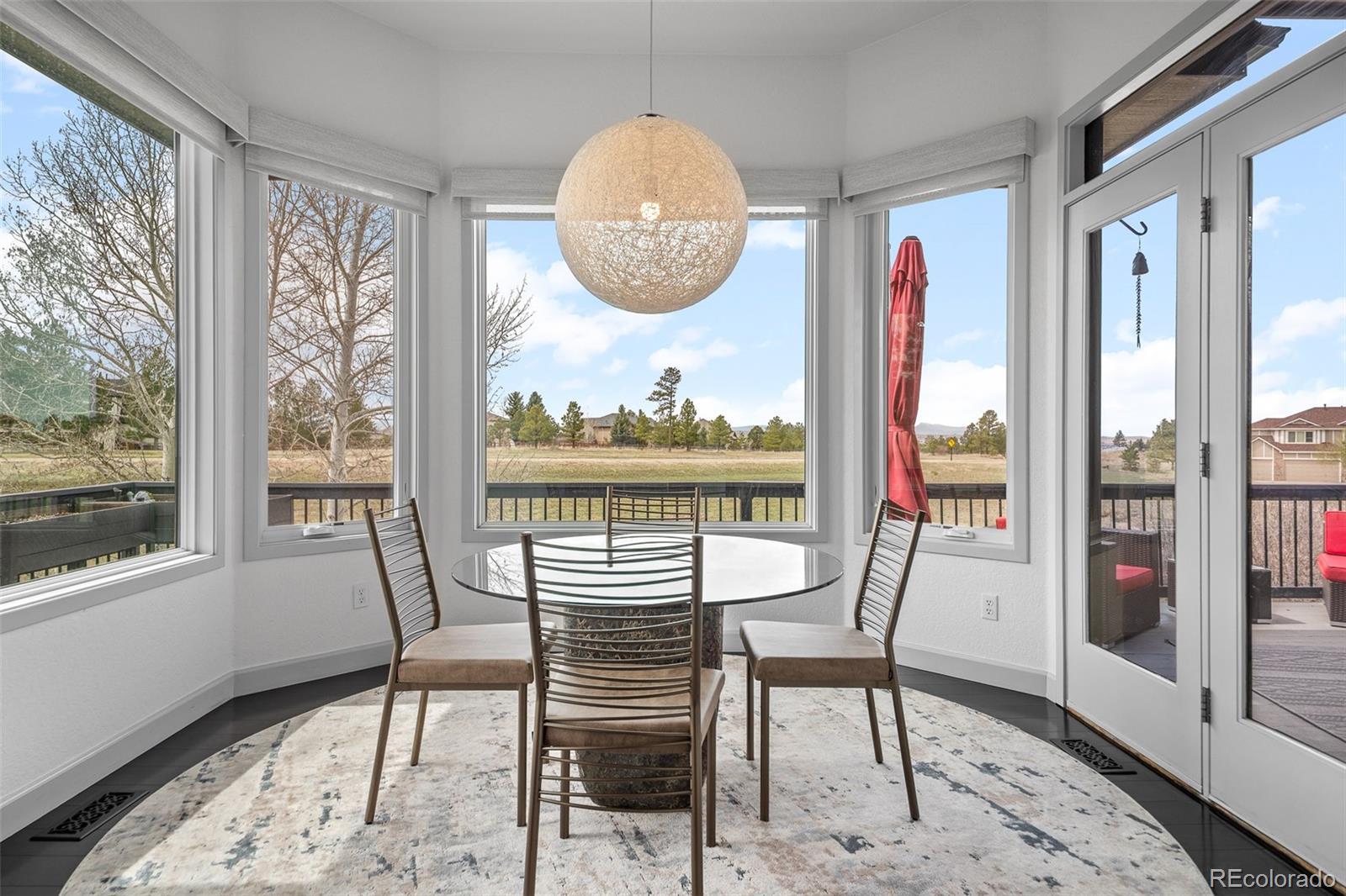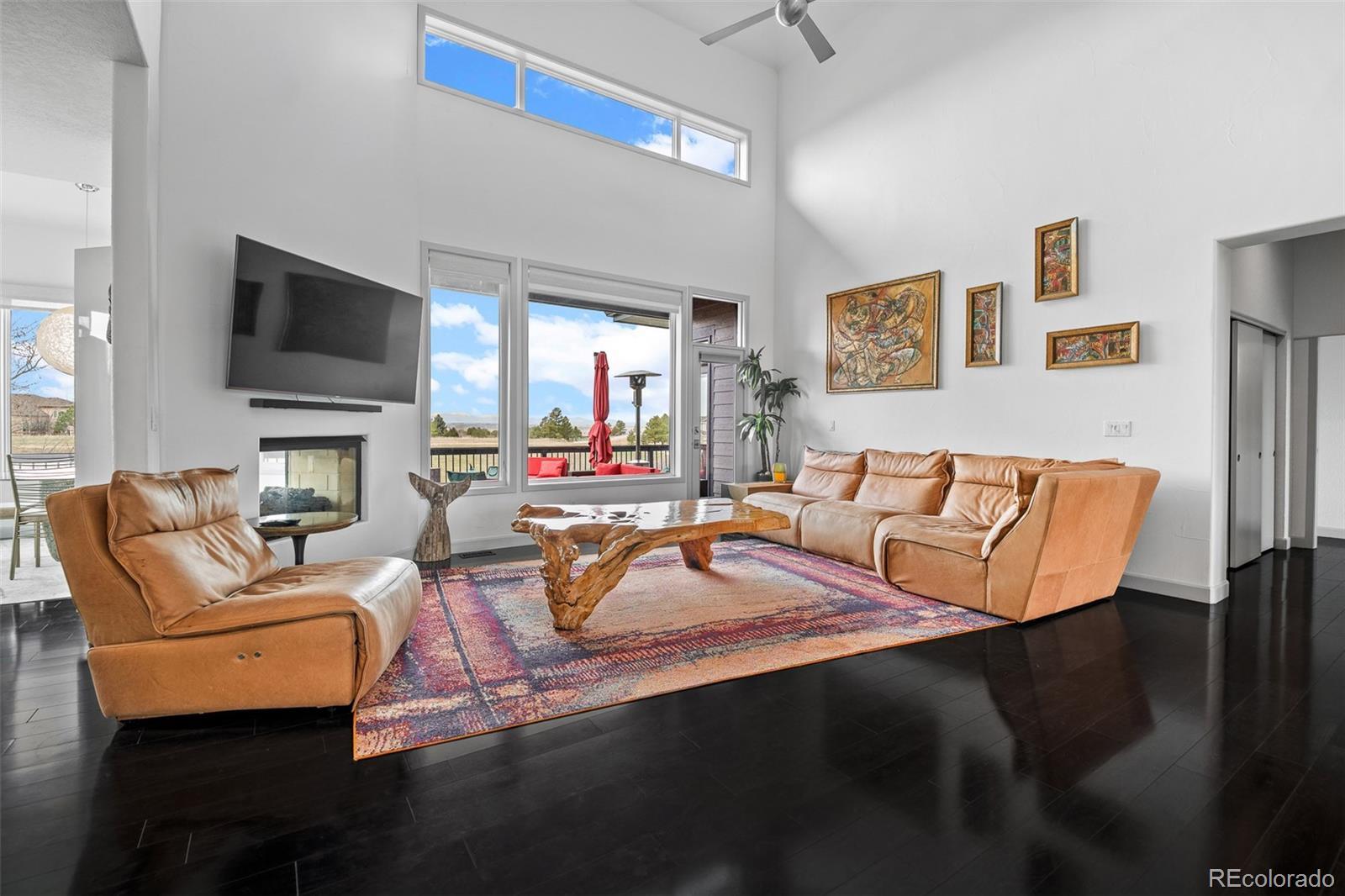 Poised at the top of the hill, at the end of a long, sweeping driveway, 5602 Silver Bluff Court commands attention—a signature residence known to anyone who drives by. This bold, modern home is more than a place to live—it’s a defining feature of The Pinery’s skyline. A landmark. Wrapped in panoramic views and framed by mature pines, the 1.67-acre property backs directly to open space, offering both dramatic visual impact and a seamless connection to the outdoors. With striking architectural lines, soaring ceilings, and curated finishes, this residence effortlessly blends livable luxury with timeless design. The heart of the home opens to a bright, open living space where floor-to-ceiling windows capture the surrounding beauty and stunning mountain views, filling the interior with natural light. Seamless transitions to the expansive deck create an effortless flow for entertaining, relaxing, or simply enjoying Colorado’s iconic sunsets. The main-floor primary suite is a true retreat, complete with a spa-inspired ensuite bath and direct access to outdoor living, and a private hot tub oasis. A sleek, modern kitchen with updated appliances, double ovens, gas cooktop, and custom cabinetry anchors the main level—flowing beautifully into the dining and lounge areas to create a layout that’s equal parts form and function. The walk-out lower level offers generous space for living and entertaining, complete with a wet bar, rec room, guest quarters, and a dedicated area for a future wine cellar. Upstairs, a lofted bonus level adds even more flexibility, featuring a private bedroom, full bath, and an open loft—ideal for a home office, studio, or quiet retreat. Whether you’re hosting under the stars or relaxing with a glass of wine, this property celebrates the essence of Colorado living—bold, elevated, and unforgettable. This isn’t just a home—it’s a conversation piece. See Video: https://youtu.be/Nlw4ACH4PFE