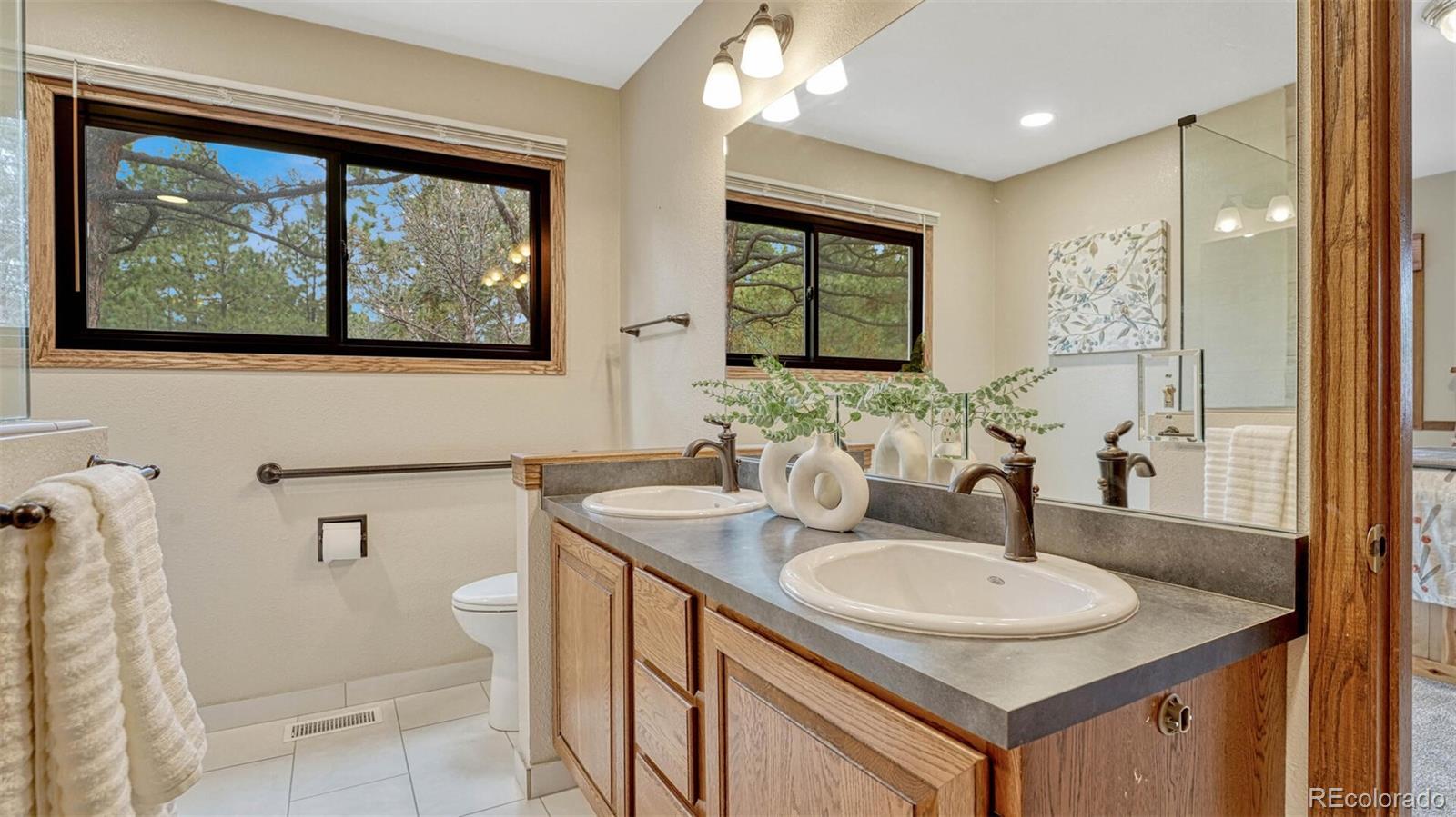 Welcome to this stunning custom home on the desirable west side of Colorado Springs! Nestled on over an acre of wooded serenity, this property combines the privacy of a mountain retreat with the convenience of city living. This spacious residence offers 4 bedrooms, 4 bathrooms, and a large 3-car garage. The kitchen features newer stainless steel appliances, a cozy breakfast nook, an eating bar, and granite countertops—perfect for both everyday living and entertaining. Step outside to a large, private deck overlooking your own park-like yard complete with a 1/8-mile walking and nature trail—a rare and peaceful escape right at home. Inside, you’ll find bright, open living spaces with vaulted ceilings, new carpet and fresh interior paint, and a two-story sunroom that fills the home with natural light—ideal for winter warmth or your favorite plants. The main-level primary suite offers a private walkout to the deck, while the upper level features three additional spacious bedrooms, including a second primary suite and two additional bathrooms. A loft with built-ins opens to the sunroom, creating a perfect reading nook or home office. Located in Academy District 20, this home is close to I-25, the Air Force Academy, and downtown Colorado Springs—offering the best of both worlds: convenience and tranquility. Experience the beauty, comfort, and Colorado lifestyle this exceptional property has to offer!