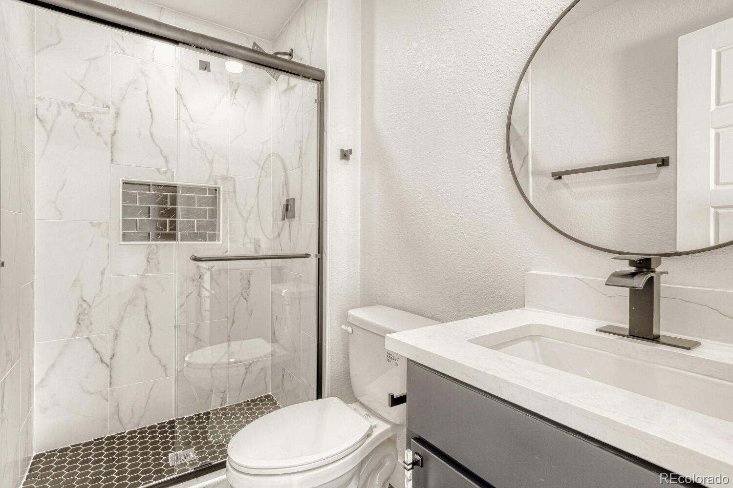 Totally remodeled tri-level home with a fantastic open floor plan and vaulted ceilings—truly move-in ready. Major updates include a new roof, new windows, new kitchen and bathroom cabinetry, new flooring, new carpet, a new water heater, and a new HVAC system. You’ll also love the fresh interior and exterior paint, along with new doors and baseboards/trim throughout. Located in a community within the Cherry Creek School District with NO HOA. The kitchen comes complete with high-efficiency stainless steel appliances. Plus, enjoy brand-new garage concrete and a new driveway concrete slab. The upper level features 3 bedrooms and 2 bathrooms, including a spacious primary suite with a private bath and its own balcony—perfect for morning coffee. The main level offers an open-concept layout with the family room, kitchen, dining area, and a second living space. The basement includes an additional bedroom and bathroom, plus an extra living area—ideal for relaxing or entertaining. Offering over 2,052 sq ft inside, plus approximately 150 sq ft of deck space. Come see this beautiful home for yourself!