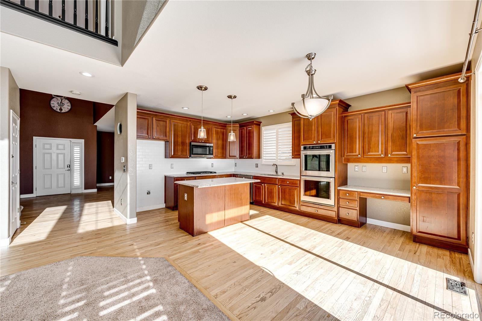 Gorgeous Home in Castle Pines for Lease! Entry features a spacious living room with hardwood floors. Venturing further in you are greeted to an open concept great room with vaulted ceilings and a cozy gas fireplace for those starry Colorado nights. The kitchen features newer appliances including dishwasher, double ovens, gas cooktop, and refrigerator. The kitchen also boast slab granite countertops and built-in desk. There is a main floor office with French doors, perfect for those who work from home. Laundry room includes washer and dryer. Upstairs you have four bedrooms, of which, the huge primary bedroom which has a 5 piece ensuite with dual vanity sinks, soaking tub and a huge walk-in closet complete with closet island for extra storage. The upstairs hall bathroom has shower and tub combo. Lower level walkout basement features an adorable kitchenette and access to the back patio for easy entertaining. When the party is ready to come indoors, you’ll be able to host them in your media theater area. There is a fifth bedroom and full bathroom, dual vanity sinks with slab granite counters. The patio doors lead out to a large paver patio area in the backyard. Out front, the three-car garage means you’ll have plenty of room for storage. Contact our office today for showing options!