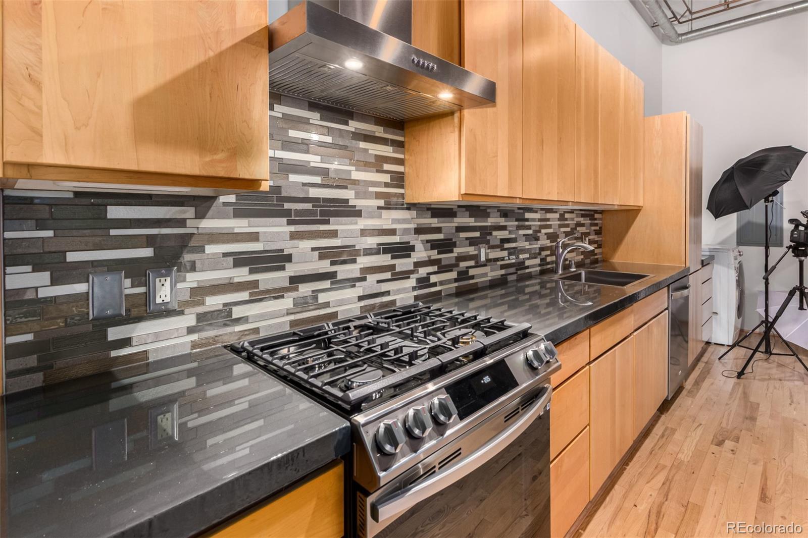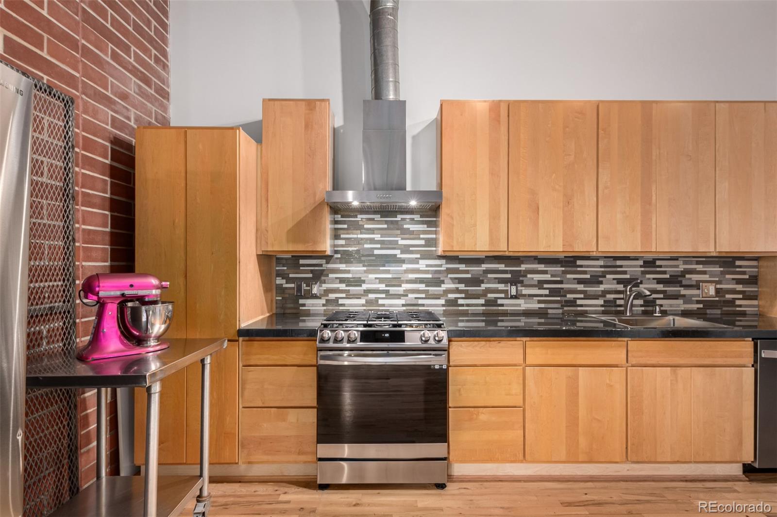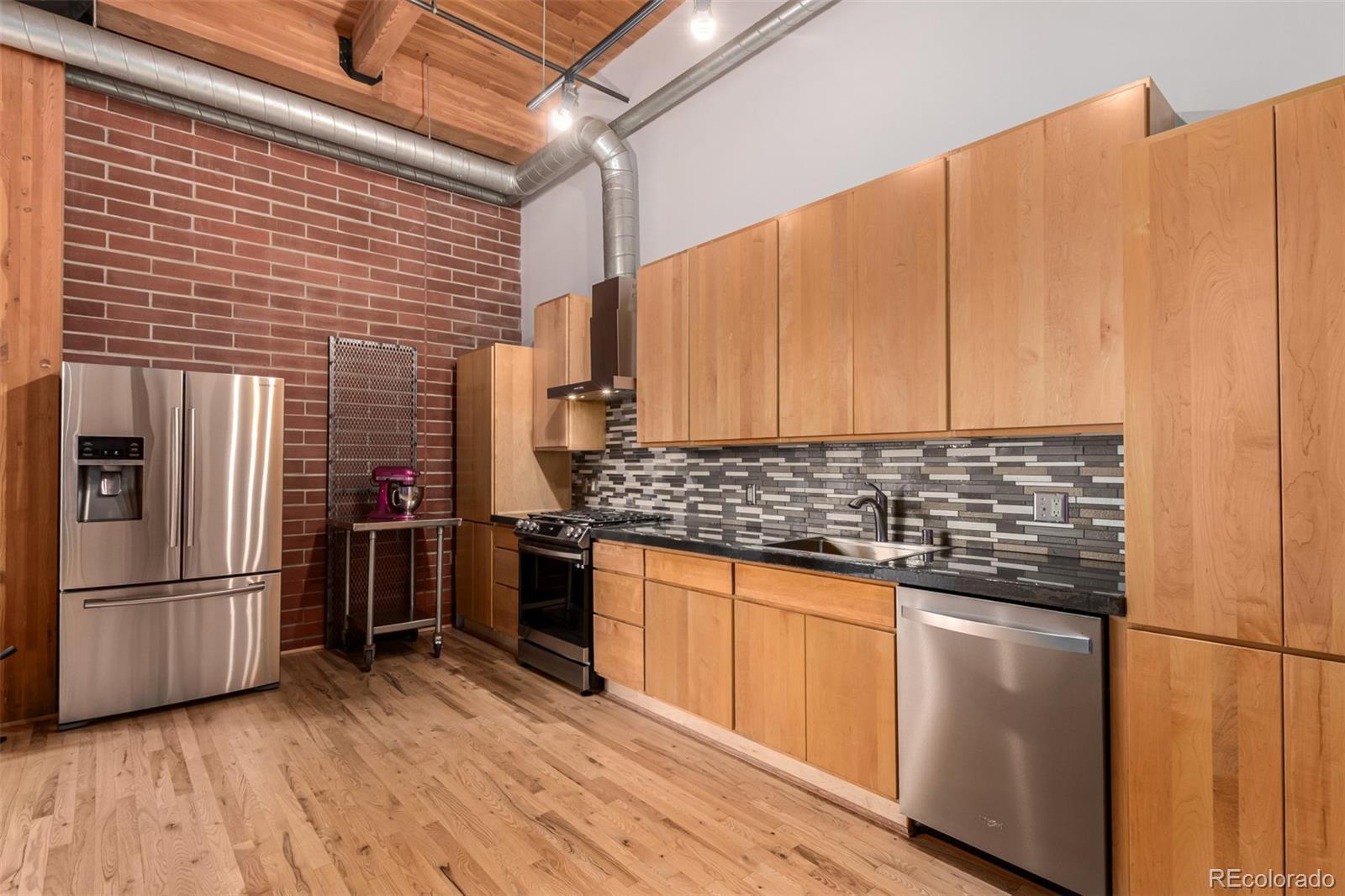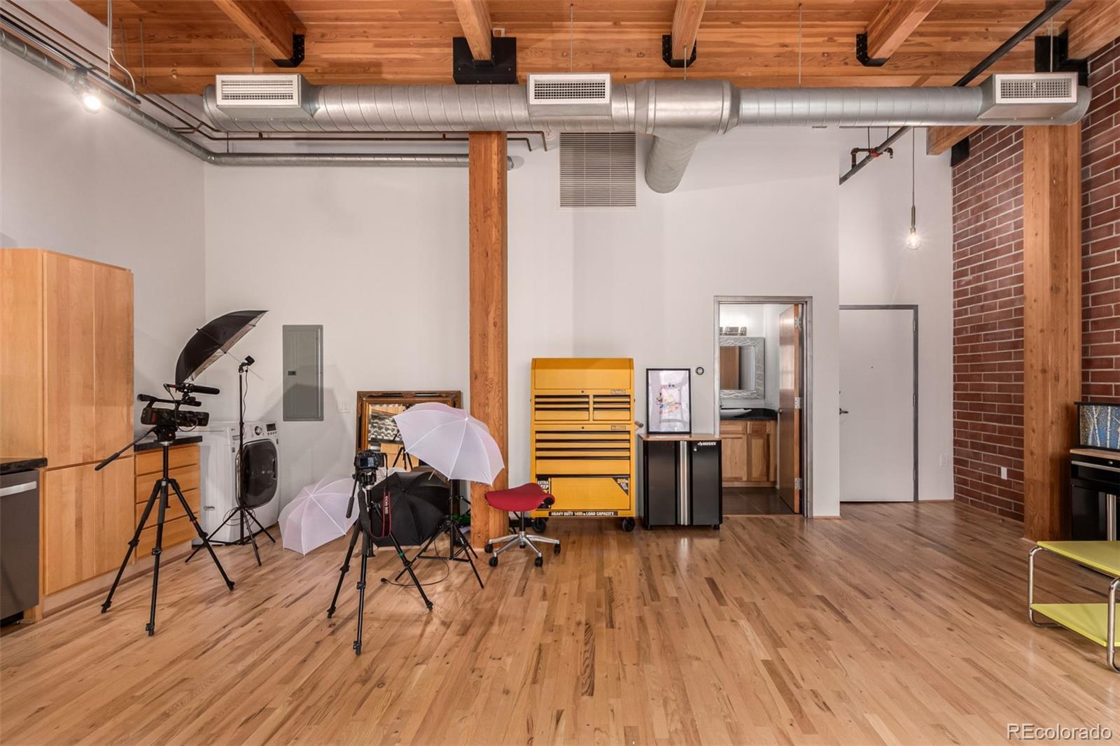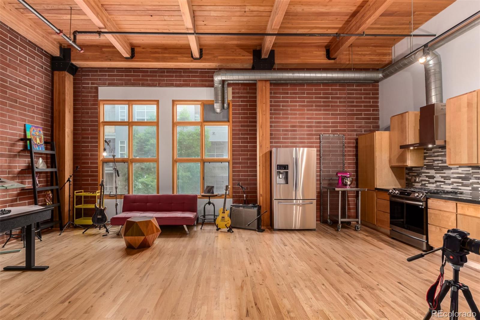 Step into soaring 14' ceilings in this rare New York/SoHo-style studio loft in the heart of Denver! This stunning space, featuring live-work mixed use zoning and classic brick-and-timber construction, is located just blocks from Coors Field, Whole Foods, LoDo, RiNo, Union Station, and some of Denver’s most iconic parks—Commons Park, City of Cuernavaca Park, and Denver Skatepark—all connected to miles of riverfront trails. Whether you’re biking, boarding, strolling, or going out on the town, adventure and excitement are at your doorstep! Inside, you'll find fresh, stylish updates throughout: a brand-new heat pump for efficient year-round heating and cooling, a modern kitchen with updates including epoxy-coated concrete counters, a new sink, high-end gas range, and vent hood. Also newly installed are a Nest thermostat and an updated bathroom with luxury granite counters, new cabinets, toilet, tile flooring with additional soundproofing underneath, and premium Brizo and Delta fixtures—including a rain shower head, standard shower head, and handheld shower wand. Plus, there's a jetted tub for relaxation! In-unit washer/dryer included. Bonus: there's room to add a lofted platform for extra sleeping or storage! Incredible value: HOA dues are only $192/month—and haven’t gone up in 5+ years! The building has $400k+ in reserves, a brand-new roof, a rebuilt garage door, and a new high-efficiency boiler. Zoned R-MU-30, this home offers unmatched live/work flexibility. With a $15 special use permit, you can run a wide range of home-based businesses—photography, design, artist studio, architecture, tech startups, professionals, and more—while enjoying residential tax rates (must occupy the home). Or, convert to full commercial use and ditch the occupancy requirement (subject to tax change). 30+ day rentals allowed! Garage parking across the street is often available at $250/mo. Stylish, flexible, and right where you want to be—come see why this loft stands out from the rest!