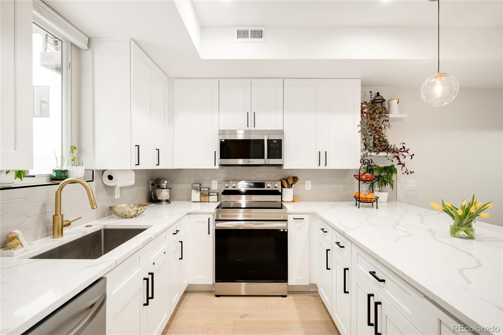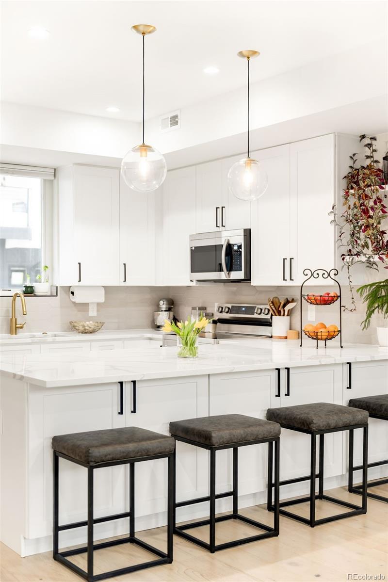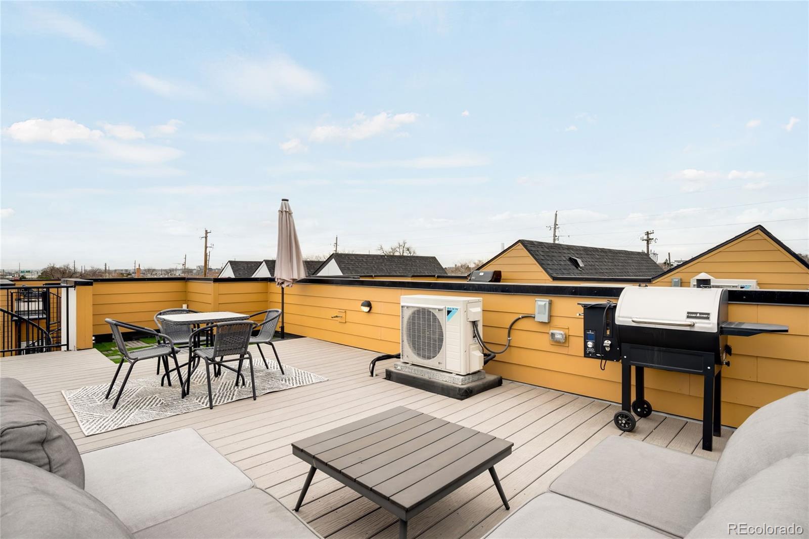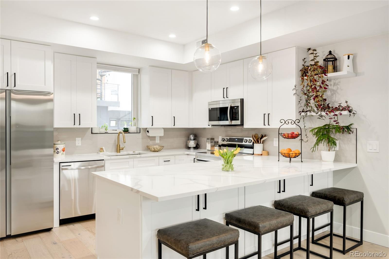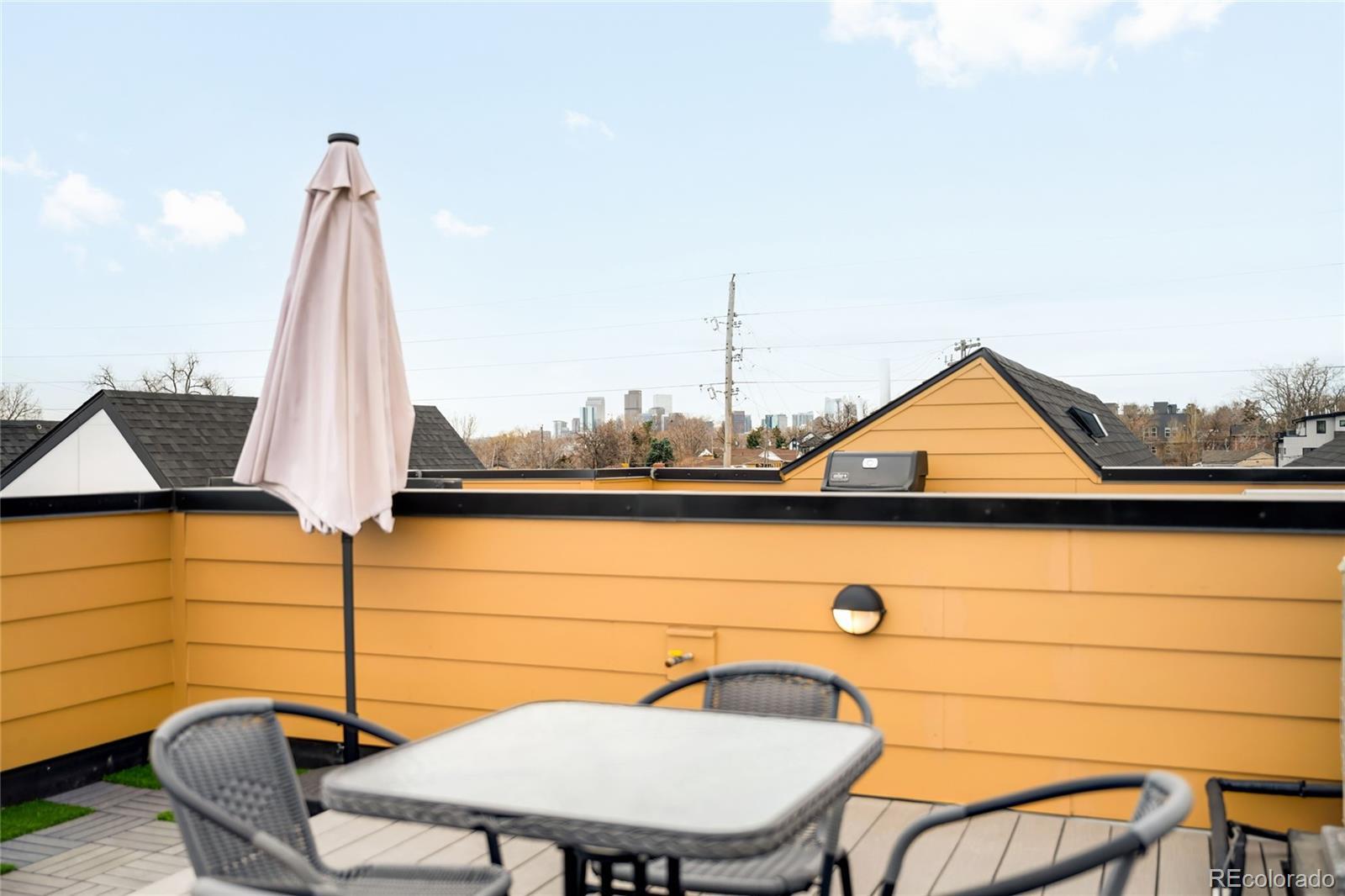 Modern design meets elevated city living in this newly built Sunnyside townhome. Completed in 2023, this residence offers all-new systems and appliances, paired with refined finishes and a smart, open layout. The main living level features soaring 10-foot ceilings and a stylish kitchen anchored by an oversized island, alongside sleek countertops, stainless steel appliances and all-white cabinetry. Two generously sized en-suite bedrooms include the primary suite, offering a walk-in closet. Crowning the residence is an expansive rooftop deck with unobstructed city views — an ideal setting for sunsets and entertaining under the stars. A designated parking space and a rare no-HOA structure, governed only by a party wall agreement covering landscaping, snow removal and water, adds to the townhome’s appeal. Ideally located with easy access to downtown Denver, I-70 and the Highlands, this Sunnyside retreat delivers contemporary style, low-maintenance living and exceptional outdoor space.