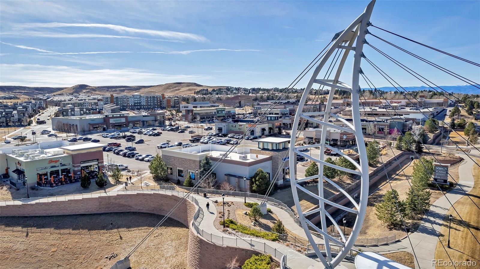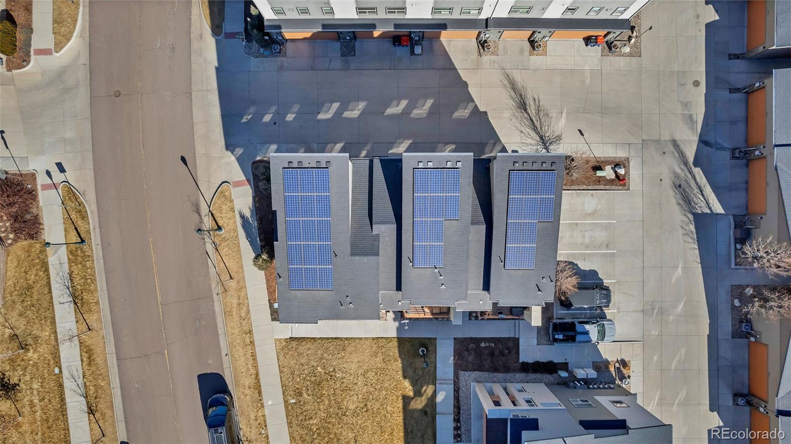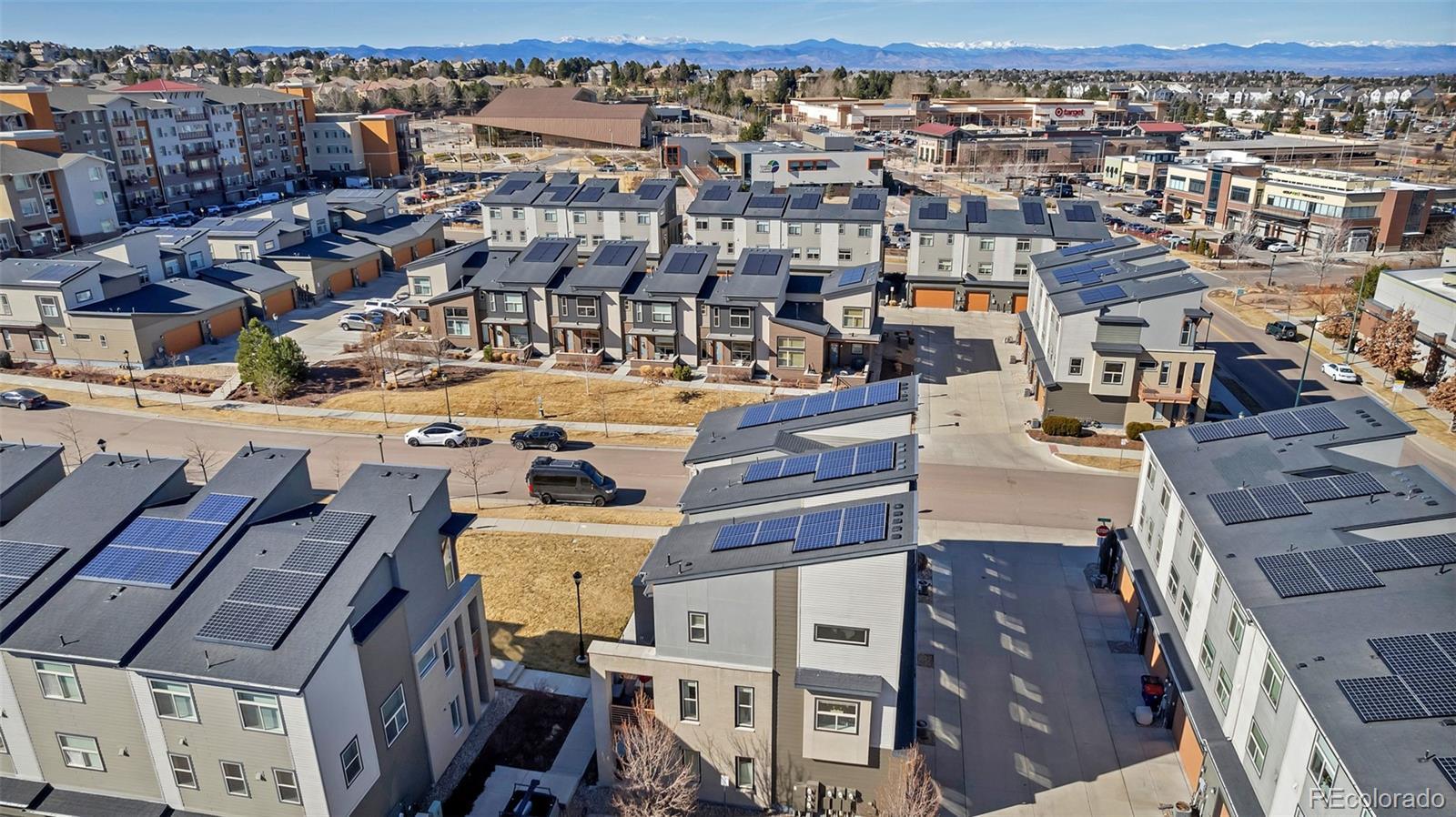 The most perfectly located home, with beautiful views of the area's bluffs overlooking the grassy park, facing South and with South and West views. Direct access to local parks, miles of walking trails, a short walk to grocery, retail, and popular restaurants. Just one bock to the library and a few blocks to the Lone Tree Recreation Center! Your new home has an open flowing floor plan featuring a chef's kitchen complete with white cabinetry, newer subway tile backsplash, beautiful stainless steel appliances, granite counters, and an island for even more prep space. The living room is truly the showcase with large windows framing the bluffs in the distance, overlooking the park, and plenty of space to hang out. It is wired for sound. This room has access to the wrap around deck where you can sit back, relax, and enjoy the fresh air and sunshine. The primary is on the upper level with views of the bluffs, natural light, a walk in closet with built ins and is paired with a 3/4 bath that features a tiled shower, dual sinks, private water closet and built in storage. The 2nd bedroom is located in the NW corner, has plenty of natural light, and spacious closet. The loft is truly a highlight feature with windows allowing natural light and creating a flexible space for work, relaxation, or play! This beautiful modern home creates opportunity for ease, convenience, and enjoyment of the perfect location. Notable features: All hard floors, no basement, wired for sound, wired for data, Home builder has prepaid for initial term of solar lease (till 2036!!) will transfer to buyer at closing. This home is Energy Star rated and EPA indoor airplus qualified!