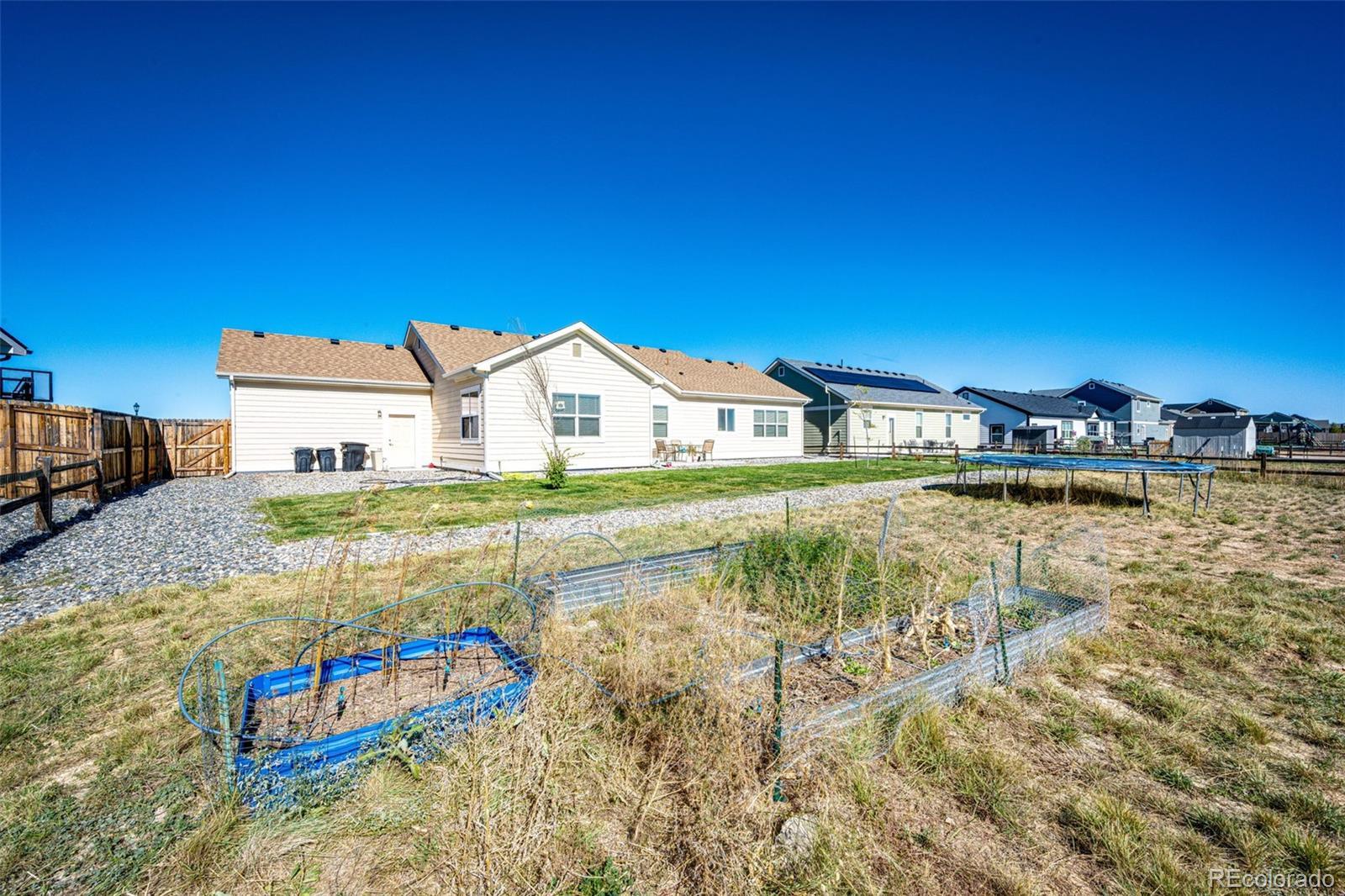 Welcome to this beautiful 3-bedroom, 2.5-bathroom ranch-style home with a spacious 3-car garage, built in 2022 and located in the highly sought-after Blackstone Ranch neighborhood! This open-concept floor plan features stylish LVP flooring throughout and a large kitchen with plenty of counter space, modern finishes, and a generous dining area that opens to the backyard patio through sliding glass doors—perfect for indoor/outdoor entertaining. Enjoy a large fenced backyard with raised garden beds, a sprinkler system in the front and back, and peaceful views backing to an open field. The full unfinished basement spans the entire footprint of the home, offering endless possibilities for additional bedrooms, a family room, a home theater, or more—customize it to your liking! Within walking distance to parks and schools, this home combines comfort, convenience, and community living at its best. Don’t miss this move-in-ready gem!
