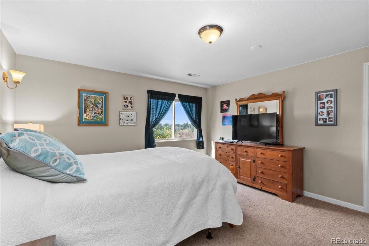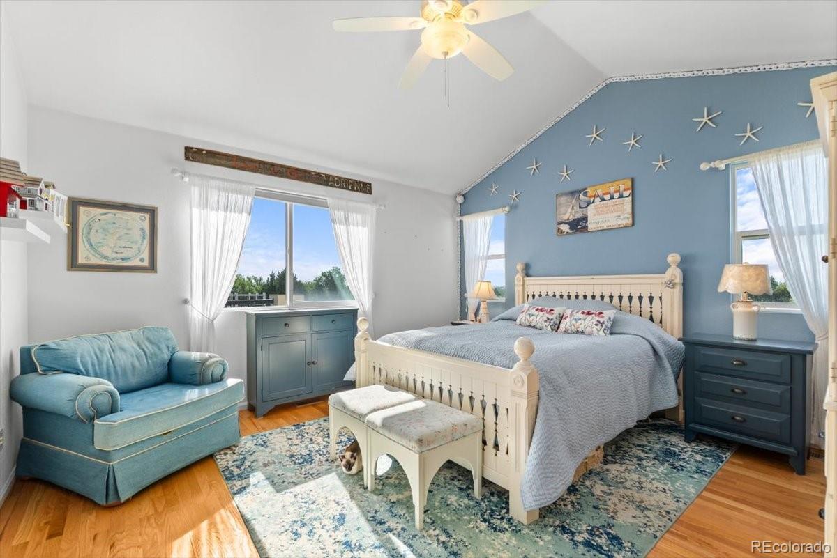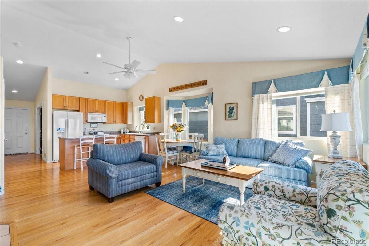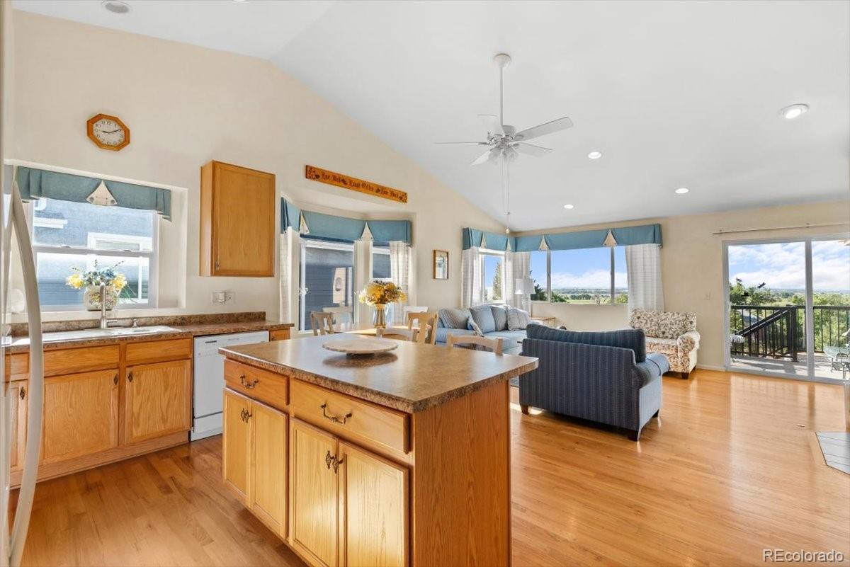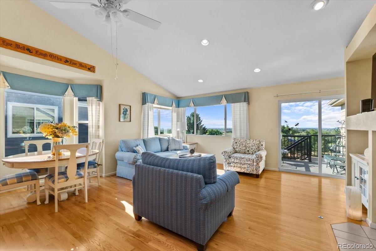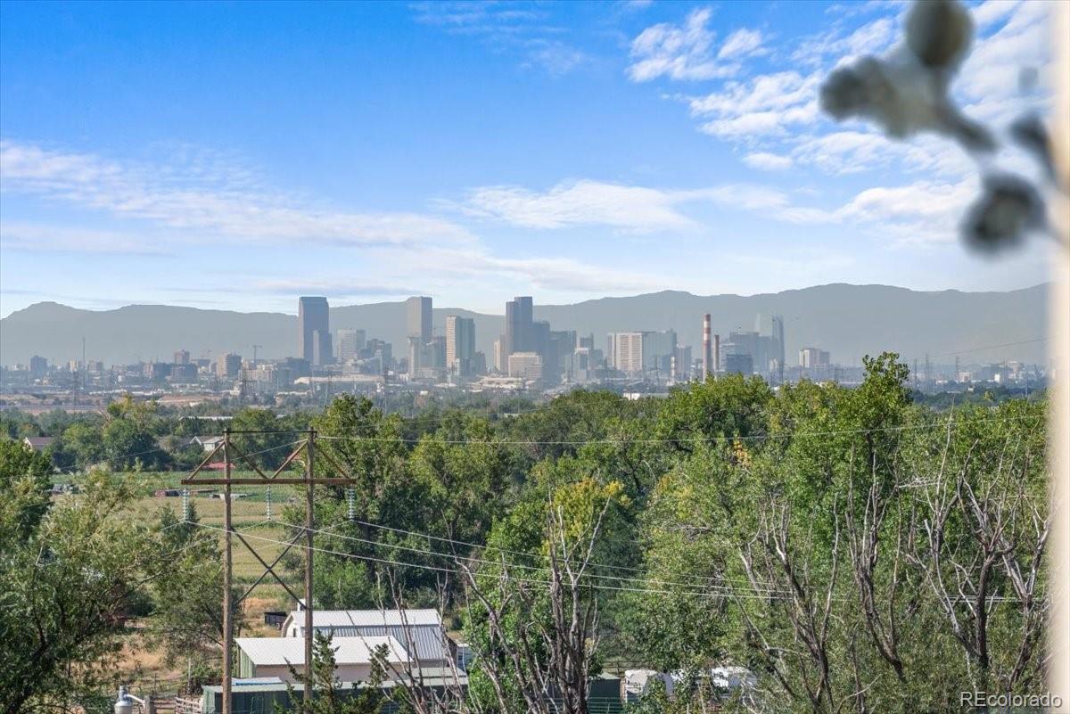 Perched above most homes in Thornton, this beautifully maintained ranch offers some of the most breathtaking, unobstructed views you’ll find—stretching from Downtown Denver to majestic Pikes Peak and the peaceful meadows in between. Step inside to an open, light-filled floor plan where vaulted ceilings and expansive windows perfectly frame the scenery. The kitchen flows seamlessly into the dining and living areas, making it ideal for both everyday living and entertaining. It features a center island, tall cabinets, a window above the sink, and newer appliances. Gorgeous hardwood floors extend through the main living space and into the spacious primary suite, complete with vaulted ceilings, a walk-in closet, and a private en-suite bath. The main level also includes a second bedroom, full bath, and a dedicated front office. The finished walkout basement adds incredible versatility with a large family room, a generously sized bedroom with walk-in closet and a newly completed bathroom featuring an oversized shower. This bathroom has convenient dual access, opening directly to the bedroom as well as the living area. The basement also has a second laundry room and storage room. (Laundry hookups are available on both the main floor and basement.) Outside, enjoy a fully fenced backyard that backs to scenic trails, complete with multiple garden beds and mature landscaping. The attached two-car garage offers convenience, while the tranquil setting invites you to relax and soak in Colorado’s beauty every day. Don’t miss this rare chance to own a home with unparalleled views in one of Thornton’s most sought-after neighborhoods