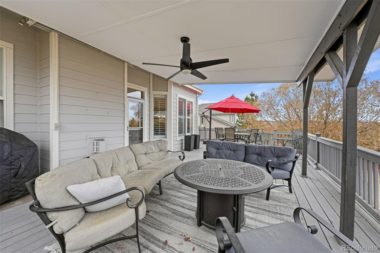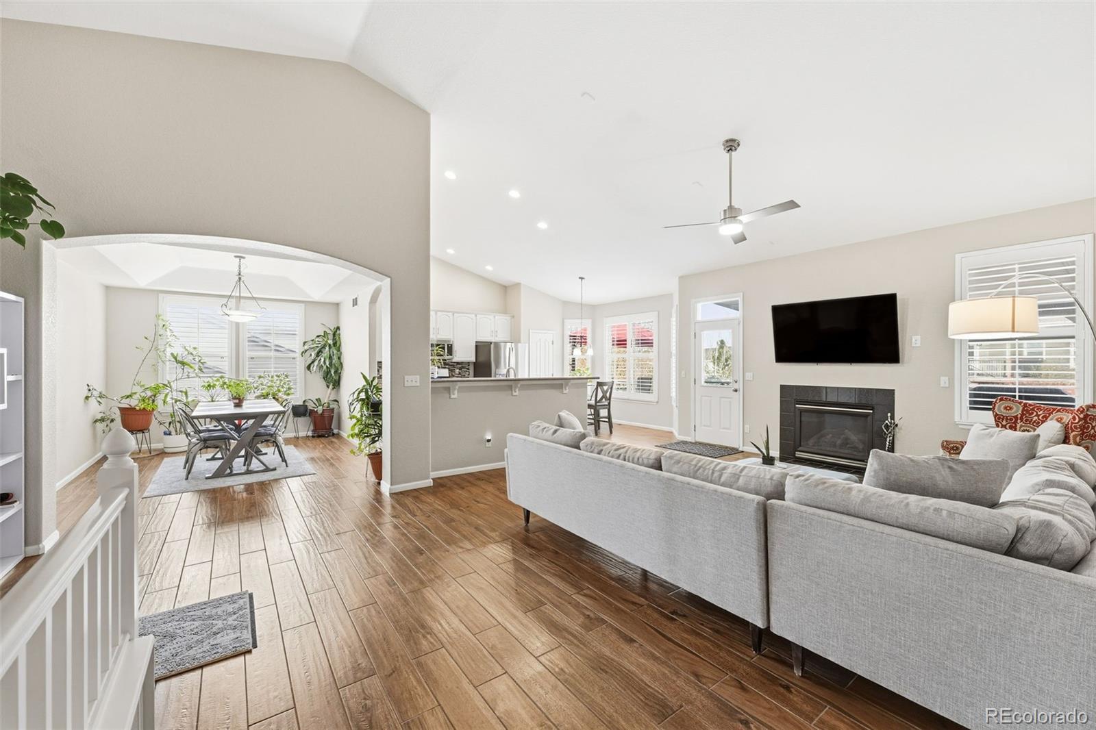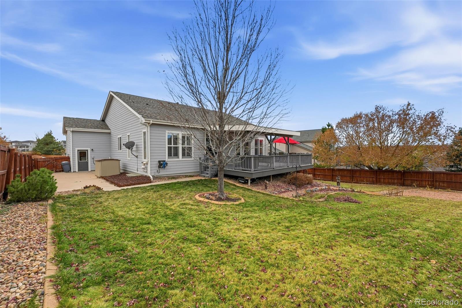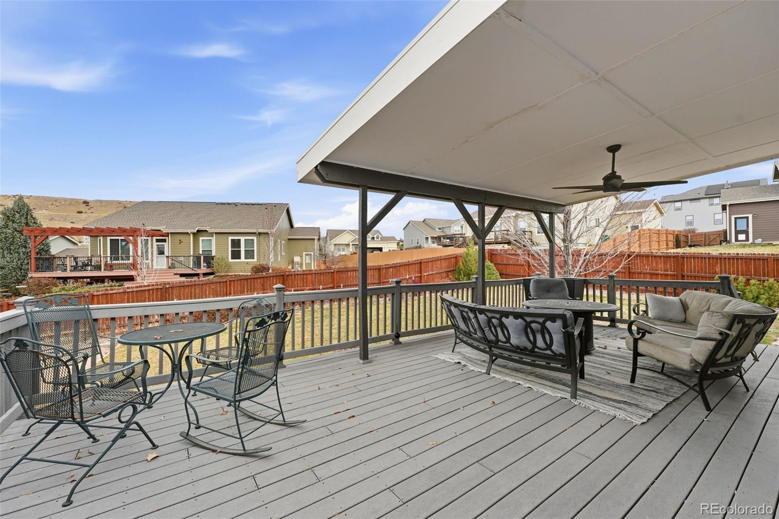 Welcome home to this immaculately maintained ranch in beautiful Castle Rock, Colorado! Step inside and imagine coming home here every day. Thoughtful updates and upgrades shine around every corner — from plantation shutters and wood-plank style tile flooring throughout the main level to cozy carpeted bedrooms that add just the right touch of comfort. The kitchen gleams with newer stainless steel appliances, including a 5-burner gas range perfect for any home chef. Retreat to your luxurious 5-piece primary suite featuring a large soaking tub and a glass-enclosed shower — your own private spa at home. Major systems have been recently updated for peace of mind: new furnace (2024), Class 3 roof (2023), AC condenser (2023), and water heater (2021). The great room and basement are both sound-prewired, ready for your ultimate home theater setup. Fresh main-floor paint (2021) and a beautifully refreshed kitchen showcase the care and pride the owners have poured into this home. The fully finished — and massive — basement offers incredible versatility with a spacious game room (pool table included!), a home gym area, a flex room, and a private back bedroom with an adjacent ¾ bath. Step out onto the covered back deck and unwind in your private, fenced backyard — the perfect space for relaxing, entertaining, or simply soaking in Colorado’s sunshine. Plus, with a south-facing driveway, snow shoveling will be a breeze! Family and friends will love gathering here — it truly has it all. Life is good on Eaglestone Drive… come see it for yourself!