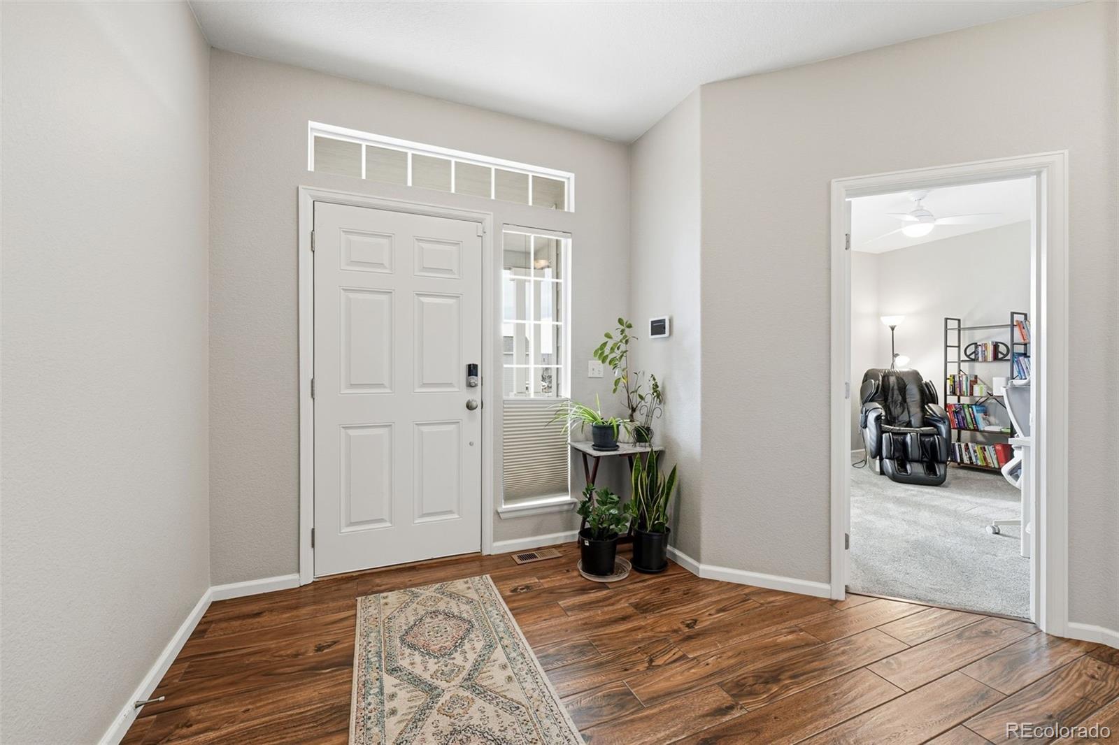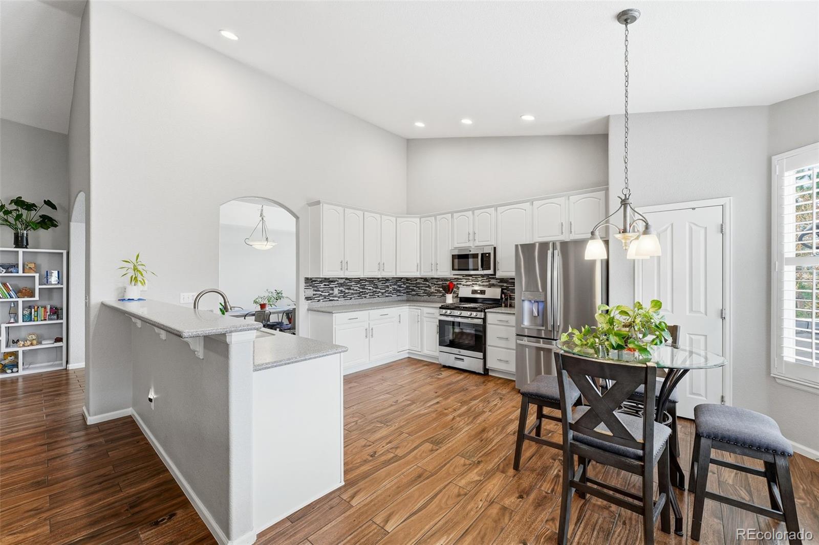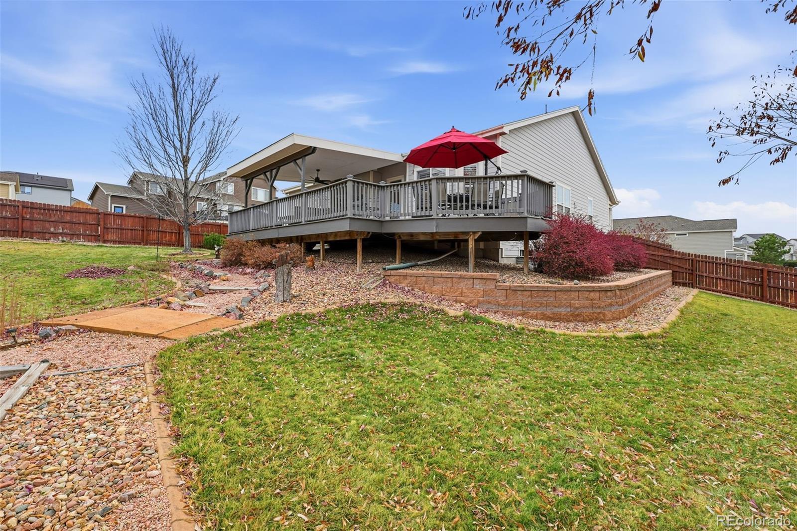 Welcome home to this immaculately maintained ranch in beautiful Castle Rock, Colorado! Step inside and imagine coming home here every day. Thoughtful updates and upgrades shine around every corner — from plantation shutters and wood-plank style tile flooring throughout the main level to cozy carpeted bedrooms that add just the right touch of comfort. The kitchen gleams with newer stainless steel appliances, including a 5-burner gas range perfect for any home chef. Retreat to your luxurious 5-piece primary suite featuring a large soaking tub and a glass-enclosed shower — your own private spa at home. Major systems have been recently updated for peace of mind: new furnace (2024), Class 3 roof (2023), AC condenser (2023), and water heater (2021). The great room and basement are both sound-prewired, ready for your ultimate home theater setup. Fresh main-floor paint (2021) and a beautifully refreshed kitchen showcase the care and pride the owners have poured into this home. The fully finished — and massive — basement offers incredible versatility with a spacious game room (pool table included!), a home gym area, a flex room, and a private back bedroom with an adjacent ¾ bath. Step out onto the covered back deck and unwind in your private, fenced backyard — the perfect space for relaxing, entertaining, or simply soaking in Colorado’s sunshine. Plus, with a south-facing driveway, snow shoveling will be a breeze! Family and friends will love gathering here — it truly has it all. Life is good on Eaglestone Drive… come see it for yourself!