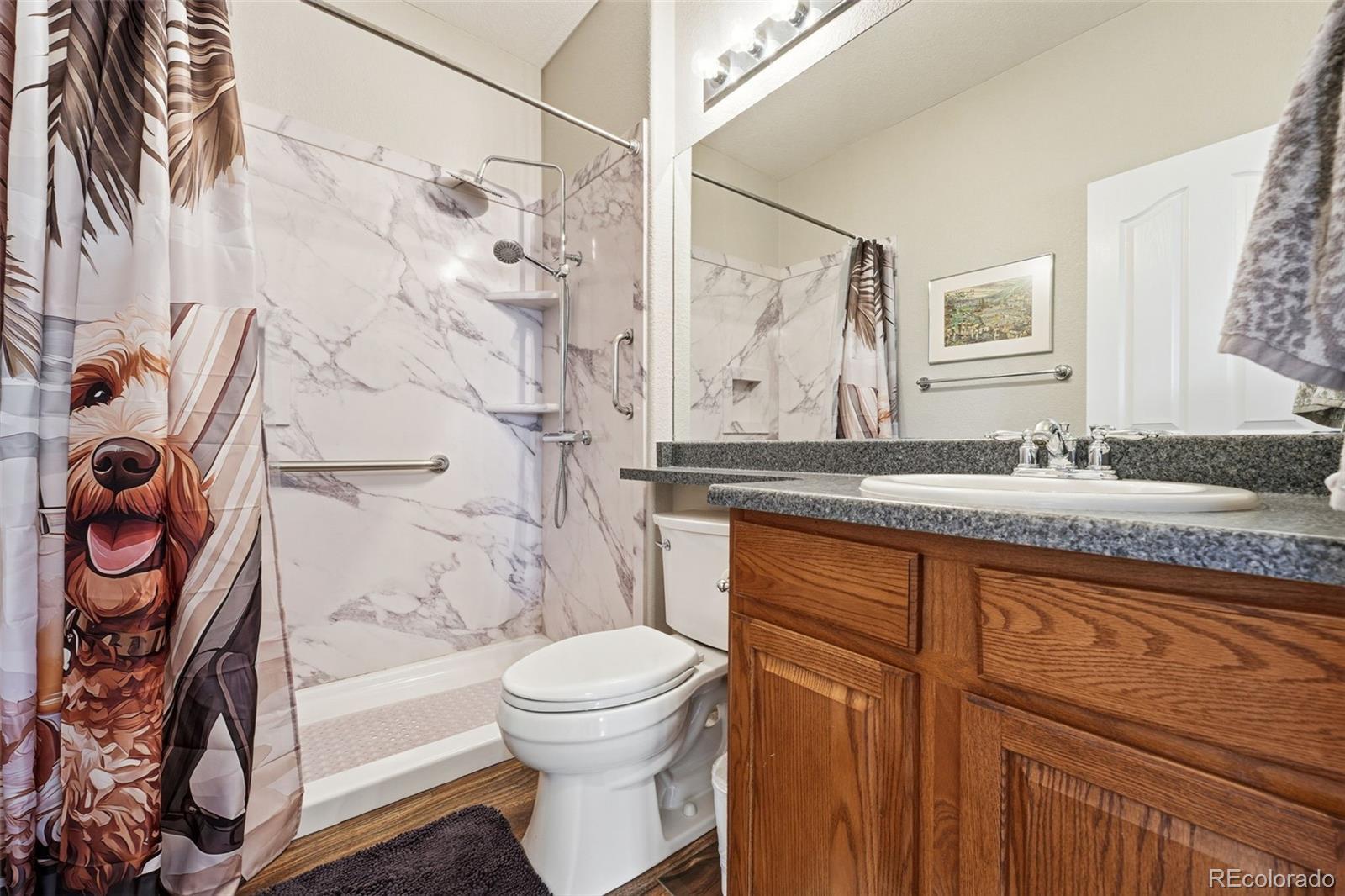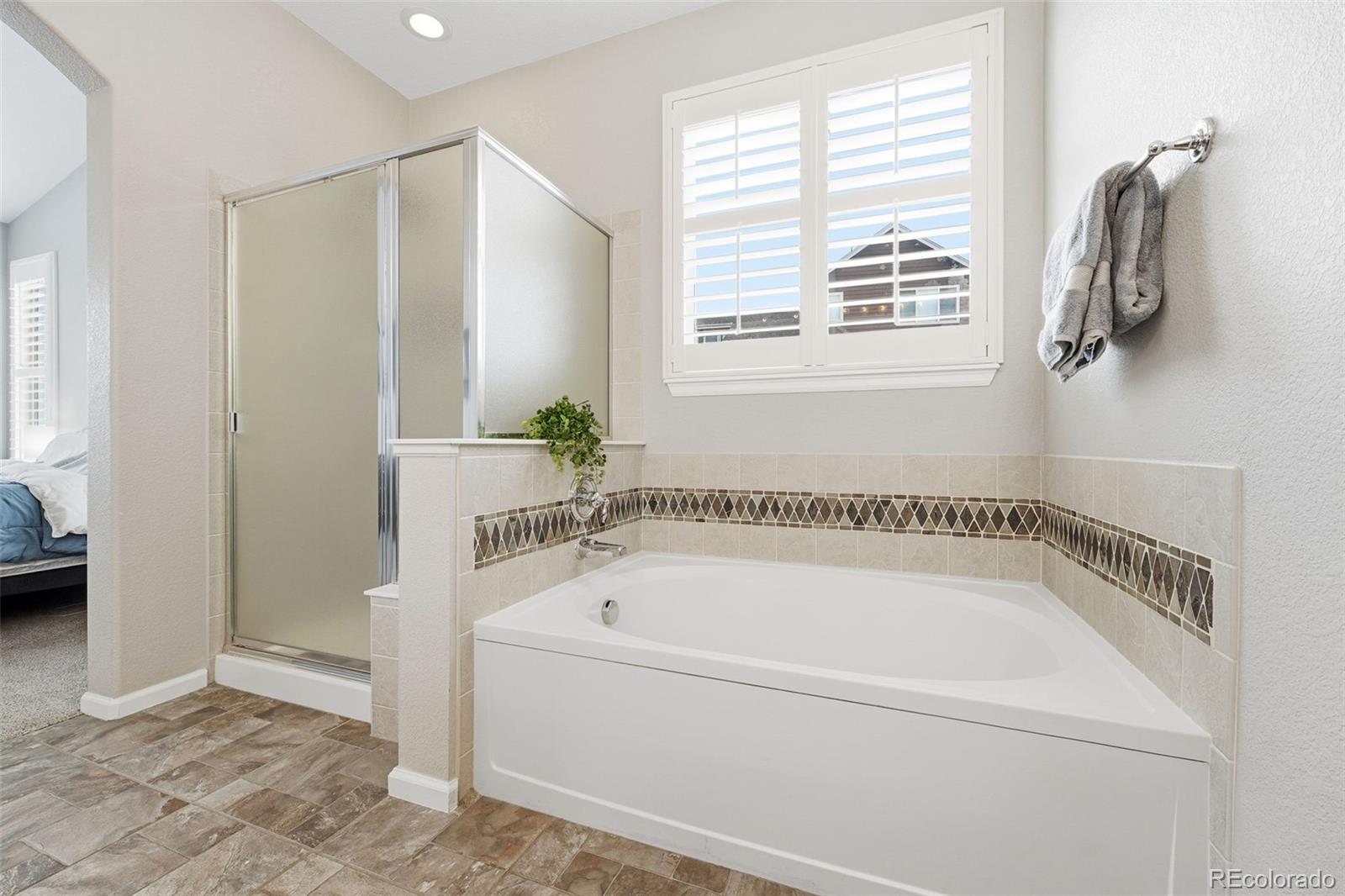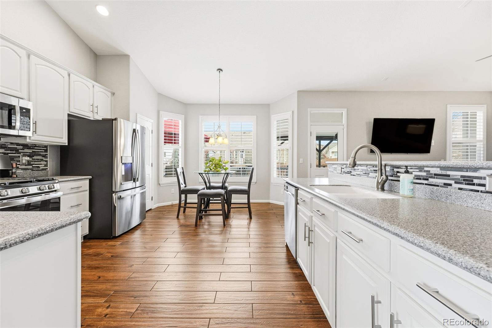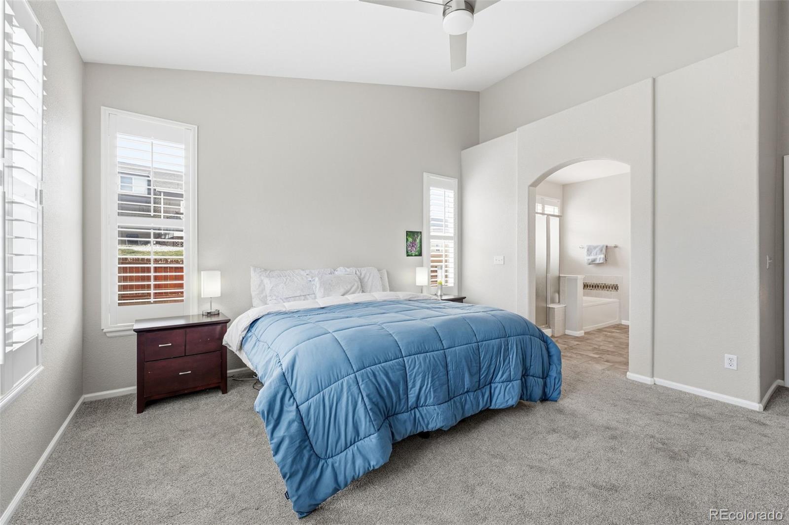 Welcome home to this immaculately maintained ranch in beautiful Castle Rock, Colorado! Step inside and imagine coming home here every day. Thoughtful updates and upgrades shine around every corner — from plantation shutters and wood-plank style tile flooring throughout the main level to cozy carpeted bedrooms that add just the right touch of comfort. The kitchen gleams with newer stainless steel appliances, including a 5-burner gas range perfect for any home chef. Retreat to your luxurious 5-piece primary suite featuring a large soaking tub and a glass-enclosed shower — your own private spa at home. Major systems have been recently updated for peace of mind: new furnace (2024), Class 3 roof (2023), AC condenser (2023), and water heater (2021). The great room and basement are both sound-prewired, ready for your ultimate home theater setup. Fresh main-floor paint (2021) and a beautifully refreshed kitchen showcase the care and pride the owners have poured into this home. The fully finished — and massive — basement offers incredible versatility with a spacious game room (pool table included!), a home gym area, a flex room, and a private back bedroom with an adjacent ¾ bath. Step out onto the covered back deck and unwind in your private, fenced backyard — the perfect space for relaxing, entertaining, or simply soaking in Colorado’s sunshine. Plus, with a south-facing driveway, snow shoveling will be a breeze! Family and friends will love gathering here — it truly has it all. Life is good on Eaglestone Drive… come see it for yourself!