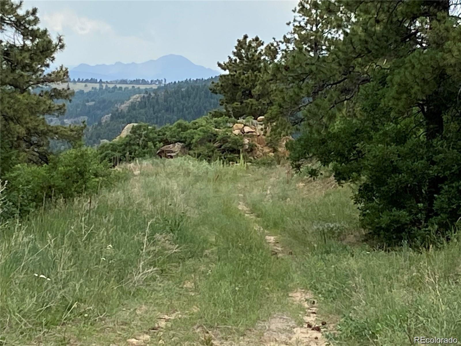 Elevated Splendor with Easy Access! Discover breathtaking views at the top of the world, only 15 minutes from C-470. This 5-acre lot offers a panoramic 270-degree spectacle of the majestic Colorado mountains. Nestled on a private road with gated access, the property boasts a perfect blend of pine trees, scrub oak, and captivating rock outcroppings. Embrace the serenity of this unique and exclusive location, where nature's beauty meets convenient proximity. Whether envisioning a mountain retreat or an architectural masterpiece, this prime 5-acre canvas invites you to build your dream home. Seize the opportunity to tailor your living space to match the grandeur of the surroundings.